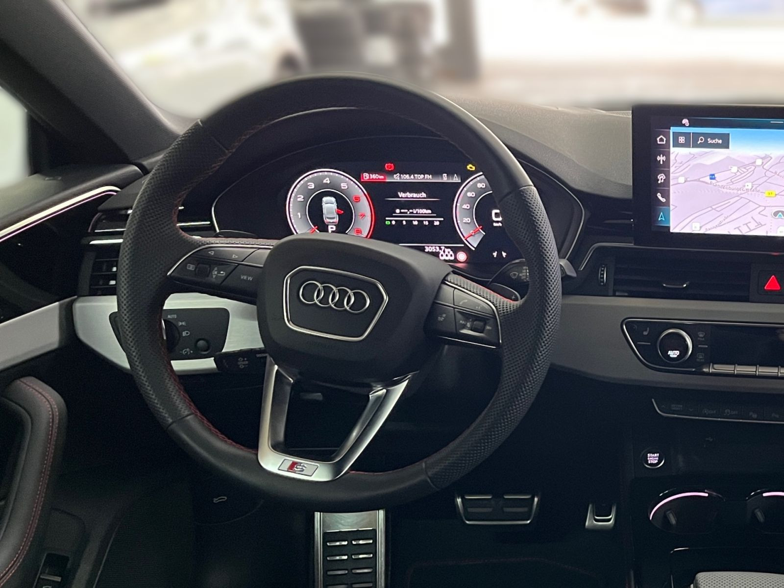 » Audi Soundsystem» Audi virtual cockpit plus Assistenzsysteme: » Adaptiver Geschwindigkeitsassistent» Audi active lane assist» Audi pre sense city» Audi pre sense rear und basic» Kamerabasierte Verkehrszeichenerkennung» Reifendruck-Kontrollanzeige» Spurwechselwarnung Multimedia: » Audi connect Navigation & Infotainment» Digitaler Radioempfang» MMI Navigation plus mit MMI touch » USB-Ladeschnittstellen im Fond Technik & Sicherheit: » 3-Zonen-Komfortklimaautomatik» Abgaskonzept, EU6 EA Lambda=1 WLTP3 M1, N1-I» Airbags vorn, Beifahrerairbag deaktivierbar» Audi connect Notruf & Service mit Audi connect Remote & Control» Audi drive select» Außenspiegel elektrisch einstell-, beheiz- und anklappbar, beidseitig automatisch abblendend» Kindersicherheits-Paket» Kindersitzbefestigung ISOFIX für den Beifahrersitz» Kindersitzbefestigung ISOFIX und Top Tether für die Fondsitze» Komfortschlüssel mit Safelock» Komfortschlüssel mit sensorgesteuerter Gepäckraumentriegelung inklusive Diebstahlwarnanlage » LED-Heckleuchten mit dynamischer Lichtinszenierung und dynamischem Blinklicht» Matrix LED-Scheinwerfer mit Audi Laserlicht, dynam. Lichtinszenierung unddynamischem Blinklicht » Parkassistent mit Einparkhilfe plus » Pedalerie und Fußstütze aus Edelstahl» S tronic» Scheinwerfer-Reinigungsanlage» Seitenairbags vorn und Kopfairbagsystem» Start-Stop-System» Tagfahrlicht» Tiptronic Interieur: » Einstiegsleisten mit Aluminiumeinlegern vorn, beleuchtet, S-Schriftzug» Innenspiegel automatisch abblendend, rahmenlos» Interieur S line » Komfortmittelarmlehne vorn» Lederlenkrad im 3-Speichen-Design mit Multifunktion plus und Lenkradheizung» Lendenwirbelstütze, pneumatisch einstellbar mit Massagefunktion für die Vordersitze» Mikrofaser Dinamica/Leder-Kombination mit S-Prägung» Sportsitze plus vorn » Standheizung und -lüftung » Vordersitze elektrisch einstellbar » Sitzheizung vorn und hinten Exterieur: » Anhängevorrichtung » Farbnähte rot, Audi Sport GmbH» Gepäckraumklappe elektrisch öffnend und schließend» Räder Audi Sport, 5-V-Speichen-Stern, titangrau matt, glanzgedreht, 9,0Jx20, Reifen 265/30 R20» Sonnenschutzverglasung abgedunkelt Sonstiges: » Ambiente-Lichtpaket plus» Drahtlos beheizbare Klimakomfort- und Akustikverglasung Frontscheibe» Interieurelemente in Kunstleder» Sitzheizung vorn und hinten» Stoßfänger S line Garantie 24 Monate ab Tag der Erstzulassung, Angaben zum Hersteller: AUDI AG, Audi, Auto-Union-Straße 1, 85057 Ingolstadt, Deutschland, +49-841-89-0, kundenbetreuung(at)audi.de, Produktinformationen: https://www.audi.de/de/rechtliches/gpsr/ Die angegebenen Verbrauchsangaben beziehen sich auf WLTP-Werte. Zwischenverkauf und Irrtümer für dieses Angebot sind ausdrücklich vorbehalten. Ausschlaggebend sind einzig und allein die Vereinbarungen in der Auftragsbestätigung oder im Kaufvertrag. Den genauen Ausstattungsumfang, die genauen Kilometer und den Verkaufspreis erhalten Sie von unserem Verkaufspersonal. Bitte kontaktieren Sie uns. Finanzierung