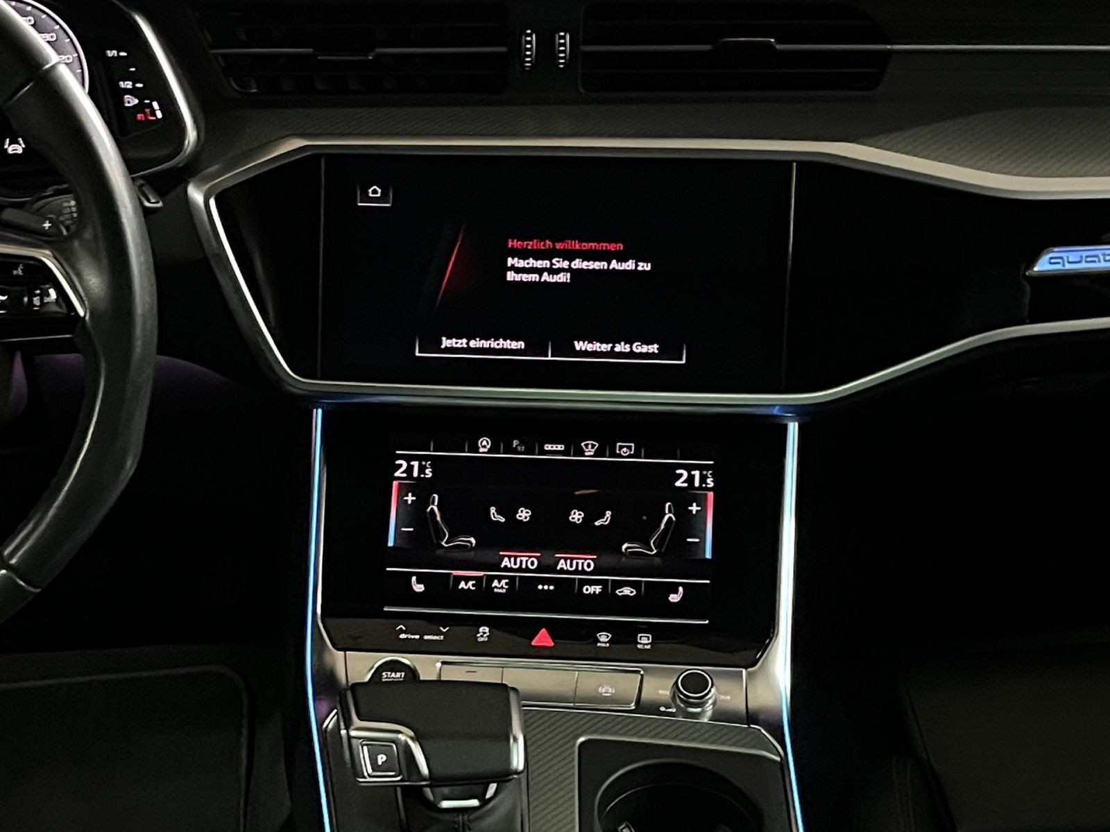 » Audi Soundsystem» Audi virtual cockpit plus» Head-up-Display » Panorama-Glasdach Assistenzsysteme: » Adaptiver Fahrassistent mit Notfallassistent» Adaptiver Geschwindigkeitsassistent mit Geschwindigkeitsbegrenzer, Effizienz-, Ausweich- und Abbiegeassistent» Audi pre sense rear» Fernlichtassistent» Geschwindigkeitsbegrenzungsanlage» Kamerabasierte Verkehrszeichenerkennung» Reifendruck-Kontrollanzeige Multimedia: » Audi Smartphone Interface» Audi connect Navigation & Infotainment» Bluetooth-Schnittstelle» Digitaler Radioempfang» MMI Navigation plus mit MMI touch response Technik & Sicherheit: » AdBlue-Tank mit erhöhtem Füllvolumen» Adaptive Scheibenwischer mit integrierten Waschdüsen» Audi connect Notruf & Service mit Audi connect Remote & Control» Audi drive select» Einparkhilfe plus mit Umgebungsanzeige » Kindersicherheits-Paket» Kindersitzbefestigung ISOFIX für den Beifahrersitz» Kindersitzbefestigung ISOFIX und Top Tether für die äußeren Fondsitze» Komfortschlüssel mit sensorgesteuerter Gepäckraumentriegelung» Komfortschlüssel mit sensorgesteuerter Gepäckraumentriegelung, ohne Safelock» LED-Heckleuchten» Seitenairbags vorn und hinten inkl. Kopfairbagsystem und beleuchteten Gurtschlössern» Start-Stop-System» Tagfahrlicht» tiptronic (für Allrad) Interieur: » Bedientasten schwarz glänzend mit haptischem Feedback und Aluminiumoptik Interieur» Einstiegsleisten mit Aluminiumeinlegern vorne und hinten» Innenspiegel automatisch abblendend, rahmenlos» Komfortmittelarmlehne vorn» Leder Valcona » Lederlenkrad 3-Speichen mit Multifunktion, Schaltwippen und Lenkradheizung» Rücksitzbank umklappbar (Fondsitze 2+1 Sitzer)» Sitzheizung vorn Exterieur: » Dachreling in Aluminium» Frontscheibe in Wärmeschutzverglasung» Gepäckraumklappe elektrisch öffnend und schließend» Räder, 5-Doppelspeichen, graphitgrau, glanzgedreht, 8,5Jx19, Reifen modellspezifisch» Vorbereitung für Anhängevorrichtung Sonstiges: » Ambiente-Lichtpaket plus» Top-Infotainment Premium (MIB3) Angaben zum Hersteller: AUDI AG, Audi, Auto-Union-Straße 1, 85057 Ingolstadt, Deutschland, +49-841-89-0, kundenbetreuung(at)audi.de, Produktinformationen: https://www.audi.de/de/rechtliches/gpsr/ Die angegebenen Verbrauchsangaben beziehen sich auf WLTP-Werte. Zwischenverkauf und Irrtümer für dieses Angebot sind ausdrücklich vorbehalten. Ausschlaggebend sind einzig und allein die Vereinbarungen in der Auftragsbestätigung oder im Kaufvertrag. Den genauen Ausstattungsumfang, die genauen Kilometer und den Verkaufspreis erhalten Sie von unserem Verkaufspersonal. Bitte kontaktieren Sie uns. Finanzierung