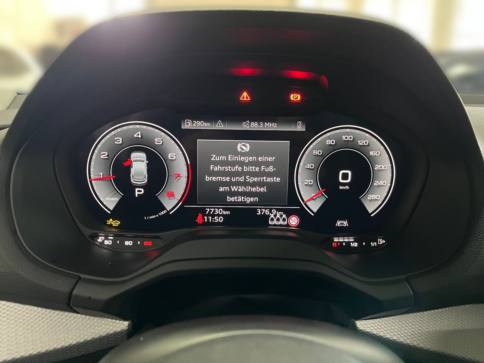 » Audi Soundsystem» Audi virtual cockpit plus Assistenzsysteme: » Ablenkungs- und Müdigkeitserkennung» Geschwindigkeitsregelanlage» Kamerabasierte Verkehrszeichenerkennung» Reifendruck-Kontrollanzeige» Spurverlassenswarnung Multimedia: » Ablage- und Gepäckraumpaket mit USB-Ladeschnittstellen im Fond» Audi connect Navigation & Infotainment» Digitaler Radioempfang» MMI Radio plus» Smartphone-Interface Technik & Sicherheit: » Airbags vorn, Beifahrerairbag deaktivierbar» ISOFIX und Top Tether für Fondsitze außen» Kindersicherheits-Paket» Kindersitzbefestigung ISOFIX für den Beifahrersitz» Klima- und Komfortpaket» Komfortklimaautomatik » Komfortschlüssel, ohne Safelock» LED-Heckleuchten mit dynamischem Blinklicht» Rückfahrkamera » S tronic» Seitenairbags vorn und Kopfairbagsystem» Start-Stop-System mit Rekuperation» Tagfahrlicht Interieur: » Dekoreinlagen Diamantlack silbergrau» Einstiegsleisten mit Aluminiumeinlegern vorne, beleuchtet» Komfortmittelarmlehne vorn» Lederlenkrad 3-Speichen mit Multifunktion plus und Schaltwippen» Rücksitzlehne geteilt umklappbar» Sitzheizung vorn » Stoff Skript Exterieur: » Anhängevorrichtung » Gepäckraumklappe elektrisch öffnend und schließend» Optikpaket schwarz» Räder Audi Sport, 10-Y-Speichen, schwarz, glanzgedreht, 8,0Jx19, Reifen 235/40 R19» Sonnenschutzverglasung abgedunkelt Sonstiges: » Audi connect Remote & Control (für MMI Navigation plus)» Kindersicherung elektrisch betätigt» Sideblades in Wagenfarbe» Stoßfänger advanced in Volllackierung» Wärmeschutz- und Akustikverglasung Frontscheibe mit grauem Colorstreifen Garantie 24 Monate ab Tag der Erstzulassung, Angaben zum Hersteller: AUDI AG, Audi, Auto-Union-Straße 1, 85057 Ingolstadt, Deutschland, +49-841-89-0, kundenbetreuung(at)audi.de, Produktinformationen: https://www.audi.de/de/rechtliches/gpsr/ Die angegebenen Verbrauchsangaben beziehen sich auf WLTP-Werte. Zwischenverkauf und Irrtümer für dieses Angebot sind ausdrücklich vorbehalten. Ausschlaggebend sind einzig und allein die Vereinbarungen in der Auftragsbestätigung oder im Kaufvertrag. Den genauen Ausstattungsumfang, die genauen Kilometer und den Verkaufspreis erhalten Sie von unserem Verkaufspersonal. Bitte kontaktieren Sie uns. Finanzierung