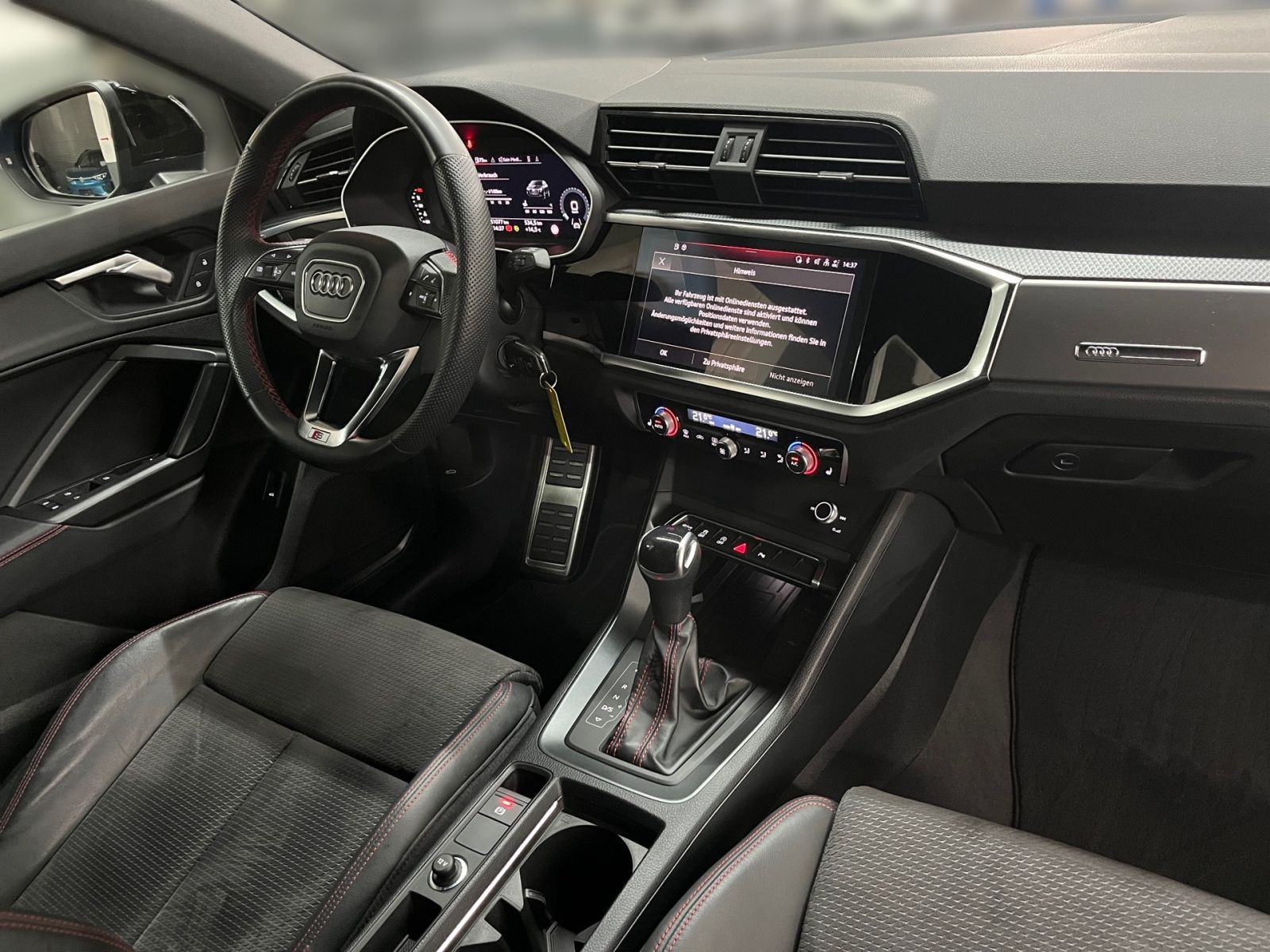 » Audi Soundsystem Assistenzsysteme: » Adaptiver Fahrassistent mit Notfallassistent» Adaptiver Geschwindigkeitsassistent» Audi pre sense front für adaptiven Geschwindigkeitsassistenten» Berganfahrassistent» Fernlichtassistent» Geschwindigkeitsbegrenzungsanlage» Kamerabasierte Verkehrszeichenerkennung» Licht-/Regensensor» Reifendruck-Kontrollanzeige» Spurwechselwarnung Multimedia: » Audi connect Navigation & Infotainment» Digitaler Radioempfang» MMI Navigation plus» MMI Navigation plus mit MMI touch » Smartphone-Interface » Sprachdialogsystem Technik & Sicherheit: » 2-Zonen-Komfortklimaautomatik» Airbags vorn, Beifahrerairbag deaktivierbar» Audi drive select» Außenspiegel elektrisch einstell-, beheiz- und anklappbar» ISOFIX und Top Tether für Fondsitze außen» Kindersicherheits-Paket» Kindersitzbefestigung ISOFIX für den Beifahrersitz» Pedalerie und Fußstütze aus Edelstahl» S tronic» Seitenairbags vorn und Kopfairbagsystem» Start-Stop-System mit Rekuperation» Tagfahrlicht» gesetzlicher Notruf Interieur: » Alcantara Frequenz/Kunstleder mono.pur 550-Kombination mit S-Prägung» Audi virtual cockpit» Einstiegsleisten mit Aluminiumeinlegern vorn, beleuchtet, S-Schriftzug» Innenspiegel automatisch abblendend, rahmenlos» Interieur S line» Komfortmittelarmlehne vorn» Lederlenkrad 3-Speichen mit Multifunktion plus» Rücksitzbank plus mit Mittelarmlehne undCupholder» Sitzheizung vorn» Türarmauflage in Kunstleder Exterieur: » Anhängevorrichtung » Außenspiegelgehäuse in schwarz» Farbnähte in Rot, Audi Sport GmbH» Gepäckraumklappe elektrisch öffnend und schließend » Optikpaket schwarz plus » Räder Audi Sport, 5-Arm-Trapezoid, titangrau matt, glanzgedreht, 8,5Jx19, Reifen 255/45 R19» Sonnenschutzverglasung abgedunkelt Sonstiges: » Assistenzpaket » Audi connect Remote & Control (für MMI Navigation plus)» Kindersicherung elektrisch betätigt» Stoßfänger S line in Kontrastlackierung Angaben zum Hersteller: AUDI AG, Audi, Auto-Union-Straße 1, 85057 Ingolstadt, Deutschland, +49-841-89-0, kundenbetreuung(at)audi.de, Produktinformationen: https://www.audi.de/de/rechtliches/gpsr/ Die angegebenen Verbrauchsangaben beziehen sich auf WLTP-Werte. Zwischenverkauf und Irrtümer für dieses Angebot sind ausdrücklich vorbehalten. Ausschlaggebend sind einzig und allein die Vereinbarungen in der Auftragsbestätigung oder im Kaufvertrag. Den genauen Ausstattungsumfang, die genauen Kilometer und den Verkaufspreis erhalten Sie von unserem Verkaufspersonal. Bitte kontaktieren Sie uns. Finanzierung