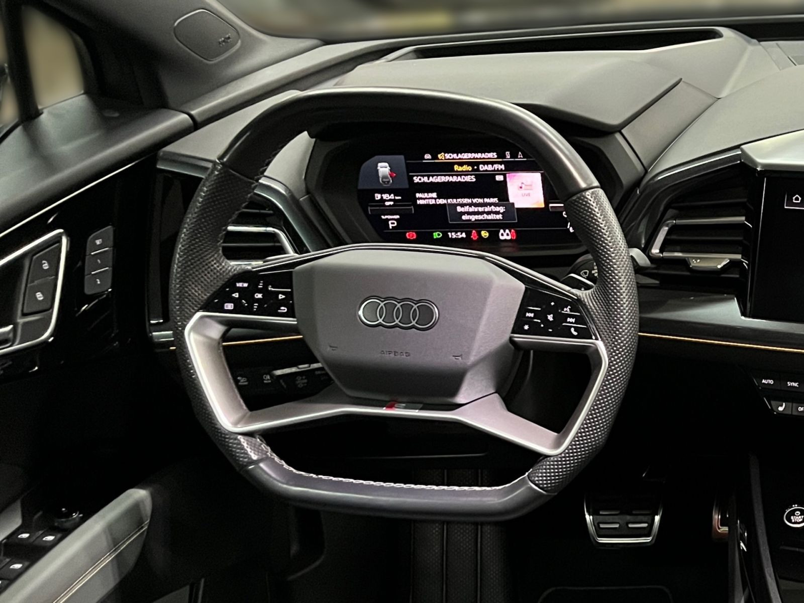 » Audi virtual cockpit plus» Augmented-Reality-Head-up-Display» Panorama-Glasdach » SONOS Premium Soundsystem Assistenzsysteme: » Adaptiver Geschwindigkeitsassistent mit Geschwindigkeitsbegrenzer» Ausweichassistent und Abbiegeassistent» Dynamikpaket plus » Kamerabasierte Verkehrszeichenerkennung» Müdigkeitserkennung» Reifendruck-Kontrollanzeige» Spurverlassenswarnung Multimedia: » Audi connect Remote & Control für MMI plus und pro» Bluetooth-Schnittstelle» Digitaler Radioempfang» MMI Navigation plus mit MMI touch» Smartphone-Interface Technik & Sicherheit: » 3-Zonen-Komfortklimaautomatik» Airbags vorn, Beifahrerairbag deaktivierbar» Audi drive select» Außenspiegel elektrisch einstell-, beheiz- und anklappbar, beidseitig automatisch abblendend» Hochvolt-Batterie 82 kWh (brutto)» Kindersitzbefestigung i-Size auf der Beifahrerseite und i-Size und Top Tetherauf den äußeren Fondsitzen» Klimatisierungspaket» Komfortschlüssel ohne Safelock» LED-Heckleuchten mit beleuchtetem Leuchtenband, dynamischem Blinklicht unddynamischer Lichtinszenierung» Memory-Funktion für den Fahrersitz und die Außenspiegel» On-board-Ladegerät bis 11 kW (AC)» Projektionsleuchte in den Außenspiegeln» Scheinwerfer-Reinigungsanlage» Seitenairbags vorn mit Kopfairbagsystem und Interaktionsairbag vorn» Tagfahrlichtschaltung Interieur: » Doppelspeichen-Sportlederlenkrad, oben und unten abgeflacht, mit Multifunktion und Schaltwippen» Einstiegsleisten mit Aluminiumeinlegern vorn, beleuchtet, S-Schriftzug» Innenspiegel automatisch abblendend, rahmenlos» Interieur S line mit Sportsitzen in Leder/Kunstleder-Kombination schwarz» Interieur S line mit Sportsitzen, Leder/Kunstleder-Kombination schwarz» Komfort Standklimatisierung» Komfortmittelarmlehne vorn» Komfortpaket plus » Leder/Kunstleder mono.pur 550-Kombination mit S-Prägung» Pedalerie aus Edelstahl» Sitzheizung vorn» Türarmauflage in Kunstleder» Vordersitze elektrisch einstellbar Exterieur: » Außenspiegelgehäuse in Schwarz» Dachreling in Schwarz» Elektrische Gepäckraumklappe mit sensorgesteuerter Gepäckraumentriegelung » Frontscheibe in Wärmeschutzverglasung» Optikpaket schwarz plus» Räder Audi Sport, 5-W-Speichen-Stern, bronze matt, 8,5J|9,0Jx21, Reifen 235/45|255/40 R21» Sonnenschutzverglasung abgedunkelt Sonstiges: » Ambiente-Lichtpaket plus» Assistenzpaket Schutz- und Warnsysteme» Assistenzpaket plus » Entfall Modellbezeichnung und Leistungs- und Technologieschriftzug» Kindersicherung elektrisch betätigt» Lenkrad mit Applikation Chromoptik, S-Emblem, Lenkradgriffe perforiertes Leder und Kontrastnaht» Stoßfänger S line» edition one taifungrau Audi Connect je nach Dienst zeitlich begrenzt, danach kostenpflichtig verlängerbar, Garantie 24 Monate ab Tag der Erstzulassung, Angaben zum Hersteller: AUDI AG, Audi, Auto-Union-Straße 1, 85057 Ingolstadt, Deutschland, +49-841-89-0, kundenbetreuung(at)audi.de, Produktinformationen: https://www.audi.de/de/rechtliches/gpsr/ Die angegebenen Verbrauchsangaben beziehen sich auf WLTP-Werte. Zwischenverkauf und Irrtümer für dieses Angebot sind ausdrücklich vorbehalten. Ausschlaggebend sind einzig und allein die Vereinbarungen in der Auftragsbestätigung oder im Kaufvertrag. Den genauen Ausstattungsumfang, die genauen Kilometer und den Verkaufspreis erhalten Sie von unserem Verkaufspersonal. Bitte kontaktieren Sie uns. Finanzierung