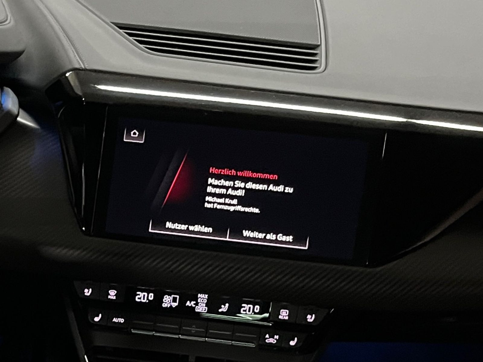 » Bang & Olufsen Premium Soundsystem mit 3D Klang » Head-up-Display » Panorama-Glasdach » Sitzbelüftung vorn» adaptive air suspension Assistenzsysteme: » Adaptiver Fahrassistent mit Notfallassistent» Adaptiver Geschwindigkeitsassistent mit Geschwindigkeitsbegrenzer, Effizienz-, Ausweich- und Abbiegeassistent» Allradlenkung» Assistenzpaket plus mit Remote Parkassistent plus » Audi pre sense basic, Audi pre sense front» Einstiegsleisten mit Aluminiumeinlegern vorn und hinten, beleuchtet» Kamerabasierte Verkehrszeichenerkennung» Reifendruck-Kontrollsystem Multimedia: » Audi connect Navigation & Infotainment» Digitaler Radioempfang » MMI Navigation plus mit MMI touch » Smartphone-Interface Technik & Sicherheit: » 3-Zonen-Komfortklimaautomatik» Airbags vorn, Beifahrerairbag deaktivierbar» Audi connect Notruf & Service mit Audi connect Remote & Control» Außenspiegel elektrisch einstell-, beheiz- und anklappbar, automatisch abblendend mit Memory-Funktion» Dachhimmel in Mikrofaser Dinamica schwarz» Elektromechanische Servolenkung plus» Kindersitzbefestigung ISOFIX und i-Size mit Top Tether für die äußeren Fondsitze» Komfortschlüssel mit sensorgesteuerter Gepäckraumentriegelung, ohne Safelock» LED-Heckleuchten mit dynamischem Blinklicht » LED-Scheinwerfer mit dynamischem Blinklicht» Matrix LED-Scheinwerfer mit dynamischem Blinklicht » Remote Parkassistent plus » Seitenairbags vorn und hinten und Kopfairbagsystem» Tagfahrlicht Interieur: » Innenspiegel automatisch abblendend, rahmenlos» Interieurelemente oben und unten in Leder Feinnappa/Mikrofaser Dinamica » Komfort Standklimatisierung » Leder-Kombination perforiert mit Wabensteppung » Pedalerie aus Edelstahl» Sitzheizung vorn» Sportkontur-Lederlenkrad, 3-Speichen, unten abgeflacht, Multifunktion plus, Lenkradheizung und Schaltwippen» Sportsitze pro vorn Exterieur: » Akustikverglasung für Tür- und Seitenscheiben» Außenspiegelgehäuse in Schwarz» Optikpaket schwarz plus» Räder, 5-Doppelspeichen-Konkavmodul, schwarz, 9,5J|11,5Jx21, Reifen 265/35|305/30 R21» Sonnenschutzverglasung abgedunkelt Sonstiges: » 400-Volt-Booster plus» Ambiente-Lichtpaket plus » Dekoreinlagen Carbon Köper seidenmatt» Hochvolt-Batterie 93 kWh (brutto)» Lenkrad in Leder Audi exclusive » LiFePO4-Batterie 450A (40Ah)» Nahtpaket Audi exclusive » Singleframe in Wagenfarbe» Stahlbremsanlage mit Wolframcarbid-Beschichtung und Bremssätteln in Orange» Zweiter Ladezugang» e-tron Sportsound» quattro mit geregelter Hinterachsdifferenzialsperre Garantie 24 Monate ab Tag der Erstzulassung, Angaben zum Hersteller: AUDI AG, Audi, Auto-Union-Straße 1, 85057 Ingolstadt, Deutschland, +49-841-89-0, kundenbetreuung(at)audi.de, Produktinformationen: https://www.audi.de/de/rechtliches/gpsr/ Die angegebenen Verbrauchsangaben beziehen sich auf WLTP-Werte. Zwischenverkauf und Irrtümer für dieses Angebot sind ausdrücklich vorbehalten. Ausschlaggebend sind einzig und allein die Vereinbarungen in der Auftragsbestätigung oder im Kaufvertrag. Den genauen Ausstattungsumfang, die genauen Kilometer und den Verkaufspreis erhalten Sie von unserem Verkaufspersonal. Bitte kontaktieren Sie uns. Finanzierung