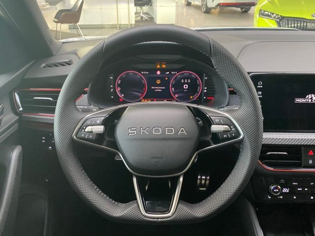 » Virtual Cockpit» Panorama Glass Dach Assistenzsysteme: » FRONT ASSIST Radarbeobachtung des Raums vor dem Fzg.,inkl. City ANB, ohne adaptive» Ablenkungs- und Müdigkeitserkennung» Berganfahrassistent» Geschwindigkeitsregelanlage + Speedlimiter» Mit Verkehrszeichenerkennung» Spurhalte assist» Tagesfahrlicht mit Assistenzfahrlicht u.Coming- Leaving-home Funktion manuell Multimedia: » Bluetooth mit Wireless Charging (ohne LTE)» DAB - Digitaler Radioempfang» Einstiegsinfotainment Radio GP (UNECE)» Extern, USB Typ-C Datenbuchse(n) und Ladebuchse(n) mit erhöhter Ladeleistung» USB in Dachhimmel (typ C - nur laden)ng» Wired & Wireless Smart Link+ Technik & Sicherheit: » PARK PILOT» Beifahrerairbag-Deaktivierung» Climatronic mit Stauluftregelung, FCKW-frei» Kindersitzverankerung für Kindersitzsystem I-Size, 2 x top tether und Kindersitzverankerung vorn BF-Seite» Mit Rückfahrkamerasystem (Ausf.2)» Notrufsystem eCall+» Seitenairbag vorn, mit Kopfairbag» Sonnenblenden mit Spiegel auf Beifahrerseite und Airbag-Label auf Sonnenblende» Start/Stopp-Anlage mit Rekuperation» Voll LED Hauptscheinwerfer Interieur: » Frontscheibe in Wärmeschutzglas beheizbar» Ledersportmultifunktionslenkrad, beheizbar» Mittelarmlehne vorn Jumbo Box» Rücksitzbank ungeteilt, Lehne geteilt umlegbar mit Mittelarmlehne» Sicherheitsinnenspiegel automatisch abblendbar» Sitzheizung für Vordersitze getrennt regelbar» Sportsitze Exterieur: » elektrisch anklapp-/einstell/beheizbar» Dachreling, schwarz» Heckklappe Standard» Komfortöffnung Heckklappe (Virtuelles Pedal)» Leichtmetallräder 7J x 18 Ursa (schwarz)» Vorbereitung für Anhängevorrichtung Sonstiges: » Alupedalset» Aussenspiegel schwarz, Schwarzes Dach» Außenspiegel, Fahrerseite automatisch abblendbar» CONVENIENCE Premium (ohne SAFE)» Doppelboden im Gep{ckraum» Drive Mode Select ohne Chassis Presets» Interierurleisten und Ausstr?merrahmen Rot» Kühlerschutzgitter - schwarz» Ländercluster Sonstige Genehmigungen» Monte Carlo» Netz unter der Gep{ckraumabdeckung» Remote Access / Proaktiver Dienst» Remote Access 3 Jahre» Schwarzes Dachhimmel» T}rverkleidung Insert - Kunststoff» WINTER Premium Technology Plus Garantie 24 Monate ab Tag der Erstzulassung, Angaben zum Hersteller: Skoda Auto Deutschland GmbH, Skoda, Max-Planck-Str. 3-5, 64331 Weiterstadt, 06150/133-0, info(at)skoda-auto.de Die angegebenen Verbrauchsangaben beziehen sich auf WLTP-Werte. Zwischenverkauf und Irrtümer für dieses Angebot sind ausdrücklich vorbehalten. Ausschlaggebend sind einzig und allein die Vereinbarungen in der Auftragsbestätigung oder im Kaufvertrag. Den genauen Ausstattungsumfang, die genauen Kilometer und den Verkaufspreis erhalten Sie von unserem Verkaufspersonal. Bitte kontaktieren Sie uns. Finanzierung