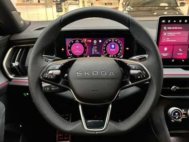 » Anhängevorrichtung mechanisch schwenkbarund elektrisch auslösbar» Anhängevorrichtung mechanisch schwenkbarund elektrisch auslösbar, mit Adapter» Head-Up Display» Virtual Cockpit Assistenzsysteme: » Ablenkungs- und Müdigkeitserkennung» Allwetter, Abbiege und Autobahnlicht» Anfahrhilfe-/ Abfahrhilfe» Auspark- und Spurwechselassistent und Ausstiegswarner» Automatische Distanzregelung» Dynamiklenkung» Front Assist mit Warnen und Bremsen auf Fahrzeuge, Fußgänger und Radfahrer» Leuchtweitenregulierung,autom/dynamisch mit Kurvenfahrlicht (AFS 1)» Mit Verkehrszeichenerkennung» Spurhalteassistent plus Emergency Assistund Stauassistent» Tagesfahrlicht mit Assistenzfahrlicht u.Coming- u. Leaving-home Funktion automatisch Multimedia: » DAB - Digitaler Radioempfang» Extern, USB Typ-C nur Datenbuchse(n) miterhöhter Ladeleistung und Ladebuchse(n)» Navigationssystem (Baseline) Technik & Sicherheit: » Airbag FS und BFS, ohne Knieairbag, mit BFS-Deaktivierung» Climatronic ( 3-Zonen ) mit Klimabedienteil hinten» Diebstahlalarmanlage, Innenraumüber- wachung,Back-up-Horn und Abschleppschutz» Kindersitzverankerung für Kindersitzsystem I-Size, 2 x top tether und Kindersitzverankerung vorn BF-Seite» Klimakomfortscheibe» LED- Hauptscheinwerfer mit Kurvenfahrlicht (spez. gestrakter Tagfahrlichtsignatur)» LED-SBBR-Leuchte, Lichtfunktionen animiert, spezielles Styling» Mit Kreuzungsassistent» Multipler Matrix-Beam» Parklenkassistent RPA (Remote Park Assist)» Remote Access + Infotainment Online 3 Jahre» Remote Access / Remote Access + Online Infotainment» Schlüsselloses Schließ- und Startsystem Keyless Advanced mit Safesicherung» Seitenairbag vorn, mit Kopfairbag und Interaktionsairbag vorn» Start/Stopp-Anlage mit Rekuperation» Aussenspiegel mit Memoryfunktion automatisch abblendbar, elektrisch anklapp-/einstellbar, separat beheizbar Interieur: » Komforttelefonie: Wireless Charging (fast charge) ohne Außenantennenanbindung» Ledersportmultifunktionslenkrad, beheizbar mit Tiptronic» Lendenwirbelstütze, pneumatisch einstellbar beidseitig» Rücksitzbank/-lehne, geteilt, umlegbar» Sicherheitsinnenspiegel automatisch abblendbar» Sitzeinstellung elektrisch für beide Vordersitze, mit Memory und Sitztiefeneinstellung» Sitzheizung für Vorder-/u.Hintersitze, getrennt regelbar» Sport-Komfortsitze vorn» Standheizung mit Funkfernbedienung Exterieur: » Dachreling, schwarz» Komfortöffnung Heckklappe (Virtuelles Pedal)» Leichtmetallräder 7 1/2J x 19» Sportline Sonstiges: » 7-Gang-Automatikgetriebe für Allrad» Ablagekästen im Kofferraum» Adaptive Fahrwerksregelung mit 2 - Ventildämpfer (DCC Plus)» Akustische Seitenscheiben vorne mit SunSet (hinten und hinten seitlich)» Allradantrieb» Assisted Drive Plus (RPA)» Außenspiegel mit Memoryfunktion automatisch abblendbar, elektrisch anklapp-/einstellbar, separat beheizbar» Convenience Paket Plus» Dekorleisten Chrom» Doppelboden im Kofferraum» Grill vorne mit horizontal beleuchtetem Streifen» Hinterachsgewicht Ausführung 5» Infotainment 13» Innenleuchte im Fußraum vorn und hinten» Light & View Paket Plus» Ländercluster Sonstige Genehmigungen» Mit Ausweichunterstützung mit Abbiegeassistent» Mit erweitertem Sicherheitssystem (PreCrash)» Orderbank Smart offer» Schriftzugsatz Schwarz» Sondermaßnahme A (Ausführung 1)» TOP AREA VIEW 360°» Technology Paket 13 Plus» Trainiertes Parken» Untere Dekor-Einlagen» Winter Paket Sport Garantie 24 Monate ab Tag der Erstzulassung, Angaben zum Hersteller: Skoda Auto Deutschland GmbH, Skoda, Max-Planck-Str. 3-5, 64331 Weiterstadt, 06150/133-0, info(at)skoda-auto.de Die angegebenen Verbrauchsangaben beziehen sich auf WLTP-Werte. Zwischenverkauf und Irrtümer für dieses Angebot sind ausdrücklich vorbehalten. Ausschlaggebend sind einzig und allein die Vereinbarungen in der Auftragsbestätigung oder im Kaufvertrag. Den genauen Ausstattungsumfang, die genauen Kilometer und den Verkaufspreis erhalten Sie von unserem Verkaufspersonal. Bitte kontaktieren Sie uns. Finanzierung
