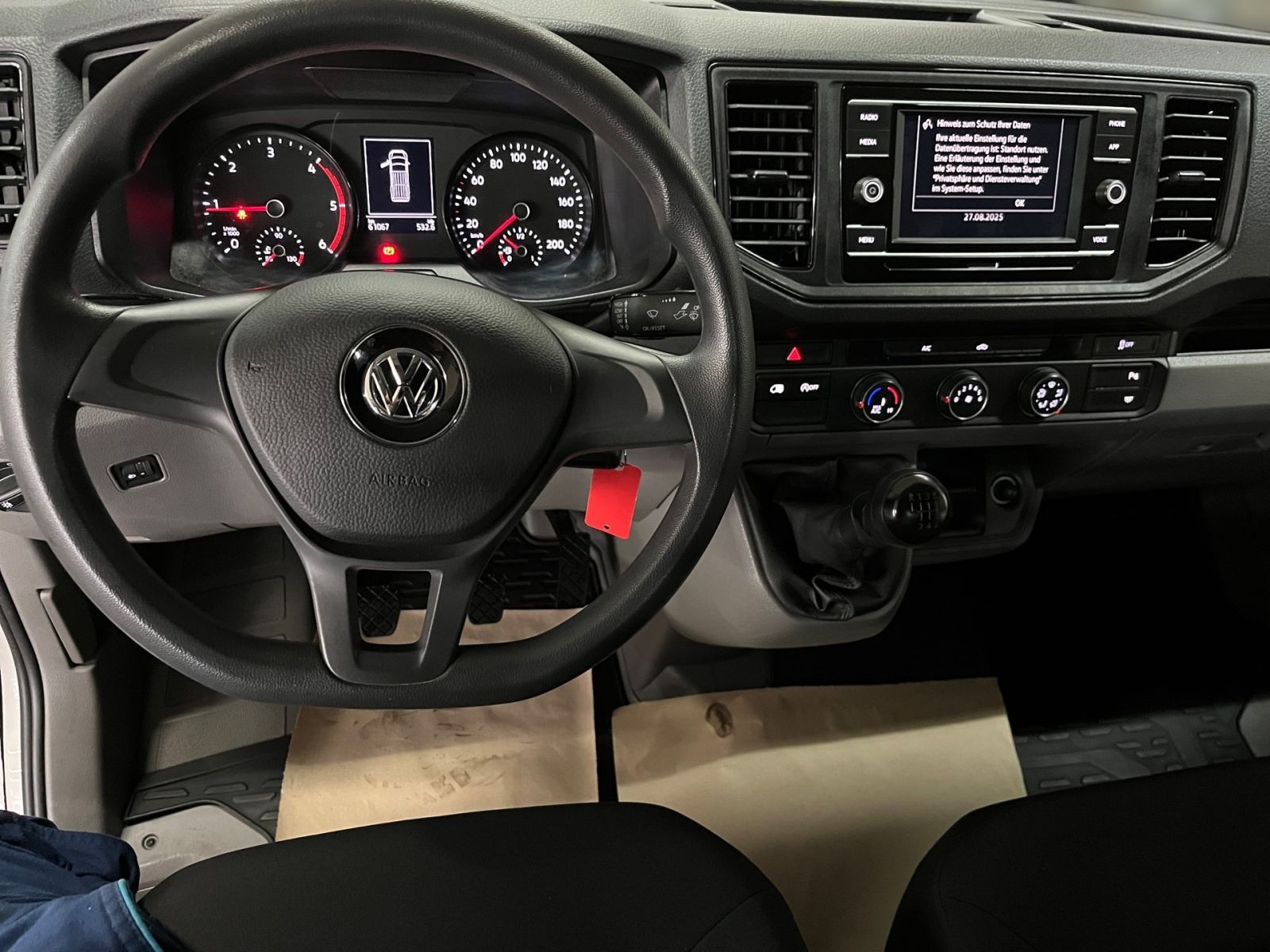 MwSt. ausweisbar FahrzeuginfosDetails + Ausstattung Umweltplakette: grün Hauptuntersuchung: 06.2026 Klimaanlage Garantie inkl. ESP ABS Anhängerkupplung AHK starr Wegfahrsperre Zentralverriegelung Elekt. Fensterheber Anzahl Türen: 5 Scheckheftgepflegt Hubraum: 1968 Sitze: 3 Schadstoffklasse: EURO 6 Standheizung Retarder Schiebetuer Radformel: Trennwand Partikelfilter Einparkhilfe Herstellerschlüsselnummer: 0603 Typschlüsselnummer: CBY Interieurfarbe: Schwarz Interieurtyp: Stoff Airbags vorne Vorbesitzer: 1 Bordcomputer MP3-Schnittstelle Radio/Tuner Tagfahrlicht Traktionskontrolle Start-Stop-Automatik Nichtraucher-Fahrzeug Fahrtauglich Einparkhilfe: Sensoren vorne Einparkhilfe: Sensoren hinten Einparkhilfe: Kamera Allwetterreifen Pannenkitt Stahlfelge Schiebetuer rechts Berganfahrassistent Radio DAB+ Notrufsystem Schiebetuer Touchscreen USB ehem. UVP: 100000 Detail Schadstoffklasse: EURO6 Modellbasis: Crafter 30 Kasten 2.0 L TDI L2H2 Klima Modellschlüssel: SYBA4A