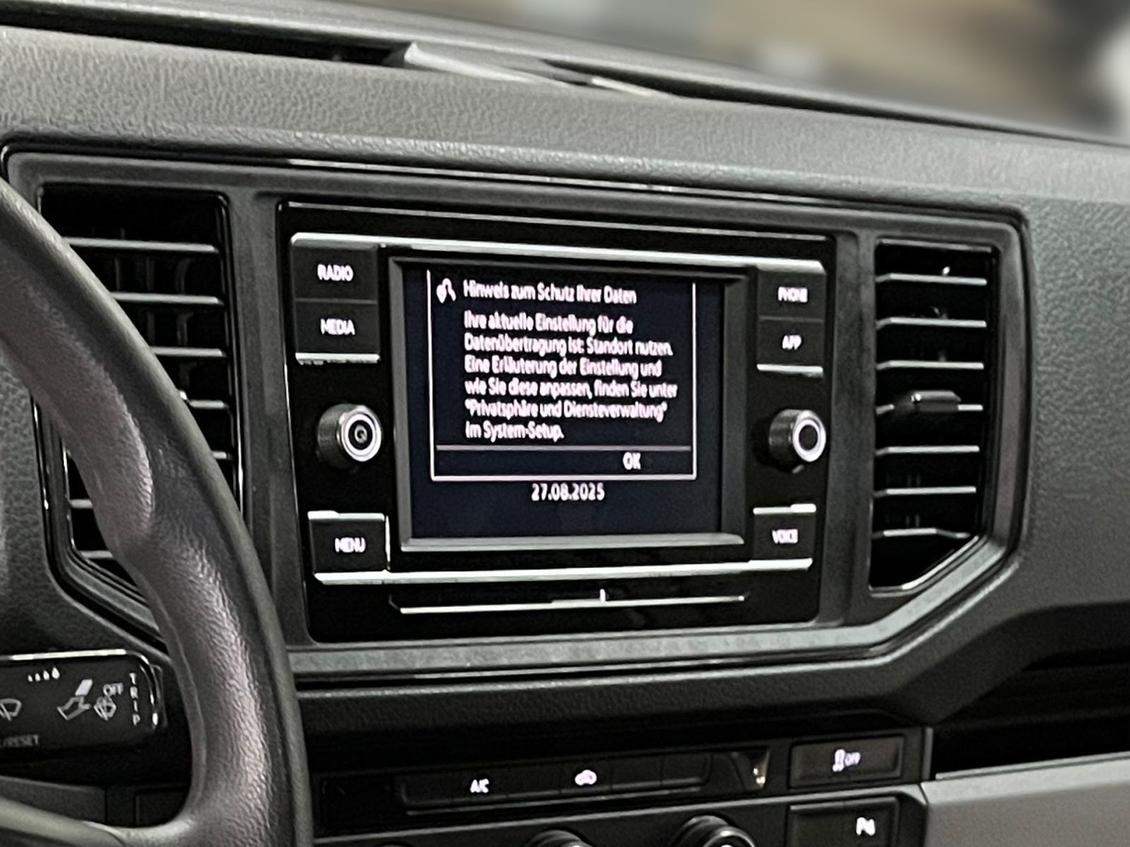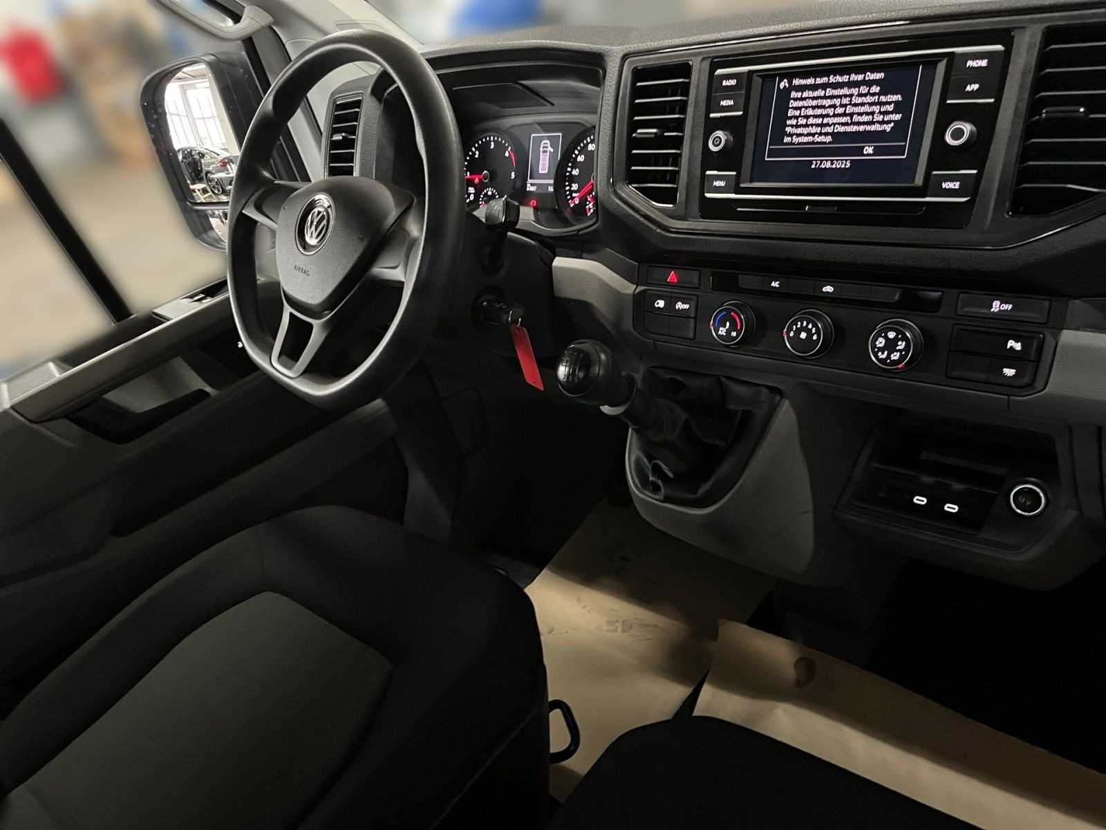 » Berganfahrassistent» Elektronisches Stabilisierungsprogramm und ABS Multimedia: » Digitaler Radioempfang (DAB+)» Radio Composition Colour mit 4 Lautsprechern» LED Fahrerhausbeleuchtung Technik & Sicherheit: » Airbag für Fahrer und Beifahrer mit Beifahrer-Airbag-Deaktivierung» Klimaanlage mit manueller Regelung im Fahrerhaus» Notrufsystem eCall» ParkPilot im Front- und Heckbereich» Rückfahrkamera Rear View» Tire Mobility Set: 12-Volt-Kompressor und Reifendichtmittel» Tagfahrlicht» Wegfahrsperre, elektronisch» Fensterheber, elektrisch» 2 Funkklappschlüssel» Motor-Start-Stopp-System mit Bremsenergie-Rückgewinnung» Zentralverriegelung mit Funkfernbedienung und Innenbetätigung Interieur: » Sitzbezüge in Stoff, Dessin Austin» Wasser-Zusatzheizung mit programmierbarer Standheizfunktion und Funkfernbedienung» Multifunktionsanzeige Plus Exterieur: » Anhängevorrichtung, starr (inkl. Gespannstabilisierung)» Ganzjahresreifen» Hochdach, außen in Wagenfarbe lackiert» Scharniere für Heckflügeltüren mit vergrößertem Öffnungswinkel (max. 270°)» Farbe Candy-Weiß» Schiebetür, rechts, im Lade-/ Fahrgastraum Sonstiges: » Innenfarbe: schwarz» 2 12-V-Steckdosen im Fahrgast-/ Laderaum (eine an der C-, eine an der D-Säule)» Ablagenpaket 2: Dachgalerie mit zwei 1 DIN-Schächten und Leseleuchte» Komfortsitz links, in der 1.Sitzreihe» Seitenfenster im Fahrgast-/ Laderaum, vorn rechts, fest verbaut» Trennwand, mit festem Fenster» Außenspiegel links, konvex, mit integrierter LED-Blinkleuchte und Weitwinkelbereich» Außenspiegel rechts, konvex, mit integrierter LED-Blinkleuchte und Weitwinkelbereich» Außenspiegel, von außen einstellbar» cw-Wert-optimierte Karosserie» Energie absorbierende Frontrahmenkonstruktion» Kühlerschutzgitter, unlackiert» Modulare selbsttragende Ganzstahlkarosserie (vollverzinkt) in Integralbauweise» Seitenschutzleisten aus Kunststoff, genarbt» Tankklappe mit Einfüllstutzen, durch Abschließen der Fahrertür gesichert» Trittstufen im Frontstoßfänger mit aerodynamischer Abdeckung» 16-Fahrwerk» Hinterachse als Starrachse mit Längsblattfedern und Anschlagpuffern» Hydraulische Zweikreisbremsanlage mit Unterdruck-Bremskraftverstärker» Vorderachse mit Einzelradaufhängung» Bremsbelagverschleißanzeige» Rückfahrscheinwerfer, zwei» Spiegel-Blinklichter in LED-Technik» Diverse Ablagen und Staufächer» Haltegriff an der A-Säule auf Fahrer- und Beifahrerseite» Haltegriff an der Trennwand im Lade-/ Fahrgastraum» Trittstufen, innen» 12-V-Anlage» 12-V-Steckdose und 4 Becherhalter in der Armaturentafel» Abgasnorm Euro 6d ISC-FCM» Elektromechanische Lenkung, Lenkrad in Höhe und Reichweite verstellbar» Heiz- und Frischluftanlage mit mehrstufigem Frischluftgebläse, Umluftbetrieb» Zulassung als Lkw mit einer N1-Zulassung (bis einschließlich 3,5 t zulässigem Gesamtgewicht) Angaben zum Hersteller: Volkswagen AG, Volkswagen Nutzfahrzeuge, Mecklenheidestraße 74, 30419 Hannover, Deutschland, +49-5361-9-0, kundenbetreuung(at)volkswagen.de, Produktinformationen: https://www.volkswagen.de/idhub/content/dam/onehub_master/downloads/product-safety-cv/volkswagen-cv-sicherheitshinweise-de.pdf Die angegebenen Verbrauchsangaben beziehen sich auf WLTP-Werte. Zwischenverkauf und Irrtümer für dieses Angebot sind ausdrücklich vorbehalten. Ausschlaggebend sind einzig und allein die Vereinbarungen in der Auftragsbestätigung oder im Kaufvertrag. Den genauen Ausstattungsumfang, die genauen Kilometer und den Verkaufspreis erhalten Sie von unserem Verkaufspersonal. Bitte kontaktieren Sie uns. Finanzierung
