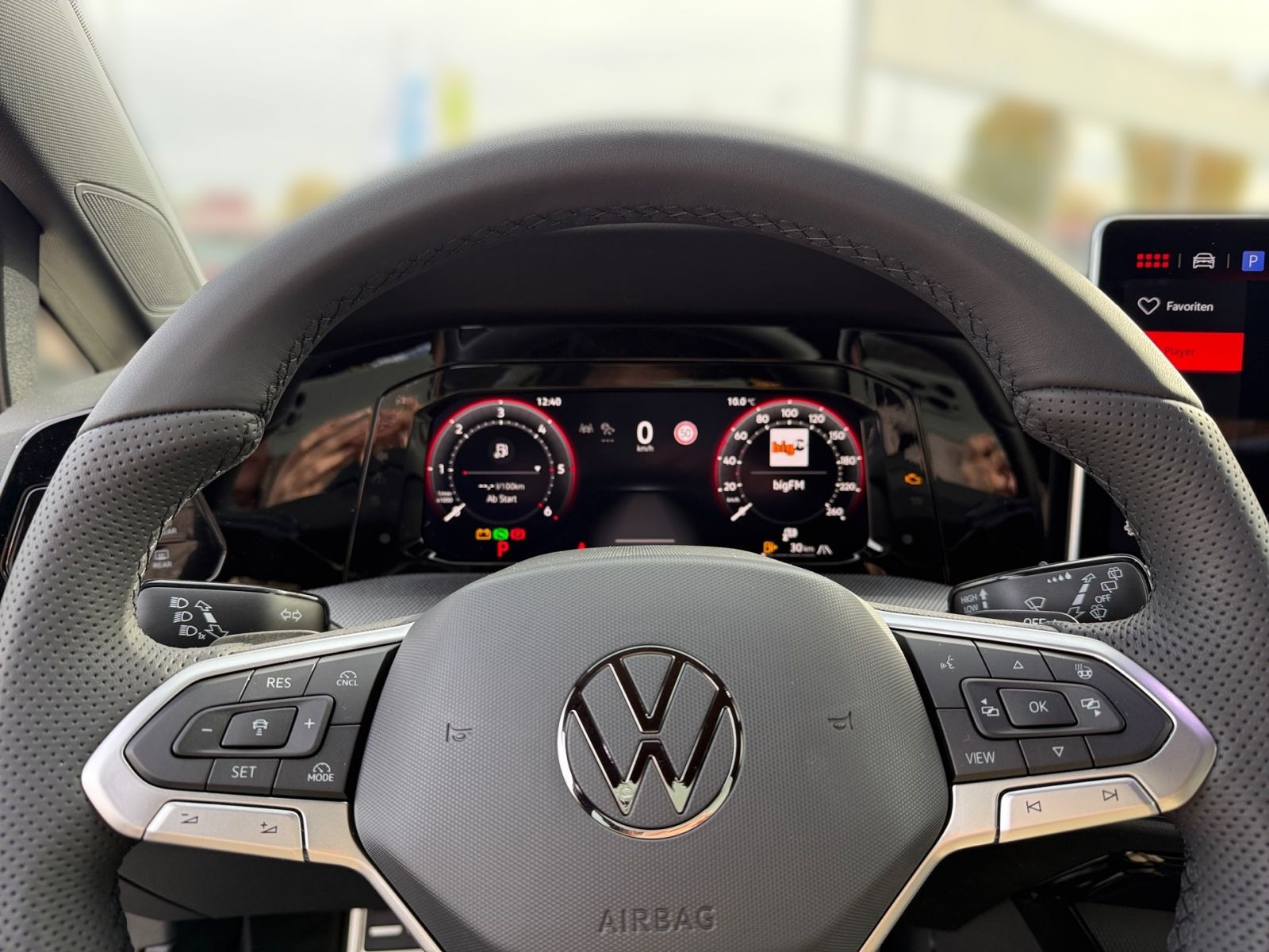 » Anhängevorrichtung anklappbar, mit elektrischer Entriegelung» Digital Cockpit Pro, mehrfarbig, verschiedene Info-Profile wählbar Assistenzsysteme: » Elektronisches Stabilisierungsprogramm und elektromechanischer Bremskraftverstärker» Elektronische Differenzialsperre XDS» Spurhalteassistent Lane Assist» Elektronische Begrenzung der Höchstgeschwindigkeit» Reifenkontrollanzeige» Dynamischer Fernlichtassistent Dynamic Light Assist» IQ.LIGHT - LED-Matrix-Scheinwerfer mit Fernlicht Plus» Notbremsassistent Front Assist mit Fußgänger- und Radfahrererkennung» Regensensor» Leuchtweitenregulierung dynamisch, mit dynamischem Kurvenfahrlicht» Automatische Distanzregelung ACC» Abbiege- und Schlechtwetterlicht» Ablenkungs- und Müdigkeitserkennung» Geschwindigkeitsbegrenzer mit vorausschauender Regelung» Verkehrszeichenerkennung» Berganfahrassistent Multimedia: » Navigationssystem» Diversity-Antenne für FM-Empfang» App-Connect Wireless für Apple CarPlay und Android Auto» Telefonschnittstelle mit induktiver Ladefunktion» Sprachassistent IDA und elektronische Sprachverstärkung» Digitaler Radioempfang DAB+» 2 USB-C-Schnittstellen vorn, 2 USB-C-Ladebuchsen an der Mittelkonsole hinten, Ladeleistung bis zu 45 W Technik & Sicherheit: » Tire Mobility Set: 12-Volt-Kompressor und Reifendichtmittel» Sportfahrwerk» Progressivlenkung» ISOFIX-Halteösen für Kindersitze auf den äußeren Rücksitzen sowie auf dem Beifahrersitz, i-Size-kompatibel» Schlüsselloses Startsystem Keyless Start ohne Safe-Sicherung» Airbag für Fahrer und Beifahrer, mit Beifahrerairbag-Deaktivierung» Abgaskonzept, WLTP3 M1, N1-I//EU6EA» Kopfairbags vorn und hinten, Seitenairbags vorn, Center-Airbag» Außenspiegel elektrisch einstell-, anklapp-, beheizbar, mit Memory-Funktion und Beifahrerspiegelabsenkung» Wegfahrsperre elektronisch» Start-Stopp-System mit Bremsenergie-Rückgewinnung» Einparkhilfe - Warnsignale bei Hindernissen im Front- und Heckbereich» 3D-LED-Rückleuchten mit dynamischer Blinkleuchte» Fahrlichtschaltung automatisch, mit LED-Tagfahrlicht sowie Begrüßungsund Verabschiedungslicht» 7-Gang-Automatikgetriebe oder DSG Beachtung: Fam. EDF» Rückfahrkamera Rear View» Klimaanlage Climatronic» Notruf-Service, Laufzeit 10 Jahre ab Erstauslieferung, Voraussetzung: Verfügbarkeit benötigter Mobilfunknetze» Serviceanzeige 30000 km oder 2 Jahre ( flexibel ) Interieur: » Winterpaket» Multifunktions-Sportlenkrad in Leder, beheizbar, mit Schaltwippen» Rücksitzbank ungeteilt, Lehne asymmetrisch geteilt umklappbar, mit Mittelarmlehne» Vordersitze beheizbar» Innenspiegel automatisch abblendend» Mittelarmlehne vorn höhen- und längseinstellbar» Lendenwirbelstützen vorn» Sitzmittelbahnen der Vordersitze und der äußeren Rücksitzplätze in Stoff R-Line, -innenwangen in ArtVelours» Top-Sportsitze vorn Exterieur: » York 7,5 J x 18 in Schwarz/ glanzgedreht, Volkswagen R, Reifen 225/40 R 18» Farbe Delfingrau Metallic» 4 Leichtmetallräder York 7,5 J x 18 in Schwarz, Oberfläche glanzgedreht, Volkswagen R» Seitenscheiben hinten und Heckscheibe abgedunkelt» Außenspiegelgehäuse in Schwarz» R-Line Sonstiges: » Innenfarbe: grau» Infotainment-Paket Discover» Design-Paket Black Style inkl. IQ.LIGHT - LED-Matrix-Scheinwerfer» Umfeldbeleuchtung mit Lichtprojektion» Fahrprofilauswahl» Vordersitze mit Höheneinstellung» Abbiegebremsfunktion und Ausweichunterstützung» Dekoreinlagen Mesh für Instrumententafel und Türverkleidungen vorn» Schalthebelknopf/-Griff in Kunststoff» 12-V-Steckdose im Gepäckraum» Infotainment-System mit 32,7-cm-Display (12,9 Zoll)» Fahrzeuge mit besonderen Produktaufwertungsmaßnahmen» Multifunktionskamera» Ambientebeleuchtung 30-farbig» Volkswagen Logo vorn, Leiste zwischen den Scheinwerfern sowie Türgriffmulden beleuchtet» Elektronische Parkbremse inkl. Auto-Hold-Funktion» Pedale in Edelstahl gebürstet Garantie 24 Monate ab Tag der Erstzulassung, Angaben zum Hersteller: Volkswagen AG, Volkswagen, Berliner Ring 2, 38440 Wolfsburg, Deutschland, +49-5361-9-0, kundenbetreuung(at)volkswagen.de, Produktinformationen: https://www.volkswagen.de/idhub/content/dam/onehub_master/downloads/product-safety/volkswagen-sicherheitshinweise-de.pdf Die angegebenen Verbrauchsangaben beziehen sich auf WLTP-Werte. Zwischenverkauf und Irrtümer für dieses Angebot sind ausdrücklich vorbehalten. Ausschlaggebend sind einzig und allein die Vereinbarungen in der Auftragsbestätigung oder im Kaufvertrag. Den genauen Ausstattungsumfang, die genauen Kilometer und den Verkaufspreis erhalten Sie von unserem Verkaufspersonal. Bitte kontaktieren Sie uns. Finanzierung