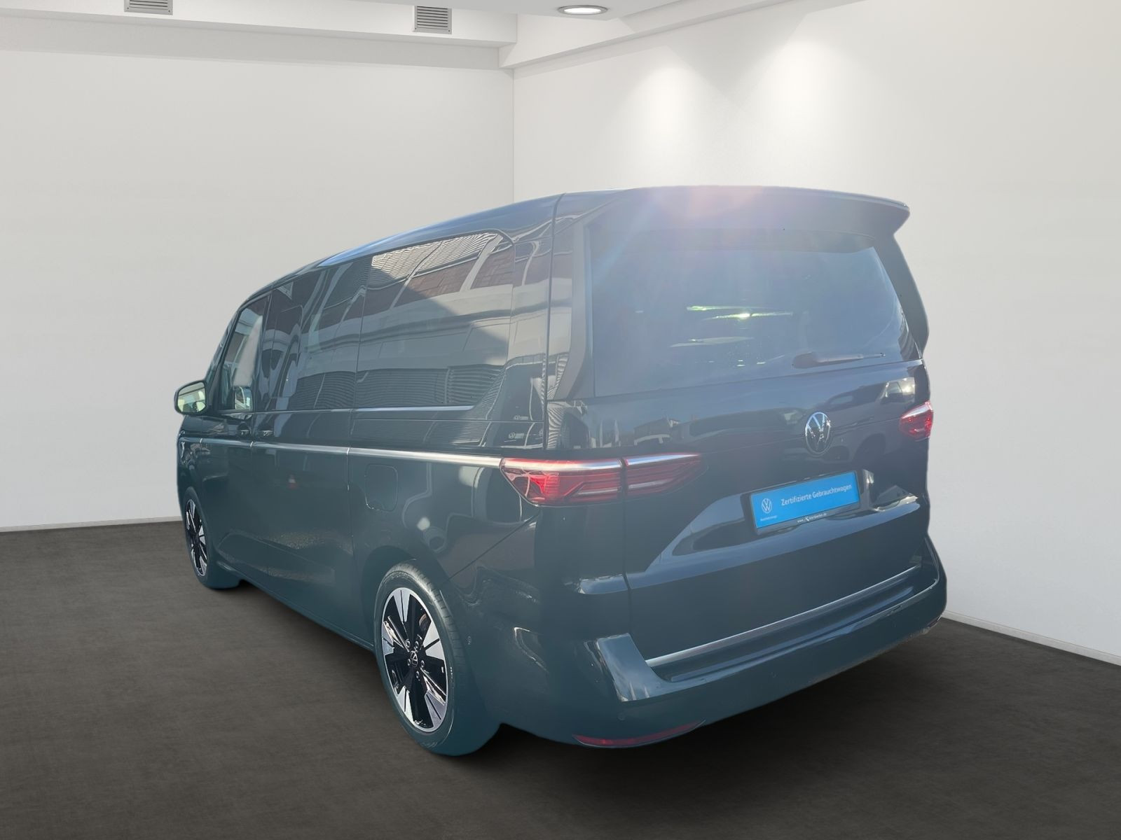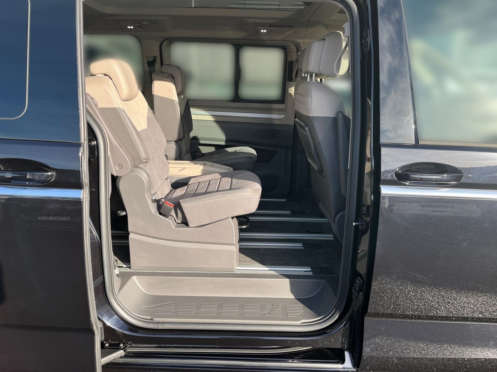 » Assistenzpaket Advanced» Fahrerassistent Travel Assist inklusive Spurhalteassistent Lane Assist und Emergency Assist» Spurwechselassistent Side Assist inklusive Blind Spot Detection, Ausparkassistent und Ausstiegswarner» Automatische Distanzregelung ACC stop & go» Fahrprofilauswahl für DCC» Tagfahrlichtschaltung mit Assistenzfahrlicht sowie Coming home und Leaving home-Funktion» Dynamische Fernlichtregulierung Dynamic Light Assist für LED-Matrix-Scheinwerfer» Schlechtwetterlicht (inklusive Abbiegelicht)» Scheibenwischer-Intervallschaltung mit Regensensor für die Frontscheibenwischer» Reifenkontrollanzeige (nach EU Typprüfung)» Geschwindigkeits-Regelanlage» Geschwindigkeitsbegrenzer und Intelligent Speed Assist» Anti-Blockier-System (ABS)» Fahrassistenz-System: Bremsassistent (HBA)» Notbremsassistent Front Assist mit Fußgänger- und Radfahrererkennung» Verkehrszeichenerkennung» Ablenkungs- und Müdigkeitserkennung Multimedia: » Mobiltelefon-Schnittstelle Comfort mit induktiver Ladefunktion» Navigationssystem Discover Pro mit 25,4 cm (10) Touch-Farbdisplay inklusive Streaming & Internet» Digitaler Radioempfang» 8 Lautsprecher ( passiv )» Sprachassistent IDA und elektronische Sprachverstärkung» 2 USB-C-Schnittstellen vorn, 4 USB-C-Ladebuchsen im Fahrgastraum» App-Connect inklusive App-Connect Wireless für Apple CarPlay und Android Auto Technik & Sicherheit: » Raucherausführung: Zigarettenanzünder und Wanderaschenbecher» Anhängevorrichtung mit Anhängerrangierassistent und Parklenkassistent Trailer/Parkassist» 2 Einzelsitze in Fahrtrichtung in der 2. Sitzreihe» Außenspiegel elektr. verstell-, heiz- und anklappbar» Außenspiegelgehäuse in Schwarz hochglanz» IQ.LIGHT-LED-Matrix-Scheinwerfer mit LED-Tagfahrlicht» LED-Rückleuchten» Notrufsystem eCall, Voraussetzung: Verfügbarkeit benötigter Mobilfunknetze» Parklenkassistent Park Assist und Einparkhilfe im Front- und Heckbereich» Airbags für Fahrer und Beifahrer, mit Beifahrer-Airbag-Deaktivierung» Seiten- und Kopfairbag für Fahrer und Beifahrer, Kopfairbags für die äußeren Sitzplätze hinten und Mittenairbag vorn» 3-Zonen Klimaanlage Air Care Climatronic mit zusätzlichem Bedienteil im Fahrgastraum (nicht beim Beach)» Isofix-Aufnahmen für Kindersitz an Rücksitz» Fensterheber elektrisch vorn» Zentralverriegelung mit schlüssellosem Startsystem Keyless Start, mit Safesicherung» Sonnenblenden mit Spiegel, beleuchtet, Tickethalter auf der Fahrerseite, mit Airbaglabel auf Sonnenblende und B-Säule» Diebstahl-Alarmanlage mit Innenraumüberwachung, Back-up-Horn und Abschleppschutz» Rückfahrkamera Rear View» Servolenkung, geschwindigkeitsabhängig (Servotronic)» Abgaskonzept, WLTP3 M1, N1-I//EU6EA» Start/Stop-Anlage Motor Interieur: » AGR ErgoComfort Sitze vorne, ArtVelours, elektr. verstellbar, nur für Fahrer mit Memory - & Massagefunktion» Sitzheizung für beide Sitze im Fahrerhaus und die äußeren Sitze des Fahrgastraums (getrennt regelbar)» Standheizung für Frontscheibenenteisung und Erwärmung/Lüftung des Fahrerhauses mit Funkfernbedienung» Multifunktions-Lederlenkrad mit Schaltwippen, beheizbar» 3 Einzelsitze in der 3. Sitzreihe» Audiosystem Ready 2 Discover (Touchscreen-Farbdisplay 10, inkl. Streaming & Internet)» Armlehnen für Fahrer- und Beifahrersitz, beidseitig, mit elektrischer Lendenwirbelstütze und Klapptisch» 2 Vorbereitungen für Armlehnen innenseitig in der 3. Sitzreihe» Sicherheitsinnenspiegel, automatisch abblendend Exterieur: » Deep Black Perleffekt» 4 Leichtmetallräder Halmstad 8J x 19, in Schwarz, Oberfläche glanzgedreht Leichtmetallräder Halmstad 8J x 19, in Schwarz, Oberfläche glanzgedreht» Schiebefenster in der Schiebetür links und rechts , inklusive Privacy Verglasung im Fond» Scheiben im Fond abgedunkelt» Schiebefenster in der Schiebetür, links» Schiebefenster in der Schiebetür, rechts» Farbe Deep Black Perleffekt» Schiebetür links, elektrisch» Schiebetür rechts, elektrisch» Umfeldbeleuchtung Heckklappe Garantie 24 Monate ab Tag der Erstzulassung, Angaben zum Hersteller: Volkswagen AG, Volkswagen Nutzfahrzeuge, Mecklenheidestraße 74, 30419 Hannover, Deutschland, +49-5361-9-0, kundenbetreuung(at)volkswagen.de, Produktinformationen: https://www.volkswagen.de/idhub/content/dam/onehub_master/downloads/product-safety-cv/volkswagen-cv-sicherheitshinweise-de.pdf Die angegebenen Verbrauchsangaben beziehen sich auf WLTP-Werte. Zwischenverkauf und Irrtümer für dieses Angebot sind ausdrücklich vorbehalten. Ausschlaggebend sind einzig und allein die Vereinbarungen in der Auftragsbestätigung oder im Kaufvertrag. Den genauen Ausstattungsumfang, die genauen Kilometer und den Verkaufspreis erhalten Sie von unserem Verkaufspersonal. Bitte kontaktieren Sie uns. Finanzierung