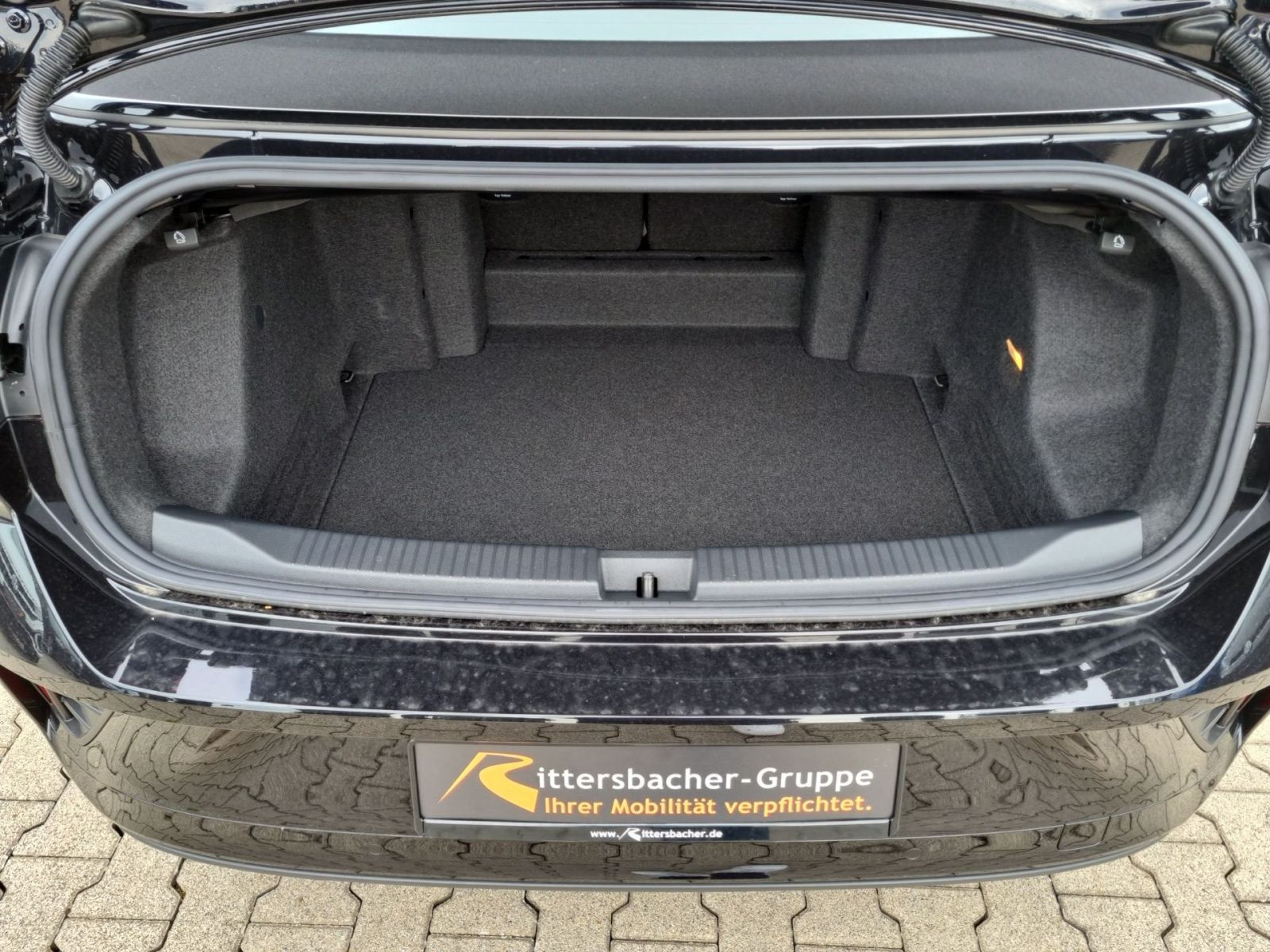 » Anhängevorrichtung abnehmbar und abschließbar» Digital Cockpit, mehrfarbig, verschiedene Info-Profile wählbar Assistenzsysteme: » Elektronisches Stabilisierungsprogramm mit Gegenlenkunterstützung, ABS, ASR, EDS, MSR und Gespannstabilisierung» Spurhalteassistent Lane Assist» Notbremsassistent Front Assist (für automatische Distanzregelung ACC bis 210 km/h)» Reifenkontrollanzeige» Parklenkassistent Park Assist inkl. Einparkhilfe» Fernlichtassistent Light Assist» Regensensor» Automatische Distanzregelung ACC stop & go, mit Geschwindigkeitsbegrenzer» Abbiege- und Schlechtwetterlicht» Ablenkungs- und Müdigkeitserkennung» Verkehrszeichenerkennung Multimedia: » Navigationssystem Discover Media» Radio» 6 Lautsprecher» Diversity-Antenne für FM-Empfang» App-Connect Wireless für Apple CarPlay und Android Auto» Telefonschnittstelle mit induktiver Ladefunktion» Digitaler Radioempfang DAB+» 2 USB-C-Schnittstellen vorn, 2 USB-C-Ladebuchsen an der Mittelkonsole hinten, Ladeleistung bis zu 45 W Technik & Sicherheit: » Schlüsselloses Schließ- und Startsystem Keyless Access mit SAFE-Verriegelung» Klimaanlage Air Care Climatronic mit Aktiv-Kombifilter und 2-Zonen-Temperaturregelung» Diebstahlwarnanlage» Tire Mobility Set: 12-Volt-Kompressor und Reifendichtmittel» Sportfahrwerk» Progressivlenkung» ISOFIX-Halteösen (Vorrichtung zur Befestigung von 2 Kindersitzen auf der Rücksitzbank)» Fensterheber elektrisch» Airbag für Fahrer und Beifahrer, mit Beifahrerairbag-Deaktivierung» Abgaskonzept, WLTP3 M1, N1-I//EU6EB» Kopf- und Seitenairbags vorn, kombiniert» Außenspiegel elektrisch einstell-, anklapp-, beheizbar, mit Memory-Funktion» Diebstahlwarnanlage mit Innenraumüberwachung, Back-up-Horn und Abschleppschutz» Start-Stopp-System mit Bremsenergie-Rückgewinnung» LED-Plus-Scheinwerfer mit LED-Tagfahrlicht» LED-Rückleuchten dunkelrot» Fahrlichtschaltung automatisch, mit LED-Tagfahrlicht sowie Coming homeund Leaving home-Funktion» 7-Gang-Automatikgetriebe oder DSG Beachtung: Fam. EDF» Notruf-Service, Laufzeit 10 Jahre ab Erstauslieferung, Voraussetzung: Verfügbarkeit benötigter Mobilfunknetze» Serviceanzeige 30000 km oder 2 Jahre ( flexibel ) Interieur: » Windschott» Sitzmittelbahnen und -wangeninnenseiten in Leder Vienna» Winterpaket» Multifunktions-Sportlenkrad in Leder, beheizbar, mit Schaltwippen» Rücksitzlehne symmetrisch geteilt umklappbar» Vordersitze beheizbar» Mittelarmlehne vorn» Lendenwirbelstützen vorn elektrisch einstellbar» Sport-Komfortsitze vorn Exterieur: » Misano 8 J x 19 in Schwarz, Reifen 225/40 R 19» R-Line» 4 Leichtmetallräder Misano 8 J x 19 in Schwarz Sonstiges: » Innenfarbe: schwarz» Infotainment-Paket Discover Media» Design-Paket Black Style» Farbe Deep Black Perleffekt / Schwarz» Fahrprofilauswahl» Textilverdeck elektrisch-hydraulisch» Einstiegshilfe Easy Entry» Vordersitze mit Höheneinstellung» Dekoreinlagen Lava Stone Black für Instrumententafel, Mittelkonsole und Türverkleidungen vorn» Außenspiegelgehäuse schwarz» Einstiegsleisten vorn mit R-Line-Schriftzug» Leuchtweitenregulierung dynamisch» Bremsbelagverschleißanzeige» Fahrzeuge mit besonderen Produktaufwertungsmaßnahmen» Cabriolet» 4 Zyl.Ottomotor 1,5L Aggr. 05E.D» Multifunktionskamera» Ambientebeleuchtung weiß» Elektronische Parkbremse inkl. Auto-Hold-Funktion» Pedale in Edelstahl gebürstet» Fußgängererkennung Garantie 24 Monate ab Tag der Erstzulassung, Angaben zum Hersteller: Volkswagen AG, Volkswagen, Berliner Ring 2, 38440 Wolfsburg, Deutschland, +49-5361-9-0, kundenbetreuung(at)volkswagen.de, Produktinformationen: https://www.volkswagen.de/idhub/content/dam/onehub_master/downloads/product-safety/volkswagen-sicherheitshinweise-de.pdf Die angegebenen Verbrauchsangaben beziehen sich auf WLTP-Werte. Zwischenverkauf und Irrtümer für dieses Angebot sind ausdrücklich vorbehalten. Ausschlaggebend sind einzig und allein die Vereinbarungen in der Auftragsbestätigung oder im Kaufvertrag. Den genauen Ausstattungsumfang, die genauen Kilometer und den Verkaufspreis erhalten Sie von unserem Verkaufspersonal. Bitte kontaktieren Sie uns. Finanzierung