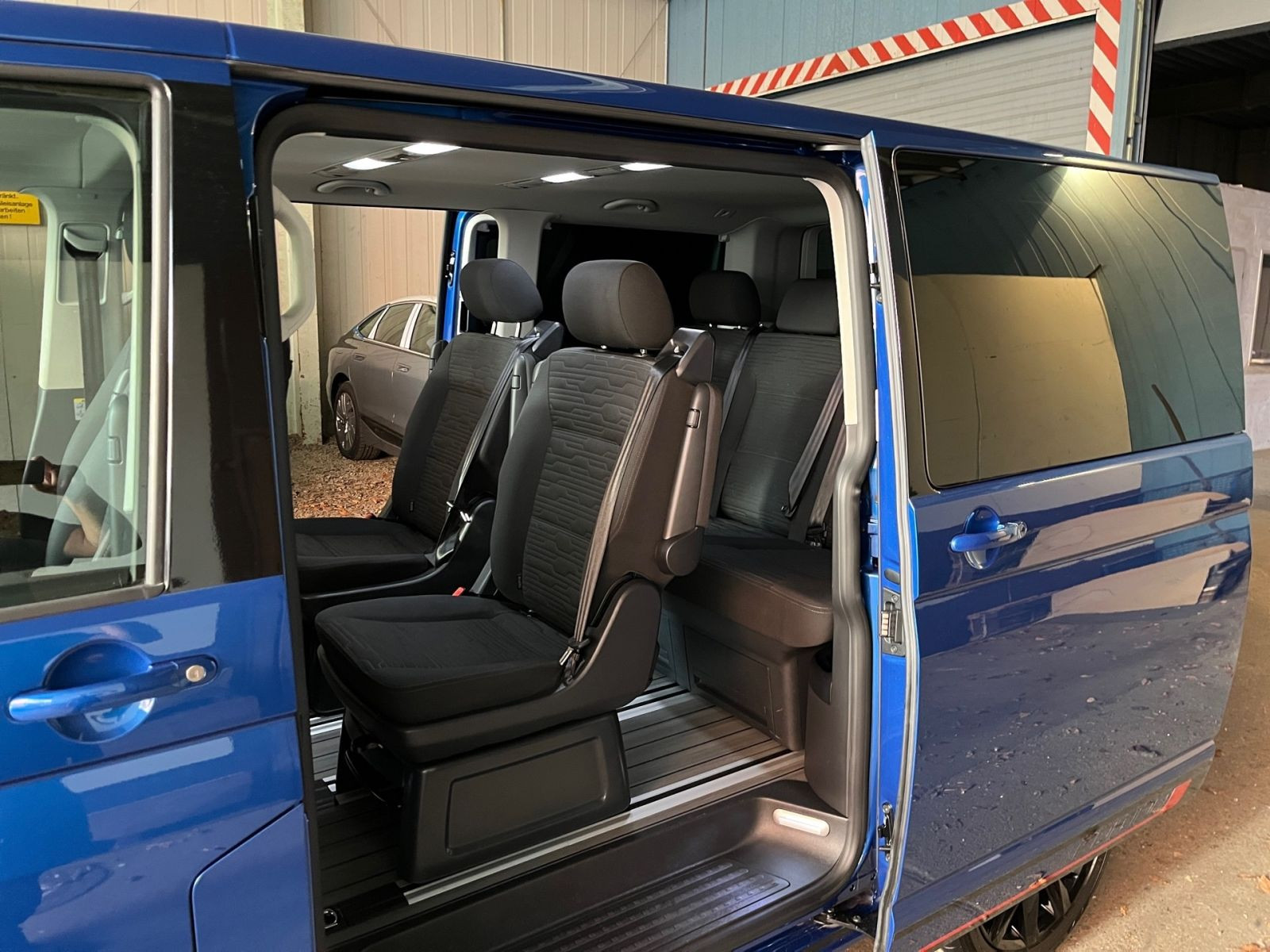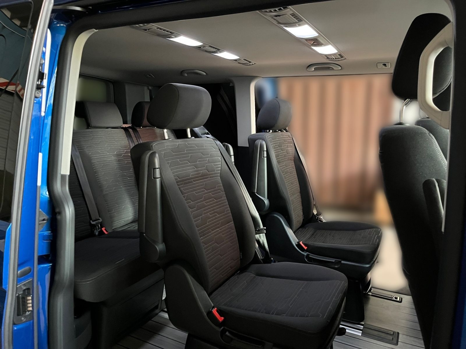 » Anhänger-Stabilisierungs-Programm» Digital Cockpit Digital Cockpit und Müdigkeitserkennung» Fahrassistenz-System: Müdigkeitserkennungs-Sensor» Fahrassistenz-System: Einparkhilfe vorn und hinten» Geschwindigkeits-Begrenzeranlage» Fernlichtregulierung Light Assist» Fahrassistenz-System: Autom. Distanzregelung (ACC) und Umfeldbeobachtungssystem (Front Assist, bis 210 km/h)» Umfeldbeobachtungssystem Front Assist mit City-Notbremsfunktion (für automatische Distanzregelung ACC)» Fahrassistenz-System: City-Notbremsfunktion» Verkehrszeichenerkennung» Spurhalteassistent Lane Assist, Spurwechselassistent Side Assist und Ausparkassistent» Fahrassistenz-System: Spurwechselassistent (Side Assist / Blind Spot Sensor)» Fahrassistenz-System: Spurhalteassistent (Lane Assist)» Elektronisches Stabilisierungsprogramm, ABS, ASR(mit Deaktivierungstaster), EDS, Berganfahrassistent und Bremsassistent» Berganfahrassistent Multimedia: » Mobiltelefon-Schnittstelle Comfort mit induktiver Ladefunktion» Navigationssystem Discover Pro inklusive Streaming & Internet» Sprachbedienung» Digitaler Radioempfang (DAB+)» 2 USB-Schnittstellen (Typ C) in der Armaturentafel, 2 USB-Ladebuchsen auf Höhe der C-Säule, links» Mobile Online Dienste App-Connect Technik & Sicherheit: » Dynamikfahrwerk, inkl. Tieferlegung um ca. 20 mm» Diebstahl-Alarmanlage mit Innenraumüberwachung, Back-up-Horn und Abschleppschutz Diebstahl-Alarmanlage mit Innenraumüberwachung, Back-up-Horn und Abschleppschutz» Zentralverriegelung mit Funkfernbedienung, Innenbetätigung und Safesicherung» Rückfahrkamera Rear View (statische Linien)» Winterpaket Plus» Parklenkassistent Park Assist mit ParkPilot im Front- und Heckbereich und Flankenschutz» Klimaanlage Climatronic mit 2. Verdampfer, 2. Heizung, Klimahimmel und zusätzlicher Bedienung im Fahrgastraum» Tagfahrlicht LED» Außenspiegel, elektrisch einstell-, beheiz- und anklappbar, inklusive Anklappfunktion über Fahrzeugschlüssel» LED-Hauptscheinwerfer mit LED-Tagfahrlicht» Nebelscheinwerfer inkl. Abbiegelicht» Notrufsystem eCall» Mobile Online Dienste We Connect Plus» Airbags für Fahrer und Beifahrer, mit Beifahrer-Airbag-Deaktivierung» Seiten- und Curtainairbag für Fahrer und Beifahrer» Velour-Vlies-Bodenbelag im Fahrerhaus» Fensterheber elektrisch» 2 Funkklappschlüssel» Sonnenblenden mit Spiegel, beleuchtet, sowie Airbag-Label auf der Beifahrersonnenblende» Tire Mobility Set: 12-Volt-Kompressor und Reifendichtmittel» Servolenkung elektromechanisch, geschwindigkeitsabhängig geregelt, Lenksäule höhen- und längenverstellbar» Abgasnorm Euro 6d TEMP-EVAP-ISC» Start-Stopp-System mit Bremsenergie-Rückgewinnung» 7-Gang-Automatikgetriebe inklusive Freilauffunktion Interieur: » Sitzbezüge in Stoff, Dessin Circuit» Raucherausführung: mit Zigarettenanzünder und Aschenbecher in der Armaturentafel» Verbundglas-Frontscheibe in Dämmglas, beheizbar» Standheizung mit Fernbedienung, Zeitschaltuhr und Zuheizer» Sitzheizung für Sitze im Fahrerhaus, links und rechts, getrennt regelbar» Sitze im Fahrerhaus: Lendenwirbelstütze Fahrersitz» Sitze im Fahrerhaus: Lendenwirbelstütze Beifahrersitz» Sitze im Fahrerhaus: Armlehnen, Fahrersitz» Sitze im Fahrerhaus: Armlehnen, Beifahrersitz» Sonnenschutzrollos an den Seitenfenstern im Fahrgastraum» Lendenwirbelstützen für linken und rechten Einzelsitz in der 1.Sitzreihe (beide manuell einstellbar)» Armlehnen für beide Sitze im Fahrerhaus» 3er-Sitzbank mit Liegefunktion und Staufach, verschiebbar, in der 3.Sitzreihe» Sicherheitsinnenspiegel, automatisch abblendend» Multifunktions-Lederlenkrad (3 Speichen) Exterieur: » 4 Leichtmetallräder Springfield 8 J x 18, in Schwarz Leichtmetallräder Springfield 8 J x 18, in Schwarz» Heckklappe mit Fensterausschnitt und Zuziehhilfe» Elektrische Schiebetür links und rechts» Schiebetür links, im Lade-/Fahrgastraum, elektrisch» Schiebetür Lade-/Fahrgastraum links» Schiebetür rechts, im Lade-/Fahrgastraum, elektrisch» Farbe Ravennablau Metallic» Schiebetür Lade-/Fahrgastraum rechts» Kurzer Radstand Angaben zum Hersteller: Volkswagen AG, Volkswagen Nutzfahrzeuge, Mecklenheidestraße 74, 30419 Hannover, Deutschland, +49-5361-9-0, kundenbetreuung(at)volkswagen.de, Produktinformationen: https://www.volkswagen.de/idhub/content/dam/onehub_master/downloads/product-safety-cv/volkswagen-cv-sicherheitshinweise-de.pdf Die angegebenen Verbrauchsangaben beziehen sich auf WLTP-Werte. Zwischenverkauf und Irrtümer für dieses Angebot sind ausdrücklich vorbehalten. Ausschlaggebend sind einzig und allein die Vereinbarungen in der Auftragsbestätigung oder im Kaufvertrag. Den genauen Ausstattungsumfang, die genauen Kilometer und den Verkaufspreis erhalten Sie von unserem Verkaufspersonal. Bitte kontaktieren Sie uns. Finanzierung
