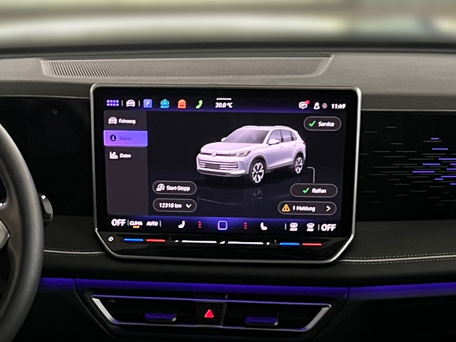 » Anhängevorrichtung anklappbar, mit elektrischer Entriegelung» Digital Cockpit Pro, mehrfarbig, verschiedene Info-Profile wählbar» Vordersitze mit Massagefunktion Assistenzsysteme: » Abbiege- und Schlechtwetterlicht» Ablenkungs- und Müdigkeitserkennung» Automatische Distanzregelung ACC stop & go» Berganfahrassistent» Fahrlichtschaltung automatisch, mit LED-Tagfahrlicht sowie Begrüßungs- und Verabschiedungslicht» Fernlichtassistent Light Assist» Geschwindigkeitsbegrenzer mit vorausschauender Regelung» Memory-Funktion für Parkassistent» Notbremsassistent Front Assist mit Fußgänger- und Radfahrererkennung» Regensensor» Reifenkontrollanzeige» Spurhalteassistent Lane Assist» Spurwechselassistent Side Assist, Ausparkassistent und Ausstiegswarnung» Verkehrszeichenerkennung Multimedia: » 2 USB-C-Schnittstellen vorn, 2 USB-C-Ladebuchsen an der Mittelkonsolehinten» App-Connect Wireless für Apple CarPlay und Android Auto» Digitaler Radioempfang DAB+» Navigationssystem Technik & Sicherheit: » 3D-LED-Rückleuchten» Airbag für Fahrer und Beifahrer, mit Beifahrerairbag-Deaktivierung» Außenspiegel elektrisch einstell-, anklapp- und beheizbar, mit Memory-Funktion» ISOFIX-Halteösen für Kindersitze auf denäußeren Rücksitzen sowie auf dem Beifahrersitz, i-Size-kompatibel» Klimaanlage Air Care Climatronic mit Aktiv-Kombifilter, Bedienelementen hinten und 3-Zonen-Temperaturregelung» Kopf- und Seitenairbags vorn und hinten,Center-Airbag» LED-Plus-Scheinwerfer» Notruf-Service, Laufzeit 10 Jahre ab Erstauslieferung, Voraussetzung: Verfügbarkeit benötigter Mobilfunknetze» Parkassistent Park Assist Plus inkl. Einparkhilfe» Rückfahrkamera Rear View» Schlüsselloses Schließ- und Startsystem Keyless Access, mit berührungsloser Ver- und Entriegelung, SAFE-Verriegelung» Spiegeleinstell- und Fensterheberschalter mit Applikationen in Chrom-Optik» Start-Stopp-System mit Bremsenergie-Rückgewinnung Interieur: » Beifahrersitzlehne komplett umklappbar» Innenspiegel automatisch abblendend» Lendenwirbelstützen vorn pneumatisch einstellbar» Mittelarmlehne vorn» Multifunktionslenkrad in Leder, beheizbar, mit Schaltwippen» Sitzmittelbahnen der Vordersitze und deräußeren Rücksitzplätze in Mikrofaser ArtVelours Eco» Sport-Komfortsitze vorn» Standheizung und -lüftung mit Funkfernbedienung und Vorwahluhr» Telefonschnittstelle Comfort mit induktiver Ladefunktion für 2 Smartphones, Ladeleistung bis zu 15 W Exterieur: » Dachreling silber eloxiert» Heckklappe mit sensorgesteuerter Öffnung und zeitverzögerter elektrischerSchließung, mit Fernentriegelung Sonstiges: » 12-V-Steckdose in der Mittelkonsole vorn» Ladeleistung bis zu 45 W» Ambientebeleuchtung 30-farbig, in der Instrumententafel sowie in den Türen» Dekoreinlagen vorn durchleuchtet» inkl. Anhängerrangierassistent Trailer Assist» Anhängevorrichtung inkl. Anhängerrangierassistent Trailer Assist» Dekor-Set Elegance, durchleuchtet» Einstiegsleisten vorn in Aluminium» Fahrerlebnisschalter inkl. Innenraumerlebnis Atmospheres» Fahrprofilauswahl» Infotainment-Paket Discover» Infotainment-System mit 32,7-cm-Display (12,9 Zoll)» Mittelkonsole gepolstert» Multifunktionskamera» Rücksitzbank längs verschiebbar, -lehne asymmetrisch geteilt umklappbar, Neigungeinstellbar» mit Durchlademöglichkeit» Sprachassistent IDA» Verbundsicherheitsglas geräuschdämmend für Türscheiben» Heck- und Seitenscheiben hinten abgedunkelt» Vordersitze und äußere Rücksitze beheizbar, Sitzfläche und -lehne getrennt einstellbar Garantie 60 Monate ab Tag der Erstzulassung, Angaben zum Hersteller: Volkswagen AG, Volkswagen, Berliner Ring 2, 38440 Wolfsburg, Deutschland, +49-5361-9-0, kundenbetreuung(at)volkswagen.de, Produktinformationen: https://www.volkswagen.de/idhub/content/dam/onehub_master/downloads/product-safety/volkswagen-sicherheitshinweise-de.pdf Die angegebenen Verbrauchsangaben beziehen sich auf WLTP-Werte. Zwischenverkauf und Irrtümer für dieses Angebot sind ausdrücklich vorbehalten. Ausschlaggebend sind einzig und allein die Vereinbarungen in der Auftragsbestätigung oder im Kaufvertrag. Den genauen Ausstattungsumfang, die genauen Kilometer und den Verkaufspreis erhalten Sie von unserem Verkaufspersonal. Bitte kontaktieren Sie uns. Finanzierung