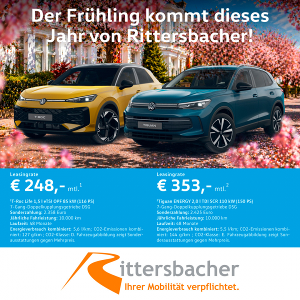 Willkommen bei RittersbacherAutohandelsgesellschaft mbH Georg RittersbacherHerzlich willkommen bei der Rittersbacher-Gruppe! Ihrer Mobilität verpflichtet. Haben Sie Fragen rund um das Thema Automobil? Dann sind wir Ihr Ansprechpartner. Wir bieten Ihnen mit den Marken Volkswagen, VW Nutzfahrzeuge, Audi, Porsche und SKODA eine breite Palette an unterschiedlichsten Fahrzeugen für alle Bereiche Ihres Lebens.