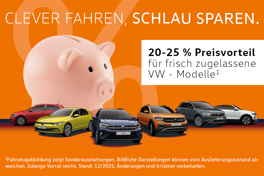 Clever fahren, schlau sparen.Clever fahren, schlau sparen! Sichern Sie sich jetzt 20–25 % Preisvorteil auf frisch zugelassene VW-Modelle an unseren Standorten Kaiserslautern, Grünstadt und Germersheim. Aber schnell – das Angebot gilt so lange der Vorrat reicht. Warum warten? Profitieren Sie von: - Attraktiven Rabatten auf aktuelle VW-Modelle - Frisch zugelassenen Fahrzeugen mit vollem Garantiepaket - Top-Ausstattungen und moderner Technik Kommen vorbei oder kontaktiere uns für dein persönliches Angebot. Wir helfen dir, das perfekte VW-Modell zu finden – günstig, sicher und zuverlässig.