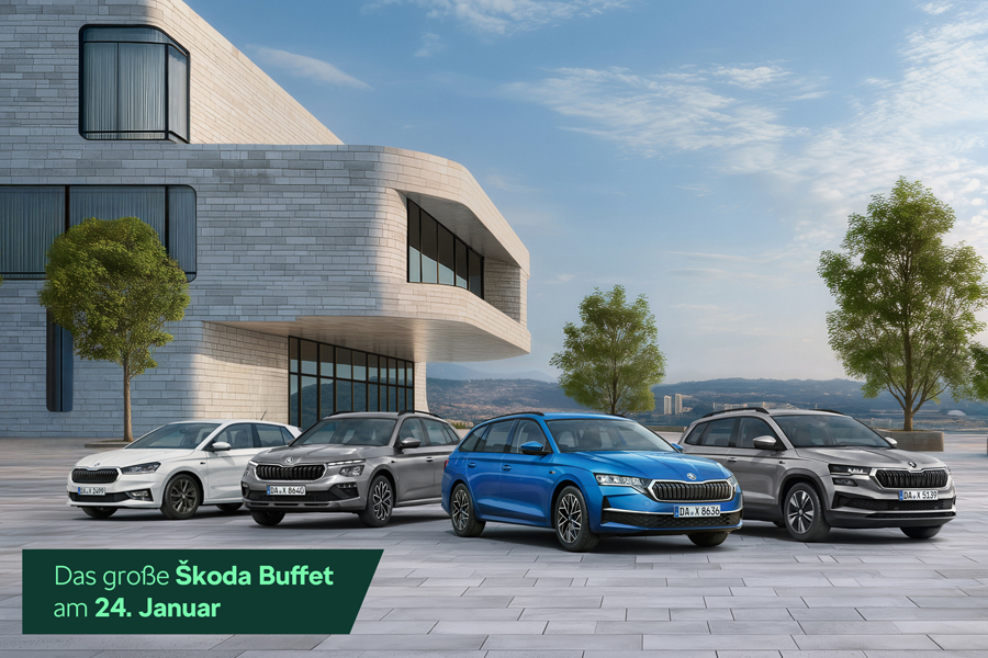 Ganz leicht zur Balance finden.Beim großen Škoda Buffet am 24. Januar 2026.Unser erstes Highlight des Jahres! Unser Highlight für Sie: die neuen Škoda Balance Sondermodelle. Ausstattung, Preis und Komfort spielen hier so entspannt zusammen, dass Ihnen viel Raum bleibt für das, was Ihnen wichtig ist. Ob z. B. Fabia, Kamiq, Octavia Combi oder Karoq – steigen Sie ein in Ihr Balance Sondermodell und profitieren Sie von diesen Vorteilen: - zusätzliche Ausstattung - einem Kundenvorteil von bis zu 3.200,– €1 auf die UPE und einem Treuebonus von 1.000,- €*