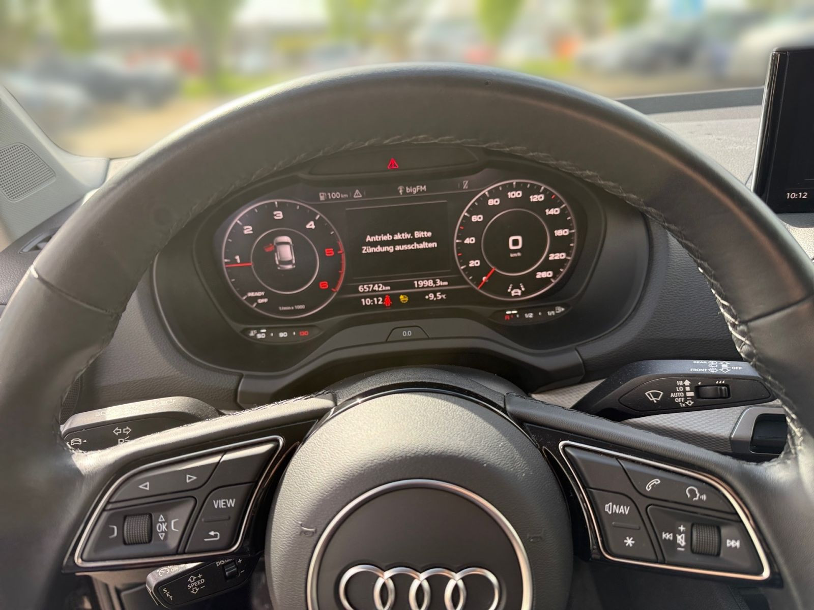 » Audi Soundsystem Assistenzsysteme: » Adaptiver Geschwindigkeitsassistent und Geschwindigkeitsbegrenzer » Audi pre sense front für adaptiven Geschwindigkeitsassistenten » Elektronische Stabilisierungskontrolle (ESC) » Müdigkeitserkennung » Reifendruck-Kontrollanzeige » Spurverlassenswarnung Multimedia: » Ablage- und Gepäckraumpaket mit USB-Ladeschnittstellen im Fond » Audi connect Remote & Control (für MMI Radio plus) » Bluetooth-Schnittstelle » Digitaler Radioempfang » Smartphone-Interface Technik & Sicherheit: » Außenspiegel elektrisch einstell-, beheiz- und anklappbar, beidseitig automatisch abblendend » Einparkhilfe plus » ISOFIX und Top Tether für Fondsitze außen » Klima- und Komfortpaket » Komfortklimaautomatik » Komfortschlüssel, ohne Safelock » LED-Heckleuchten mit dynamischem Blinklicht » Matrix LED-Scheinwerfer mit dynamischer Lichtinszenierung und dynamischem Blinklicht » Reifenreparaturset » Rückfahrkamera » Seitenairbags vorn und Kopfairbagsystem » Start-Stop-System mit Rekuperation » Tagfahrlicht Interieur: » Audi virtual cockpit » Dekoreinlagen Diamantlack silbergrau » Einstiegsleisten mit Aluminiumeinlegern vorne, beleuchtet » Innenspiegel automatisch abblendend, rahmenlos » Komfortmittelarmlehne vorn » Komfortpaket plus » Lederlenkrad 3-Speichen mit Multifunktion plus » Sitzheizung vorn » Stoff Skript Exterieur: » Anhängevorrichtung » Gepäckraumklappe elektrisch öffnend und schließend » Optikpaket schwarz » Räder, 5-Doppelspeichen, 7,0Jx17, Reifen 215/55 R17 » Sonnenschutzverglasung abgedunkelt Sonstiges: » Sideblades in Wagenfarbe » Stoßfänger advanced in Volllackierung Audi Connect je nach Dienst zeitlich begrenzt, danach kostenpflichtig verlängerbar, Angaben zum Hersteller: AUDI AG, Audi, Auto-Union-Straße 1, 85057 Ingolstadt, Deutschland, +49-841-89-0, kundenbetreuung(at)audi.de, Produktinformationen: https://www.audi.de/de/rechtliches/gpsr/ Die angegebenen Verbrauchsangaben beziehen sich auf WLTP-Werte. Zwischenverkauf und Irrtümer für dieses Angebot sind ausdrücklich vorbehalten. Ausschlaggebend sind einzig und allein die Vereinbarungen in der Auftragsbestätigung oder im Kaufvertrag. Den genauen Ausstattungsumfang, die genauen Kilometer und den Verkaufspreis erhalten Sie von unserem Verkaufspersonal. Bitte kontaktieren Sie uns. Finanzierung