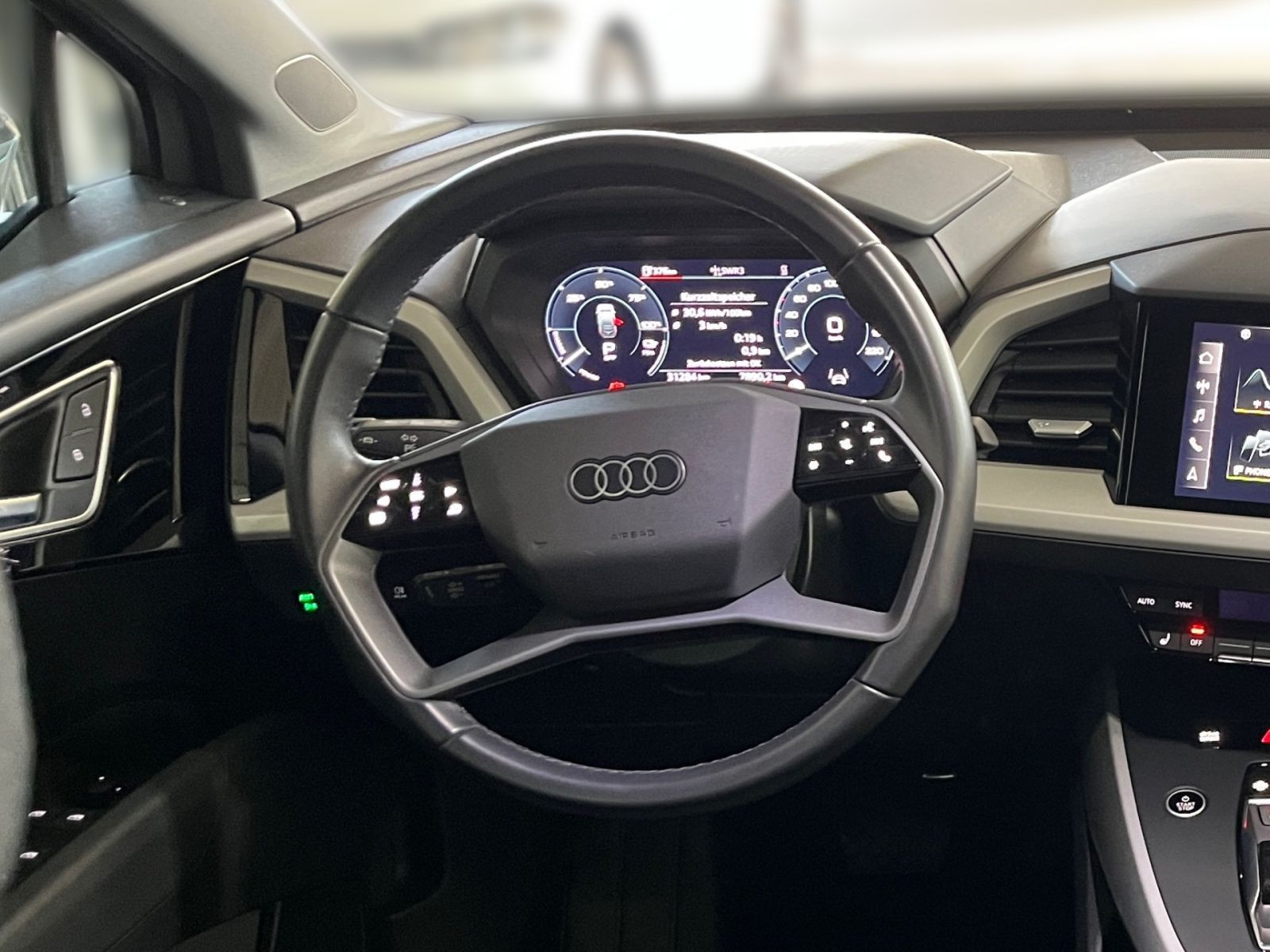 » Digitales Kombiinstrument Assistenzsysteme: » Adaptiver Geschwindigkeitsassistent mit Geschwindigkeitsbegrenzer » Audi pre sense front » Ausweichassistent und Abbiegeassistent » Kamerabasierte Verkehrszeichenerkennung » Reifendruck-Kontrollanzeige » Spurverlassenswarnung Multimedia: » Audi connect Remote & Control für MMI plus und pro » Bluetooth-Schnittstelle » Digitaler Radioempfang » Lautsprecher vorn (passiv) » Smartphone-Interface » Vorbereitung Navigationsgerät-High für FOD Funktion Technik & Sicherheit: » 3-Zonen-Komfortklimaautomatik » Airbags vorn, Beifahrerairbag deaktivierbar » Audi drive select » FOD Funktionen online verfügbar » Hochvolt-Batterie 82 kWh (brutto) » Kindersitzbefestigung i-Size auf der Beifahrerseite und i-Size und Top Tetherauf den äußeren Fondsitzen » Klimatisierungspaket » LED-Heckleuchten » LED-Scheinwerfer » Parkassistent plus mit Einparkhilfe mit Umgebungsanzeige » Rückfahrkamera » Seitenairbags vorn mit Kopfairbagsystem und Interaktionsairbag vorn » Tagfahrlichtschaltung Interieur: » Doppelspeichen-Lederlenkrad mit Multifunktion » Interieur mit Normalsitzen in Stoff schwarz » Komfort Standklimatisierung » Komfortfahrwerk » Komfortmittelarmlehne vorn » Rücksitzlehne umklappbar » Sitzheizung vorn Exterieur: » Anhängevorrichtung » Elektrische Gepäckraumklappe ohne sensorgesteuerte Gepäckraumentriegelung » Frontscheibe in Wärmeschutzverglasung Sonstiges: » Assistenzpaket Schutz- und Warnsysteme » Assistenzpaket plus » Dekoreinlage Haptiklack schwarz » Kindersicherung elektrisch betätigt » Stoßfänger Basis Audi Connect je nach Dienst zeitlich begrenzt, danach kostenpflichtig verlängerbar, Angaben zum Hersteller: AUDI AG, Audi, Auto-Union-Straße 1, 85057 Ingolstadt, Deutschland, +49-841-89-0, kundenbetreuung(at)audi.de, Produktinformationen: https://www.audi.de/de/rechtliches/gpsr/ Die angegebenen Verbrauchsangaben beziehen sich auf WLTP-Werte. Zwischenverkauf und Irrtümer für dieses Angebot sind ausdrücklich vorbehalten. Ausschlaggebend sind einzig und allein die Vereinbarungen in der Auftragsbestätigung oder im Kaufvertrag. Den genauen Ausstattungsumfang, die genauen Kilometer und den Verkaufspreis erhalten Sie von unserem Verkaufspersonal. Bitte kontaktieren Sie uns. Finanzierung