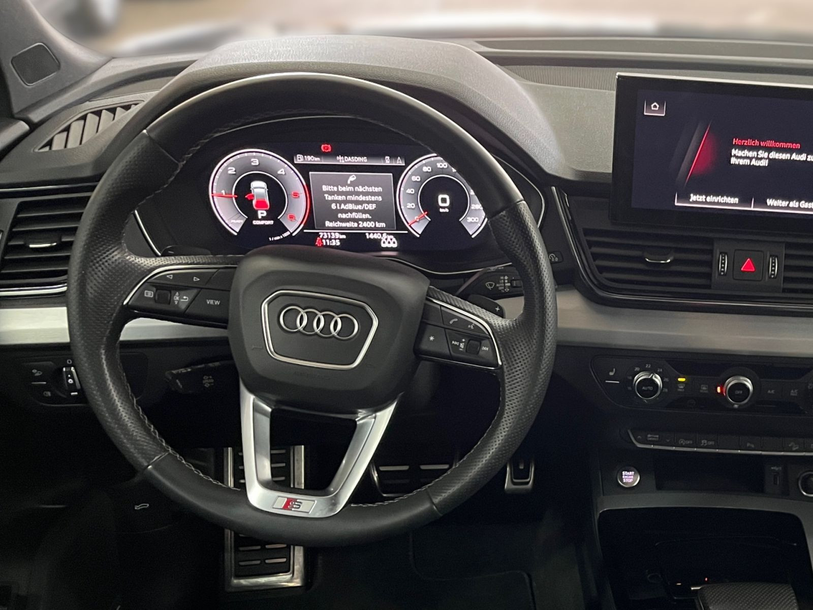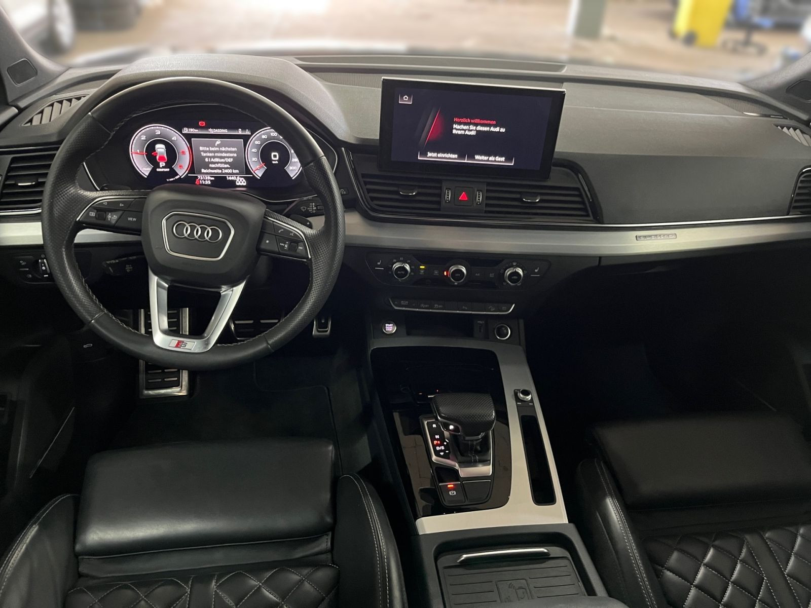 Fahrzeugstandort: Mo. - Fr. 08:00 Uhr - 18:00 Uhr Telefon: Anfrage sendenZurück zur Übersicht FahrzeuginfosDetails + Ausstattung Umweltplakette: grün HU und AU werden mit dem Kauf ausgeführt Klimaautomatik Metallic Garantie inkl. Leichtmetallfelgen ESP ABS Wegfahrsperre Navi Zentralverriegelung Elekt. Fensterheber Allrad Anzahl Türen: 5 Servolenkung Scheckheftgepflegt Hubraum: 1968 Baujahr: 2022 Sitze: 5 Schadstoffklasse: EURO 6 Tempomat Sitzheizung Partikelfilter Einparkhilfe Herstellerschlüsselnummer: 0588 Typschlüsselnummer: BQW Interieurfarbe: Schwarz Interieurtyp: Leder Vorder-, Seiten- und weitere Airbags Vorbesitzer: 1 elek. Seitenspiegel Sportfahrwerk Sportpaket Bluetooth Bordcomputer Freisprecheinrichtung MP3-Schnittstelle Multifunktionslenkrad Radio/Tuner Sportsitze Kindersitzbefestigung Lichtsensor Tagfahrlicht Traktionskontrolle Start-Stop-Automatik Nichtraucher-Fahrzeug Dachreling Fahrtauglich Einparkhilfe: Sensoren vorne Einparkhilfe: Sensoren hinten Einparkhilfe: Kamera Fernlichtassistent Volldigitales Kombiinstrument Induktionsladen Musikstreaming Sommerreifen Innenspiegel automatisch abblenden LED-Scheinwerfer Notbremsassistent Abstandswarner Mittelarmlehne Radio DAB+ elek. Heckklappe LED-Tagfahrlicht Lederlenkrad Notrufsystem Reifendruckkontrollsystem Schaltwippen Soundsystem Sprachsteuerung Touchscreen USB Verkehrszeichenerkennung ehem. UVP: 64429.99 Ausstattungslinie: S line Detail Schadstoffklasse: EURO6D_TEMP Geschwindigkeitsbegrenzungsanlage Lagerplatz: GER Modellbasis: Q5 40 TDI quattro s-line BusiPaket RFK B&O Modellschlüssel: FYGCUY