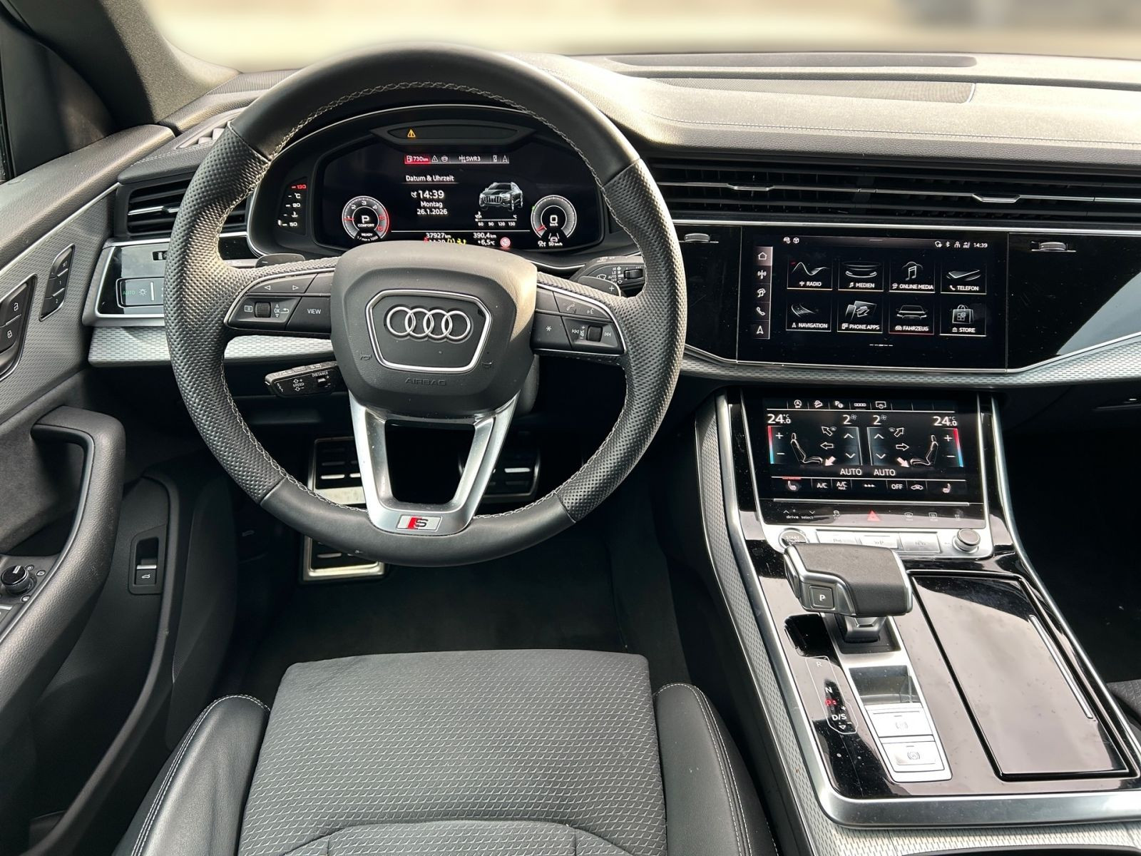 » Audi Soundsystem » Audi virtual cockpit plus Assistenzsysteme: » Adaptiver Fahrassistent mit Notfallassistent» Adaptiver Geschwindigkeitsassistent mit Geschwindigkeitsbegrenzer, Effizienz-, Ausweich- und Abbiegeassistent » Allradlenkung » Assistenzpaket Plus mit Remote Parkassistent plus» Audi pre sense rear» Geschwindigkeitsregelanlage inklusive Geschwindigkeitsbegrenzer» Kamerabasierte Verkehrszeichenerkennung» Reifendruck-Kontrollanzeige Multimedia: » Audi connect Navigation & Infotainment» Audi phone box» Digitaler Radioempfang Technik & Sicherheit: » AdBlue-Tank mit erhöhtem Füllvolumen» Adaptive Scheibenwischer mit integrierten Waschdüsen» Airbags vorn, Beifahrerairbag deaktivierbar» Audi connect Notruf & Service mit Audi connect Remote & Control» Audi drive select» Außenspiegel elektrisch einstell-, beheiz- und anklappbar, automatisch abblendend mit Memory-Funktion» Kindersitzbefestigung ISOFIX und Top Tether für die Rücksitzbank» Komfortschlüssel mit sensorgesteuerter Gepäckraumentriegelung, ohne Safelock» LED-Heckleuchten plus» Matrix LED-Scheinwerfer und LED-Heckleuchten » Parkassistent mit Einparkhilfe plus » Pedalerie und Fußstütze aus Edelstahl» Remote Parkassistent plus » Seitenairbags vorn und Kopfairbagsystem» Servoschließung für die Türen» Start-Stop-System» Tagfahrlicht» adaptive air suspension sport» tiptronic Interieur: » Bedientasten schwarz glänzend mit haptischem Feedback und Aluminiumoptik Interieur» Einstiegsleisten mit Aluminiumeinlegern vorne und hinten, beleuchtet, vorne mit S-Schriftzug» Elektrische Laderaumabdeckung» Innenspiegel automatisch abblendend, rahmenlos» Komfortmittelarmlehne vorn» Lederlenkrad 3-Speichen mit Multifunktion, Schaltwippen und Lenkradheizung» Mikrofaser Dinamica Frequenz/ Leder-Kombination mit S-Prägung» Rücksitzbank plus» Sitzheizung vorn» Standheizung und -lüftung» Vordersitze elektrisch einstellbar inklusive Memory-Funktion für den Fahrersitz Exterieur: » Akustikverglasung für Tür- und Seitenscheiben» Anhängevorrichtung » Gepäckraumklappe elektrisch öffnend und schließend» Räder, 5-W-Speichen, graphitgrau, glanzgedreht, 10,0Jx21, Reifen 285/45 R21» S line Sportpaket » Sonnenschutzverglasung abgedunkelt Sonstiges: » Ambiente-Lichtpaket plus» Dachhimmel Stoff schwarz» Dekoreinlagen Aluminium matt gebürstet mit Linearprägung silber» Entfall Modellkennzeichnung am Heck» Interieurelement oben mit Kontrastnaht» Matrix-Funktion » Reifen 285/45 R21 113Y xl Rollwiderstandsoptimiert» S line Exterieurpaket » Stoßfänger S line in Volllackierung Audi Connect je nach Dienst zeitlich begrenzt, danach kostenpflichtig verlängerbar, Garantie 24 Monate ab Tag der Erstzulassung, Angaben zum Hersteller: AUDI AG, Audi, Auto-Union-Straße 1, 85057 Ingolstadt, Deutschland, +49-841-89-0, kundenbetreuung(at)audi.de, Produktinformationen: https://www.audi.de/de/rechtliches/gpsr/ Die angegebenen Verbrauchsangaben beziehen sich auf WLTP-Werte. Zwischenverkauf und Irrtümer für dieses Angebot sind ausdrücklich vorbehalten. Ausschlaggebend sind einzig und allein die Vereinbarungen in der Auftragsbestätigung oder im Kaufvertrag. Den genauen Ausstattungsumfang, die genauen Kilometer und den Verkaufspreis erhalten Sie von unserem Verkaufspersonal. Bitte kontaktieren Sie uns. Finanzierung