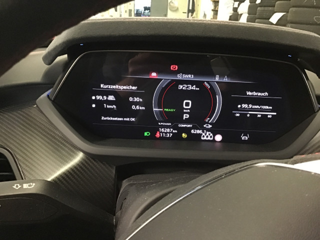 » Bang & Olufsen Premium Soundsystem mit 3D Klang» Head-up-Display » Panorama-Glasdach» adaptive air suspension Assistenzsysteme: » Adaptiver Fahrassistent mit Notfallassistent» Adaptiver Geschwindigkeitsassistent mit Geschwindigkeitsbegrenzer, Effizienz-, Ausweich- und Abbiegeassistent» Allradlenkung » Assistenzpaket plus mit Remote Parkassistent plus » Audi pre sense basic, Audi pre sense front» Einstiegsleisten mit Aluminiumeinlegern vorn und hinten, beleuchtet» Kamerabasierte Verkehrszeichenerkennung» Reifendruck-Kontrollsystem Multimedia: » Audi Smartphone Interface» Audi connect Navigation & Infotainment» Digitaler Radioempfang» MMI Navigation plus mit MMI touch Technik & Sicherheit: » 3-Zonen-Komfortklimaautomatik» Audi connect Notruf & Service mit Audi connect Remote & Control» Elektromechanische Servolenkung plus» Kindersitzbefestigung ISOFIX und i-Size mit Top Tether für die äußeren Fondsitze» Komfortschlüssel mit sensorgesteuerter Gepäckraumentriegelung, ohne Safelock» LED-Heckleuchten mit dynamischer Lichtinszenierung und dynamischem Blinklicht» Matrix LED-Scheinwerfer mit Audi Laserl-icht und LED-Heckleuchten, Lichtinszeni-erung und dynamischem Blinklicht » Matrix LED-Scheinwerfer mit Audi Laserlicht, dynam. Lichtinszenierung unddynamischem Blinklicht » Matrix LED-Scheinwerfer mit dynamischem Blinklicht» Parkassistent plus » Seitenairbags vorn und hinten und Kopfairbagsystem Interieur: » Innenspiegel automatisch abblendend, rahmenlos» Interieurelemente oben und unten in Leder Feinnappa/Mikrofaser Dinamica» Komfort Standklimatisierung» Leder-Kombination perforiert mit Wabensteppung» Pedalerie aus Edelstahl» Sitzbelüftung und Massagefunktion vorn » Sitzheizung vorn und hinten» Sportkontur-Lenkrad in Alcantara, 3-Speichen, unten abgeflacht mit Multifunktion plus und Schaltwippen» Sportsitze pro vorn Exterieur: » Außenspiegelgehäuse in Schwarz» Optikpaket schwarz plus» Privacy Verglasung (Scheiben abgedunkelt) » Räder, 10-Speichen-Trapezmodul, schwarz, glanzgedreht, 9,5J|11,5Jx21, Reifen 265/35|305/30 R21 Sonstiges: » 400-Volt-Booster plus» Ambiente-Lichtpaket plus» Dekoreinlagen Carbon Köper seidenmatt» Hochvolt-Batterie 93 kWh (brutto)» Industriestecker CEE 16A, 400V, für das e-tron Ladesystem» Optikpaket Carbon glänzend» Singleframe in Schwarz glänzend» Stahlbremsanlage mit Wolframcarbid-Beschichtung und Bremssätteln in Rot» Zweiter Ladezugang» e-tron Sportsound» quattro mit geregelter Hinterachsdifferenzialsperre Audi Connect je nach Dienst zeitlich begrenzt, danach kostenpflichtig verlängerbar, Angaben zum Hersteller: AUDI AG, Audi, Auto-Union-Straße 1, 85057 Ingolstadt, Deutschland, +49-841-89-0, kundenbetreuung(at)audi.de, Produktinformationen: https://www.audi.de/de/rechtliches/gpsr/ Die angegebenen Verbrauchsangaben beziehen sich auf WLTP-Werte. Zwischenverkauf und Irrtümer für dieses Angebot sind ausdrücklich vorbehalten. Ausschlaggebend sind einzig und allein die Vereinbarungen in der Auftragsbestätigung oder im Kaufvertrag. Den genauen Ausstattungsumfang, die genauen Kilometer und den Verkaufspreis erhalten Sie von unserem Verkaufspersonal. Bitte kontaktieren Sie uns. Finanzierung