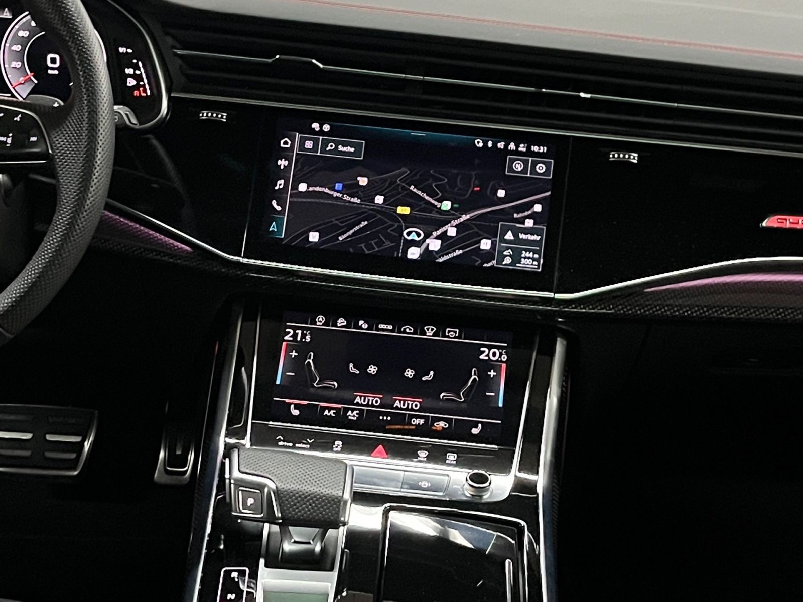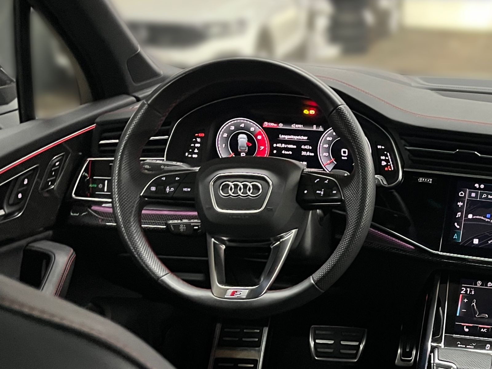 » Audi virtual cockpit plus » Bang & Olufsen Premium Soundsystem mit 3D-Klang » Head-up-Display » Panorama-Glasdach Assistenzsysteme: » Adaptiver Fahrassistent mit Notfallassistent» Adaptiver Geschwindigkeitsassistent mit Geschwindigkeitsbegrenzer, Effizienz-, Ausweich- und Abbiegeassistent » Allradlenkung » Geschwindigkeitsregelanlage inklusive Geschwindigkeitsbegrenzer» Kamerabasierte Verkehrszeichenerkennung» Reifendruck-Kontrollanzeige Multimedia: » Audi connect Navigation & Infotainment» Audi phone box» Digitaler Radioempfang » USB-Anschlüsse mit Ladefunktion im Fond» Vorbereitung für Smartphone-Interface Technik & Sicherheit: » Adaptive Scheibenwischer mit integrierten Waschdüsen» Airbags vorn, Beifahrerairbag deaktivierbar» Audi connect Notruf & Service mit Audi connect Remote & Control» Audi drive select» HD Matrix LED-Scheinwerfer mit Audi Laserlicht, LED-Heckleuchten und Scheinwerfer-Reinigungsanlage » HD Matrix LED-Scheinwerfer mit dynamischer Lichtinszenierung und dynamischem Blinklicht» Ionisator und Aromatisierung » Kindersitzbefestigung ISOFIX und Top Tether» Komfortschlüssel in Verbindung mit Diebstahlwarnanlage» Komfortschlüssel mit sensorgesteuerter Gepäckraumentriegelung, mit Safelock » LED-Heckleuchten mit dynamischer Lichtinszenierung und dynamischem Blinklicht » Pedalerie und Fußstütze aus Edelstahl» Rückfahrkamera » Scheinwerfer-Reinigungsanlage» Seitenairbags vorn und Kopfairbagsystem» Servoschließung für die Türen» Start-Stop-System» Tagfahrlicht» adaptive air suspension sport» tiptronic Interieur: » Bedientasten schwarz glänzend mit haptischem Feedback und Aluminiumoptik Interieur» Einstiegsleisten mit Aluminiumeinlegern vorne und hinten, beleuchtet, vorne mit S-Schriftzug» Elektrische Laderaumabdeckung» Innenspiegel automatisch abblendend, rahmenlos» Interieurelement oben in Leder und Interieurelemente unten in Kunstleder» Komfortmittelarmlehne vorn» Lederlenkrad 3-Speichen mit Multifunktion, Schaltwippen und Lenkradheizung» Rücksitzbank plus» Sitzheizung vorn» Sportsitze plus vorn» Vordersitze elektrisch einstellbar mit Memory-Funktion Exterieur: » Anhängevorrichtung inkl. Anhängerassistent » Dachreling schwarz» Frontscheibe in Wärmeschutzverglasung» Gepäckraumklappe elektrisch öffnend und schließend» Optikpaket schwarz plus » Räder Audi Sport, 5-V-Speichen-Stern, anthrazitschwarz, glanzgedreht, 10,0Jx22, Reifen 285/35 R22» Sonnenschutzverglasung abgedunkelt Sonstiges: » 8-Zylinder-Ottomotor 4,0L/373 KW Biturbo, FSI homogen Grundmotor ist: TV7/T1M» Ambiente-Lichtpaket plus» Außenspiegelgehäuse in Carbon» Designpaket schwarz-karmesinrot Audi exclusive Audi Connect je nach Dienst zeitlich begrenzt, danach kostenpflichtig verlängerbar, Angaben zum Hersteller: AUDI AG, Audi, Auto-Union-Straße 1, 85057 Ingolstadt, Deutschland, +49-841-89-0, kundenbetreuung(at)audi.de, Produktinformationen: https://www.audi.de/de/rechtliches/gpsr/ Die angegebenen Verbrauchsangaben beziehen sich auf WLTP-Werte. Zwischenverkauf und Irrtümer für dieses Angebot sind ausdrücklich vorbehalten. Ausschlaggebend sind einzig und allein die Vereinbarungen in der Auftragsbestätigung oder im Kaufvertrag. Den genauen Ausstattungsumfang, die genauen Kilometer und den Verkaufspreis erhalten Sie von unserem Verkaufspersonal. Bitte kontaktieren Sie uns. Finanzierung