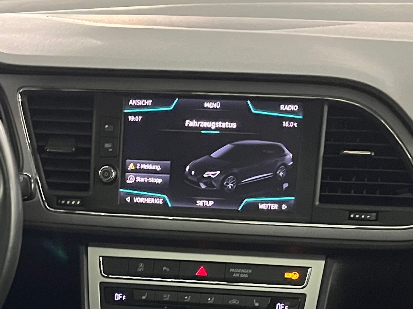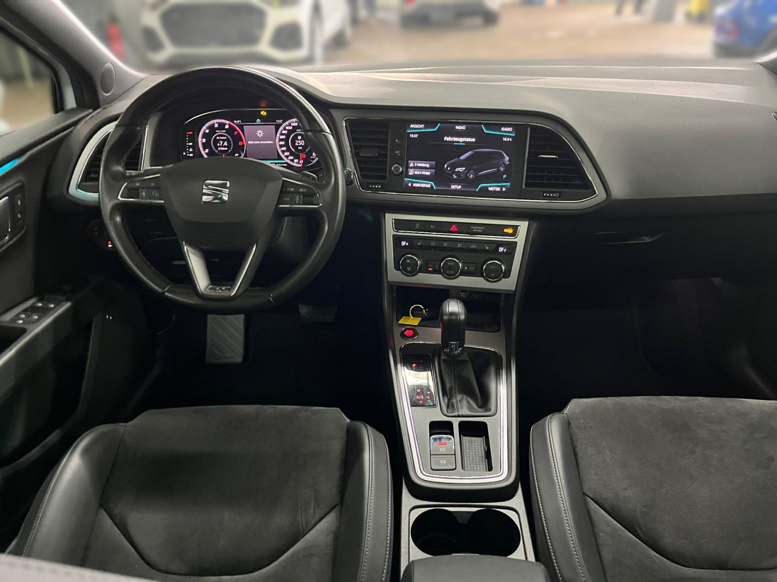 » Panorama-Ausstelldach, elektrisch » Anhängevorrichtung, abnehmbar und abschließbar Anhängevorrichtung (ab Werk) » BEATS: Soundsystem der Marke BEATS mit 10 Lautsprechern Assistenzsysteme: » Fahrerassistenz-Paket: Frontkamera für Fahrerassistenzsystem, Verkehrszeichenerkennung » Fernlichtassistent » Spurhalteassistent (Heading Control Assist) » Mit Multifunktionskamera » Reifenkontroll-Anzeige » Geschwindigkeitsregelanlage (GRA) elektronisch » Anti-Blockier-System (ABS) » Bremsassistent » Elektron. Stabilitätskontrolle (ESC) » Elektron. Differentialsperre (EDS) » Antriebs-Schlupfregelung (ASR) » Elektronisches Stabilisierungsprogramm (ESP) » Fahrassistenz-System: Berganfahr-Assistent (Hill-Holder) » Fahrassistenz-System: Berganfahr-Assistent und Elektron. Differentialsperre Multimedia: » Audiosystem: Radio/CD-Player MP3-fähig mit USB-Schnittstelle » DAB (Digital Audio Broadcasting) » 10 Lautsprecher » Bluetooth-Schnittstelle mit Freisprecheinrichtung integriert » FULL LINK für Navigationssystem » Navigationssystem » Sprachsteuerung » Bluetooth Audio-Streaming » USB-Anschluss und AUX-IN-Anschluss (CUP-Eingang) » AUX-IN-Anschluss und 2 x USB-Anschluss Technik & Sicherheit: » Scheinwerferreinigungsanlage » LED- Hauptscheinwerfer SEAT Voll-LED-Scheinwerfer mit LED-Tagfahrlicht, LED-Heckleuchten und LED-Kennzeichenbeleuchtung » SBBR-Leuchte in LED-Technik » Rückfahrkamera » Außenspiegel, elektrisch anklappbar und elektrisch einstell-/beheizbar » Platzsparendes Notrad,Radial-Bauweise (5-Loch) » Einparkhilfe vorn und hinten Ultraschall-Einparkhilfe vorn und hinten » Außenspiegel elektr. verstell- und heizbar, beide » Nebelscheinwerfer mit Abbiegelicht integriert » Tagfahrlicht » Tagfahrlicht LED » Airbag FS und BFS, Knieairbag auf FS und BFS, mit BFS-Deaktivierung » Airbag Fahrer-/Beifahrerseite » Seitenairbag vorn, mit Kopfairbag » Seitenairbag » Airbag Beifahrerseite abschaltbar » Fensterheber mit Komfortschaltung und Abschaltsicherung, elektrisch » Zentralverriegelung mit Fernbedienung » Startanlage Keyless Access » Wegfahrsperre elektronisch » Kindersitzverankerung für Kindersitzsystem ISO FIX » Servolenkung, geschwindigkeitsabhängig (Servotronic) » Abgaskonzept, EU6 DG » Start/Stopp-Anlage mit Rekuperation » 7-Gang-Automatikgetriebe A7 Interieur: » Winterpaket: Sitzheizung vorn, Schein- werfer-Reinigungsanlage, beheiztes Waschwasser, beheizte Außenspiegel » Sitzheizung für Vordersitze getrennt regelbar » Connectivity Box: Induktive Ladestation + GSM-Verstärker » Ledersportmultifunktionslenkrad mit Tiptronic » Netztrennwand Netztrennwand » Schwarze Alcantara-Sitze, schwarzes Interieur » Sportsitze vorn » Lendenwirbelstütze, manuell einstellbar in Vordersitzlehnen » Bordcomputer » Mittelarmlehne hinten » Gepäckraumabdeckung, schiebbar » Variables Ladebodenkonzept » Rücksitzbank ungeteilt, Lehne geteilt umlegbar mit Mittelarmlehne Exterieur: » Ganzjahresreifen auf 17-Leichtmetallrädern » Dachreling, blank » Scheiben seitlich in Wärmeschutzverglasung, ab B-Säule und hinten dunkel eingefärbt » LM-Felgen 6,5x16 (Design) Sonstiges: » Innenfarbe: schwarz » Frei konfigurierbares Kombiinstrument » Innenraumlicht-Paket LED » Außenspiegel mit Spiegelabsenkung, rechts » Preisnachlass-Paket » Nevada Weiss » Stau-/Ablagefach unter Sitz vorn links » Mittelkonsole vorn mit Mittelarmlehne, Becherhalter, Ablagebox und Luftdüsen hinten » Farbe Nevada weiss » Ablage-Paket » Außenspiegel und Türgriffe außen in Wagenfarbe » Blinkleuchten LED in Außenspiegel integriert » Wärmeschutzverglasung » Außentemperaturanzeige » Höheneinstellung,manuell,für Vordersitze » Kopfstützen hinten (3-fach) » Ambiente-Beleuchtung LED » Kofferraumbeleuchtung » Handschuhfach beleuchtet » Steckdose (12V-Anschluß) vorn » Schalthebelknopf/-Griff in Leder » Stau-/Ablagefach unter Sitze vorn » Motor 1,5 Ltr. - 110 kW 16V TSI ACT Angaben zum Hersteller: SEAT Deutschland GmbH, Seat, Max-Planck-Str. 3-5, 64331 Weiterstadt, 06150-1855-0, service(at)seat.de Die angegebenen Verbrauchsangaben beziehen sich auf WLTP-Werte. Zwischenverkauf und Irrtümer für dieses Angebot sind ausdrücklich vorbehalten. Ausschlaggebend sind einzig und allein die Vereinbarungen in der Auftragsbestätigung oder im Kaufvertrag. Den genauen Ausstattungsumfang, die genauen Kilometer und den Verkaufspreis erhalten Sie von unserem Verkaufspersonal. Bitte kontaktieren Sie uns. Finanzierung