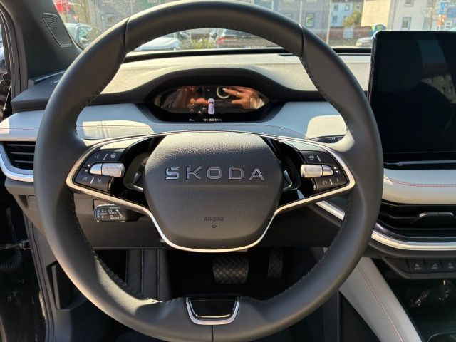 » Anhängevorrichtung mechanisch schwenkbarund elektrisch auslösbar » Cockpit Infotainment (Ausführung 2) (Gen2) Assistenzsysteme: » Ablenkungs- und Müdigkeitserkennung » Allwetter, Abbiege und Autobahnlicht » Automatische Distanzregelung » Front Assist mit Warnen und Bremsen auf Fahrzeuge, Fußgänger und Radfahrer » Leuchtweitenregulierung,autom/dynamisch mit Kurvenfahrlicht (AFS 1) » Mit Verkehrszeichenerkennung » Reifendruckkontrolle » Spurhalteassistent plus Emergency Assistund Stauassistent » Spurwechselassistent » Tagesfahrlicht mit Assistenzfahrlicht u.Coming- u. Leaving-home Funktion automatisch Multimedia: » DAB - Digitaler Radioempfang » Extern, USB Typ-C Datenbuchse(n) und Ladebuchse(n) mit erhöhter Ladeleistung » Navigationsgerät-Standard mit Media und Internet Paket » SmartLink Technik & Sicherheit: » Airbag FS und BFS, ohne Knieairbag, mit BFS-Deaktivierung » Außenspiegel, automatisch abblendbar elektrisch anklapp-/einstellbar separat beheizbar » Climatronic, FCKW-frei » Diebstahlalarmanlage, Innenraumüber- wachung,Back-up-Horn und Abschleppschutz » Kindersitzverankerung für Kindersitzsystem I-Size, 2 x top tether und Kindersitzverankerung vorn BF-Seite » LED- Hauptscheinwerfer mit variabler Lichtverteilung » Mit Rückfahrkamerasystem (Ausf.2) » Notrufsystem eCall+ » Remote Access + Infotainment Online 3 Jahre » Remote Access / Remote Access + Online Infotainment » Schlüsselloses Schließ- und Startsystem Keyless Advanced mit Safesicherung » Seitenairbag vorn und hinten, mit Kopfairbag und Interaktionsairbag vorn » Einparkhilfe vorn und hinten Interieur: » Komforttelefonie: Wireless Charging (fast charge) ohne Außenantennenanbindung » Ledermultifunktionslenkrad, beheizbar » Lodge - Sitzbezüge in Stoff » Rücksitzbank ungeteilt, Lehne geteilt umlegbar mit Mittelarmlehne » Sicherheitsinnenspiegel automatisch abblendbar » Sitzheizung für Vordersitze getrennt regelbar Exterieur: » Dachreling, schwarz » Komfortöffnung Heckklappe (Virtuelles Pedal) plus Easy Close » Leichtmetallräder REGULUS 8J x 19 » Leichtmetallräder REGULUS 8J x 19 Anthrazit,Metalic,Glanzgendreht Reifen 235/55 R19 Sonstiges: » 5 Sitze » Ablagekästen im Kofferraum » Ambientelicht Ausführung 2 » Batterie 280A (46Ah) » Designpaket LODGE » Einparkhilfe vorn und hinten » Hochvolt-Batterie 63 kWh (brutto) » Innenleuchte im Fußraum vorn und hinten » LODGE » Ländercluster WLTP EU-Genehmigung » Mit Ausweichunterstützung mit Abbiegeassistent » Mit erweitertem Sicherheitssystem (PreCrash) » PLUS » Softwareverbund Ausführung 15 UN-ECE Garantie 24 Monate ab Tag der Erstzulassung, Angaben zum Hersteller: Skoda Auto Deutschland GmbH, Skoda, Max-Planck-Str. 3-5, 64331 Weiterstadt, 06150/133-0, info(at)skoda-auto.de Die angegebenen Verbrauchsangaben beziehen sich auf WLTP-Werte. Zwischenverkauf und Irrtümer für dieses Angebot sind ausdrücklich vorbehalten. Ausschlaggebend sind einzig und allein die Vereinbarungen in der Auftragsbestätigung oder im Kaufvertrag. Den genauen Ausstattungsumfang, die genauen Kilometer und den Verkaufspreis erhalten Sie von unserem Verkaufspersonal. Bitte kontaktieren Sie uns. Finanzierung
