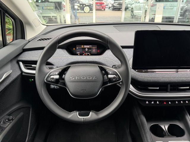 » Anhängevorrichtung mechanisch schwenkbarund elektrisch auslösbar » Cockpit Infotainment (Ausführung 2) (Gen2) Assistenzsysteme: » Ablenkungs- und Müdigkeitserkennung » Automatische Distanzregelung » Front Assist mit Warnen und Bremsen auf Fahrzeuge, Fußgänger und Radfahrer » Mit Verkehrszeichenerkennung » Reifendruckkontrolle » Spurhalteassistent plus Emergency Assistund Stauassistent » Spurwechselassistent » Tagesfahrlicht mit Assistenzfahrlicht u.Coming- u. Leaving-home Funktion automatisch Multimedia: » DAB - Digitaler Radioempfang » Extern, USB Typ-C Datenbuchse(n) und Ladebuchse(n) mit erhöhter Ladeleistung » Navigationsgerät-Standard mit Media und Internet Paket » SmartLink Technik & Sicherheit: » Airbag FS und BFS, ohne Knieairbag, mit BFS-Deaktivierung » Außenspiegel, automatisch abblendbar elektrisch anklapp-/einstellbar separat beheizbar » Climatronic, FCKW-frei » Diebstahlalarmanlage, Innenraumüber- wachung,Back-up-Horn und Abschleppschutz » Einparkhilfe vorn und hinten » Kindersitzverankerung für Kindersitzsystem I-Size, 2 x top tether und Kindersitzverankerung vorn BF-Seite » LED- Hauptscheinwerfer » Mit Rückfahrkamerasystem (Ausf.2) » Notrufsystem eCall+ » Remote Access + Infotainment Online 3 Jahre » Remote Access / Remote Access + Online Infotainment » Schlüsselloses Schließ- und Startsystem Keyless Advanced mit Safesicherung » Seitenairbag vorn, mit Kopfairbag und Interaktionsairbag vorn Interieur: » Komforttelefonie: Wireless Charging (fast charge) ohne Außenantennenanbindung » Ledermultifunktionslenkrad, beheizbar » Rücksitzbank ungeteilt, Lehne geteilt umlegbar mit Mittelarmlehne » Sicherheitsinnenspiegel automatisch abblendbar » Sitzheizung für Vordersitze getrennt regelbar Exterieur: » Dachreling, schwarz » Leichtmetallräder REGULUS 8J x 19 » Leichtmetallräder REGULUS 8J x 19 Anthrazit,Metalic,Glanzgendreht Reifen 235/55 R19 Sonstiges: » 5 Sitze » Ablagekästen im Kofferraum » Batterie 280A (46Ah) » CLEVER » Elektro-Motor Systemleistung 150 KW Grundmotor ist: N06/N07/TB7 » Hochvolt-Batterie 63 kWh (brutto) » LOFT » Loft - Sitzbezüge in Stoff » Ländercluster WLTP EU-Genehmigung » Mit Ausweichunterstützung mit Abbiegeassistent » Mit erweitertem Sicherheitssystem (PreCrash) » Softwareverbund Ausführung 15 UN-ECE Garantie 24 Monate ab Tag der Erstzulassung, Angaben zum Hersteller: Skoda Auto Deutschland GmbH, Skoda, Max-Planck-Str. 3-5, 64331 Weiterstadt, 06150/133-0, info(at)skoda-auto.de Die angegebenen Verbrauchsangaben beziehen sich auf WLTP-Werte. Zwischenverkauf und Irrtümer für dieses Angebot sind ausdrücklich vorbehalten. Ausschlaggebend sind einzig und allein die Vereinbarungen in der Auftragsbestätigung oder im Kaufvertrag. Den genauen Ausstattungsumfang, die genauen Kilometer und den Verkaufspreis erhalten Sie von unserem Verkaufspersonal. Bitte kontaktieren Sie uns. Finanzierung