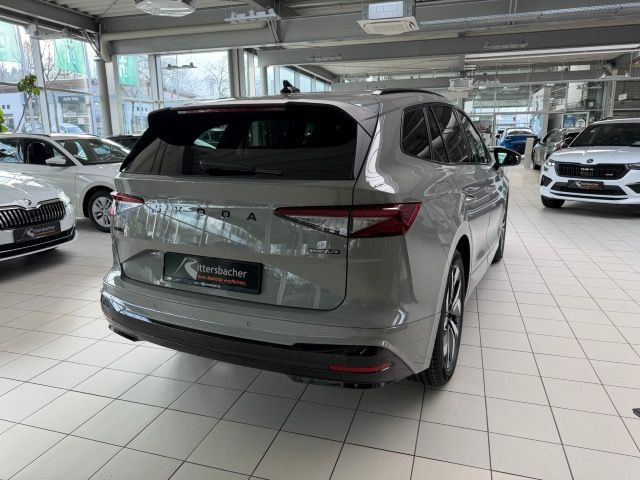 » Cockpit Infotainment (Ausführung 2) (Gen2)» Head-Up Display Assistenzsysteme: » Ablenkungs- und Müdigkeitserkennung» Allwetter, Abbiege und Autobahnlicht» Automatische Distanzregelung» Dynamiklenkung» Front Assist mit Warnen und Bremsen auf Fahrzeuge, Fußgänger und Radfahrer» Leuchtweitenregulierung,autom/dynamisch mit Kurvenfahrlicht (AFS 1)» Mit Verkehrszeichenerkennung» Reifendruckkontrolle» Spurhalteassistent plus Emergency Assistund Stauassistent» Spurwechselassistent» Tagesfahrlicht mit Assistenzfahrlicht u.Coming- u. Leaving-home Funktion automatisch Multimedia: » SOUND SYSTEM CANTON» DAB - Digitaler Radioempfang» Extern, USB Typ-C Datenbuchse(n) und Ladebuchse(n) mit erhöhter Ladeleistung» Navigationsgerät-Standard mit Media und Internet Paket» SmartLink Technik & Sicherheit: » Airbag FS und BFS, ohne Knieairbag, mit BFS-Deaktivierung» Climatronic ( 3-Zonen ) mit Klimabedienteil hinten» Diebstahlalarmanlage, Innenraumüber- wachung,Back-up-Horn und Abschleppschutz» Kindersitzverankerung für Kindersitzsystem I-Size, 2 x top tether und Kindersitzverankerung vorn BF-Seite» LED- Hauptscheinwerfer mit variabler Lichtverteilung» Mit Front und Rückfahrkamerasystem und zwei Seitenkameras» Notrufsystem eCall+» Remote Access / Remote Access + Online Infotainment» Schlüsselloses Schließ- und Startsystem Keyless Advanced mit Safesicherung» Seitenairbag vorn und hinten, mit Kopfairbag und Interaktionsairbag vorn» Einparkhilfe vorn und hinten Interieur: » Komforttelefonie: Wireless Charging (fast charge) ohne Außenantennenanbindung» Ledersportmultifunktionslenkrad, beheizbar mit Tiptronic» Lendenwirbelstütze, elektr. einstellbar in Vordersitzlehnen und Massagefunktion links» Rücksitzbank ungeteilt, Lehne geteilt umlegbar mit Mittelarmlehne» Sicherheitsinnenspiegel automatisch abblendbar» Sitzbezüge in Kunstleder» Sitzeinstellung, links elektrisch mit Memory, rechts mechan. höheneinstellbar» Sitzheizung für Vordersitze getrennt regelbar» Sport-Komfortsitze vorn Exterieur: » Sportpaket» Außenspiegel mit Memoryfunktion automat.abblendbar (Fahrerseite), elektrisch anklapp-/einstellbar, separat beheizbar» Dachreling, schwarz» Komfortöffnung Heckklappe (Virtuelles Pedal) plus Easy Close» Vorbereitung für Anhängevorrichtung Sonstiges: » + Infotainment Online 3Y» 5 Sitze» Ablagekästen im Kofferraum» Ambientebeleuchtung außen, leuchtende(s) Stylingelement(e) seitlichund vorn» Ambientelicht Ausführung 2» Batterie 280A (46Ah)» Einparkhilfe vorn und hinten» Hochvolt-Batterie 63 kWh (brutto)» Innenleuchte im Fußraum vorn und hinten» Ländercluster Sonstige Genehmigungen» Mit Ausweichunterstützung mit Abbiegeassistent» Mit erweitertem Sicherheitssystem (PreCrash)» Schriftzugsatz Sport» Softwareverbund Ausführung 15 UN-ECE» Steuerungsnummer Region Angaben zum Hersteller: Skoda Auto Deutschland GmbH, Skoda, Max-Planck-Str. 3-5, 64331 Weiterstadt, 06150/133-0, info(at)skoda-auto.de Die angegebenen Verbrauchsangaben beziehen sich auf WLTP-Werte. Zwischenverkauf und Irrtümer für dieses Angebot sind ausdrücklich vorbehalten. Ausschlaggebend sind einzig und allein die Vereinbarungen in der Auftragsbestätigung oder im Kaufvertrag. Den genauen Ausstattungsumfang, die genauen Kilometer und den Verkaufspreis erhalten Sie von unserem Verkaufspersonal. Bitte kontaktieren Sie uns. Finanzierung