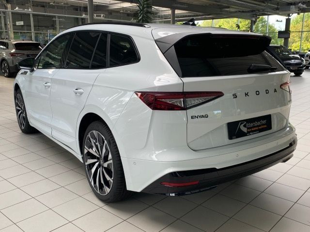 » Anhängevorrichtung mechanisch schwenkbarund elektrisch auslösbar» Cockpit Infotainment (Ausführung 2) (Gen2)» Head-Up Display» Transport Assistenzsysteme: » Ablenkungs- und Müdigkeitserkennung» Allwetter, Abbiege und Autobahnlicht» Automatische Distanzregelung» Dynamiklenkung» Front Assist mit Warnen und Bremsen auf Fahrzeuge, Fußgänger und Radfahrer» Leuchtweitenregulierung,autom/dynamisch mit Kurvenfahrlicht (AFS 1)» Mit Verkehrszeichenerkennung» Reifendruckkontrolle» Spurhalteassistent plus Emergency Assistund Stauassistent» Spurwechselassistent» Tagesfahrlicht mit Assistenzfahrlicht u.Coming- u. Leaving-home Funktion automatisch Multimedia: » SOUND SYSTEM CANTON» DAB - Digitaler Radioempfang» Extern, USB Typ-C Datenbuchse(n) und Ladebuchse(n) mit erhöhter Ladeleistung» Navigationsgerät-Standard mit Media und Internet Paket» SmartLink Technik & Sicherheit: » Airbag FS und BFS, ohne Knieairbag, mit BFS-Deaktivierung» Climatronic ( 3-Zonen ) mit Klimabedienteil hinten» Diebstahlalarmanlage, Innenraumüber- wachung,Back-up-Horn und Abschleppschutz» Hochvolt-Batterie 82 kWh (brutto)» Kindersitzverankerung für Kindersitzsystem I-Size, 2 x top tether und Kindersitzverankerung vorn BF-Seite» LED- Hauptscheinwerfer mit variabler Lichtverteilung» Mit Front und Rückfahrkamerasystem und zwei Seitenkameras» Notrufsystem eCall+» Remote Access / Remote Access + Online Infotainment» Schlüsselloses Schließ- und Startsystem Keyless Advanced mit Safesicherung» Seitenairbag vorn und hinten, mit Kopfairbag und Interaktionsairbag vorn» Einparkhilfe vorn und hinten Interieur: » Komforttelefonie: Wireless Charging (fast charge) ohne Außenantennenanbindung» Ledersportmultifunktionslenkrad, beheizbar mit Tiptronic» Lendenwirbelstütze, elektr. einstellbar in Vordersitzlehnen und Massagefunktion links» Rücksitzbank ungeteilt, Lehne geteilt umlegbar mit Mittelarmlehne» Sicherheitsinnenspiegel automatisch abblendbar» Sitzbezüge in Kunstleder» Sitzeinstellung, links elektrisch mit Memory, rechts mechan. höheneinstellbar» Sitzheizung für Vordersitze getrennt regelbar» Sport-Komfortsitze vorn Exterieur: » Sportpaket» Außenspiegel mit Memoryfunktion automat.abblendbar (Fahrerseite), elektrisch anklapp-/einstellbar, separat beheizbar» Dachreling, schwarz» Komfortöffnung Heckklappe (Virtuelles Pedal) plus Easy Close» Leichtmetallräder SUPERNOVA, Schwarz Metallic, glanzgedreht, 8 1/2J x 21 vorn, 9J x 21 hinten» Leichtmetallräder 8 1/2J x 21 vorn, mit 9J x 21 hinten Sonstiges: » + Infotainment Online 3Y» 5 Sitze» Ambientebeleuchtung außen, leuchtende(s) Stylingelement(e) seitlichund vorn» Ambientelicht Ausführung 2» Batterie 280A (46Ah)» Einparkhilfe vorn und hinten» Innenleuchte im Fußraum vorn und hinten» Ländercluster WLTP EU-Genehmigung» Mit Ausweichunterstützung mit Abbiegeassistent» Mit erweitertem Sicherheitssystem (PreCrash)» Schriftzugsatz Sport» Softwareverbund Ausführung 15 UN-ECE Garantie 24 Monate ab Tag der Erstzulassung, Angaben zum Hersteller: Skoda Auto Deutschland GmbH, Skoda, Max-Planck-Str. 3-5, 64331 Weiterstadt, 06150/133-0, info(at)skoda-auto.de Die angegebenen Verbrauchsangaben beziehen sich auf WLTP-Werte. Zwischenverkauf und Irrtümer für dieses Angebot sind ausdrücklich vorbehalten. Ausschlaggebend sind einzig und allein die Vereinbarungen in der Auftragsbestätigung oder im Kaufvertrag. Den genauen Ausstattungsumfang, die genauen Kilometer und den Verkaufspreis erhalten Sie von unserem Verkaufspersonal. Bitte kontaktieren Sie uns. Finanzierung