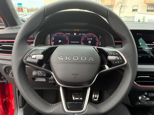 » Virtual Cockpit» Panorama Glass Dach Assistenzsysteme: » FRONT ASSIST inkl. adaptive cruise control» Ablenkungs- und Müdigkeitserkennung» Adaptiv cruise control (f}r DSG) mit Speedlimiter» Berganfahrassistent» Lane assist +» Mit Verkehrszeichenerkennung» Reifendruckkontrolle» Spurwechselassistent» Tagesfahrlicht mit Assistenzfahrlicht u.Coming- Leaving-home Funktion manuell Multimedia: » Bluetooth mit Wireless Charging (ohne LTE)» Care Connect + Infotainment Online» DAB - Digitaler Radioempfang» Extern, USB Typ-C Datenbuchse(n) und Ladebuchse(n) mit erhöhter Ladeleistung» NAVI» Navi Amundsen 9,2» USB in Dachhimmel (typ C - nur laden)ng» Web Radio» Wired & Wireless Smart Link+ Technik & Sicherheit: » PARK PILOT» Beifahrerairbag-Deaktivierung» Climatronic mit Stauluftregelung, FCKW-frei» Kindersitzverankerung für Kindersitzsystem I-Size, 2 x top tether und Kindersitzverankerung vorn BF-Seite» Mit Rückfahrkamerasystem (Ausf.2)» Notrufsystem eCall+» Remote Access + Infotainment Online 3 Jahre» Seitenairbag vorn, mit Kopfairbag» Sonnenblenden mit Spiegel auf Beifahrerseite und Airbag-Label auf Sonnenblende» Start/Stopp-Anlage mit Rekuperation» Voll LED Hauptscheinwerfer Interieur: » Ledersportmultifunktionslenkrad mit Tiptronic, beheizbar» Mittelarmlehne vorn Jumbo Box» Rücksitzbank ungeteilt, Lehne geteilt umlegbar mit Mittelarmlehne» Sicherheitsinnenspiegel automatisch abblendbar» Sitzheizung für Vordersitze getrennt regelbar» Sportsitze Exterieur: » elektrisch anklapp-/einstell/beheizbar» Dachreling, schwarz» Heckklappe Standard» Komfortöffnung Heckklappe (Virtuelles Pedal)» Leichtmetallräder 7J x 18 Ursa (schwarz)» Vorbereitung für Anhängevorrichtung Sonstiges: » ASSISTED DRIVE Plus (KN2)» Alupedalset» Aussenspiegel schwarz, Schwarzes Dach» Außenspiegel, Fahrerseite automatisch abblendbar» CONVENIENCE Premium (ohne SAFE)» Drive Mode Select ohne Chassis Presets» Interierurleisten und Ausstr?merrahmen Rot» Kühlerschutzgitter - schwarz» Ländercluster WLTP EU-Genehmigung» Monte Carlo» Netz unter der Gep{ckraumabdeckung» Schwarzes Dachhimmel» T}rverkleidung Insert - Kunststoff Garantie 24 Monate ab Tag der Erstzulassung, Angaben zum Hersteller: Skoda Auto Deutschland GmbH, Skoda, Max-Planck-Str. 3-5, 64331 Weiterstadt, 06150/133-0, info(at)skoda-auto.de Die angegebenen Verbrauchsangaben beziehen sich auf WLTP-Werte. Zwischenverkauf und Irrtümer für dieses Angebot sind ausdrücklich vorbehalten. Ausschlaggebend sind einzig und allein die Vereinbarungen in der Auftragsbestätigung oder im Kaufvertrag. Den genauen Ausstattungsumfang, die genauen Kilometer und den Verkaufspreis erhalten Sie von unserem Verkaufspersonal. Bitte kontaktieren Sie uns. Finanzierung