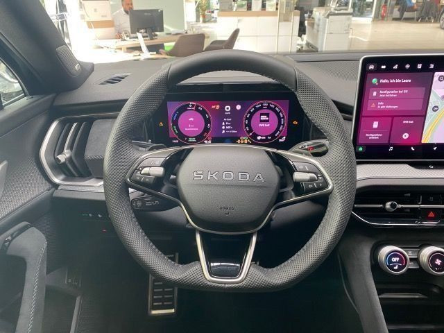 » Anhängevorrichtung mechanisch schwenkbarund elektrisch auslösbar» Anhängevorrichtung mechanisch schwenkbarund elektrisch auslösbar, mit Adapter» Virtual Cockpit Assistenzsysteme: » Ablenkungs- und Müdigkeitserkennung» Allwetter, Abbiege und Autobahnlicht» Auspark- und Spurwechselassistent und Ausstiegswarner» Automatische Distanzregelung» Berganfahrassistent» Dynamiklenkung» Front Assist mit Warnen und Bremsen auf Fahrzeuge, Fußgänger und Radfahrer» Leuchtweitenregulierung,autom/dynamisch mit Kurvenfahrlicht (AFS 1)» Mit Verkehrszeichenerkennung» Reifendruckkontrolle» Spurhalteassistent plus Emergency Assistund Stauassistent» Tagesfahrlicht mit Assistenzfahrlicht u.Coming- u. Leaving-home Funktion automatisch Multimedia: » DAB - Digitaler Radioempfang» Extern, USB Typ-C nur Datenbuchse(n) miterhöhter Ladeleistung und Ladebuchse(n)» Navigationssystem (Baseline) Technik & Sicherheit: » Airbag FS und BFS, ohne Knieairbag, mit BFS-Deaktivierung» Climatronic ( 3-Zonen ) mit Klimabedienteil hinten» Diebstahlalarmanlage, Innenraumüber- wachung,Back-up-Horn und Abschleppschutz» Kindersitzverankerung für Kindersitzsystem I-Size, 2 x top tether und Kindersitzverankerung vorn BF-Seite» Klimakomfortscheibe» LED- Hauptscheinwerfer mit Kurvenfahrlicht (spez. gestrakter Tagfahrlichtsignatur)» LED-SBBR-Leuchte, Lichtfunktionen animiert, spezielles Styling» Mit Kreuzungsassistent» Mit Rückfahrkamerasystem (Ausf.2)» Multipler Matrix-Beam» Remote Access + Infotainment Online 3 Jahre» Remote Access / Remote Access + Online Infotainment» Schlüsselloses Schließ- und Startsystem Keyless Advanced mit Safesicherung» Seitenairbag vorn und hinten, mit Kopfairbag und Interaktionsairbag vorn» Start/Stopp-Anlage mit Rekuperation» Aussenspiegel mit Memoryfunktion automatisch abblendbar, elektrisch anklapp-/einstellbar, separat beheizbar» Einparkhilfe vorn und hinten Interieur: » Akustische Seitenscheiben vorne mit SunSet (hinten und hinten seitlich)» Komforttelefonie: Wireless Charging (fast charge) ohne Außenantennenanbindung» Ledersportmultifunktionslenkrad, beheizbar mit Tiptronic» Lendenwirbelstütze, pneumatisch einstellbar für linke Vordersitzlehne, mechanisch einstellbar rechts» Rücksitzbank/-lehne, geteilt, umlegbar» Sicherheitsinnenspiegel automatisch abblendbar» Sitzeinstellung, links elektrisch mit Memory, rechts mechan. höheneinstellbar» Sitzheizung für Vorder-/u.Hintersitze, getrennt regelbar» Sport-Komfortsitze vorn Exterieur: » Aero Leichtmetallr{der HALTI 7,5Jx19 Anthrazit Glanzgedreht» Dachreling, schwarz» Leichtmetallräder 7 1/2J x 19» Sportline Sonstiges: » GM:T37/T3Y/TS1/T4P/T98/T4S/TR1/T0N/T13/T29/TD1/TI9/T3C/T1N/T27/T1Q/T5M» Ablagekästen im Kofferraum» Adaptive Fahrwerksregelung mit 2 - Ventildämpfer (DCC Plus)» Assisted Drive» Außenspiegel mit Memoryfunktion automatisch abblendbar, elektrisch anklapp-/einstellbar, separat beheizbar» Dekorleisten Chrom» Einparkhilfe vorn und hinten» Grill vorne mit horizontal beleuchtetem Streifen» Infotainment 13» Innenleuchte im Fußraum vorn und hinten» Light & View Paket Plus» Ländercluster WLTP EU-Genehmigung» Mit Ausweichunterstützung mit Abbiegeassistent» Mit erweitertem Sicherheitssystem (PreCrash)» Orderbank Smart offer» Simply Clever Family Paket» Sondermaßnahme A (Ausführung 1)» Technology Paket 13» Untere Dekor-Einlagen» Winter Paket Sport Garantie 24 Monate ab Tag der Erstzulassung, Angaben zum Hersteller: Skoda Auto Deutschland GmbH, Skoda, Max-Planck-Str. 3-5, 64331 Weiterstadt, 06150/133-0, info(at)skoda-auto.de Die angegebenen Verbrauchsangaben beziehen sich auf WLTP-Werte. Zwischenverkauf und Irrtümer für dieses Angebot sind ausdrücklich vorbehalten. Ausschlaggebend sind einzig und allein die Vereinbarungen in der Auftragsbestätigung oder im Kaufvertrag. Den genauen Ausstattungsumfang, die genauen Kilometer und den Verkaufspreis erhalten Sie von unserem Verkaufspersonal. Bitte kontaktieren Sie uns. Finanzierung