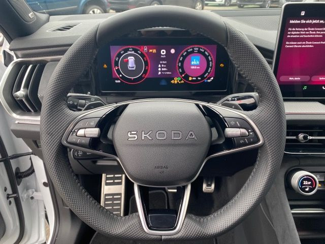 » Anhängevorrichtung mechanisch schwenkbarund elektrisch auslösbar» Anhängevorrichtung mechanisch schwenkbarund elektrisch auslösbar, mit Adapter» Head-Up Display» Virtual Cockpit Assistenzsysteme: » Ablenkungs- und Müdigkeitserkennung» Allwetter, Abbiege und Autobahnlicht» Anfahrhilfe-/ Abfahrhilfe» Auspark- und Spurwechselassistent und Ausstiegswarner» Automatische Distanzregelung» Dynamiklenkung» Front Assist mit Warnen und Bremsen auf Fahrzeuge, Fußgänger und Radfahrer» Leuchtweitenregulierung,autom/dynamisch mit Kurvenfahrlicht (AFS 1)» Mit Verkehrszeichenerkennung» Reifendruckkontrolle» Spurhalteassistent plus Emergency Assistund Stauassistent» Tagesfahrlicht mit Assistenzfahrlicht u.Coming- u. Leaving-home Funktion automatisch Multimedia: » DAB - Digitaler Radioempfang» Extern, USB Typ-C nur Datenbuchse(n) miterhöhter Ladeleistung und Ladebuchse(n)» Navigationssystem (Baseline) Technik & Sicherheit: » Airbag FS und BFS, ohne Knieairbag, mit BFS-Deaktivierung» Climatronic ( 3-Zonen ) mit Klimabedienteil hinten» Diebstahlalarmanlage, Innenraumüber- wachung,Back-up-Horn und Abschleppschutz» Kindersitzverankerung für Kindersitzsystem I-Size, 2 x top tether und Kindersitzverankerung vorn BF-Seite» LED- Hauptscheinwerfer mit Kurvenfahrlicht (spez. gestrakter Tagfahrlichtsignatur)» LED-SBBR-Leuchte, Lichtfunktionen animiert, spezielles Styling» Mit Kreuzungsassistent» Multipler Matrix-Beam» Parklenkassistent RPA (Remote Park Assist)» Remote Access + Infotainment Online 3 Jahre» Remote Access / Remote Access + Online Infotainment» Schlüsselloses Schließ- und Startsystem Keyless Advanced mit Safesicherung» Seitenairbag vorn und hinten, mit Kopfairbag und Interaktionsairbag vorn» Start/Stopp-Anlage mit Rekuperation» TOP AREA VIEW 360°» Aussenspiegel mit Memoryfunktion automatisch abblendbar, elektrisch anklapp-/einstellbar, separat beheizbar Interieur: » Akustische Seitenscheiben vorne mit SunSet (hinten und hinten seitlich)» Komforttelefonie: Wireless Charging (fast charge) ohne Außenantennenanbindung» Ledersportmultifunktionslenkrad, beheizbar mit Tiptronic» Lendenwirbelstütze, pneumatisch einstellbar beidseitig» Rücksitzbank/-lehne, geteilt, umlegbar» Sicherheitsinnenspiegel automatisch abblendbar» Sitzeinstellung elektrisch für beide Vordersitze, mit Memory und Sitztiefeneinstellung» Sitzheizung für Vorder-/u.Hintersitze, getrennt regelbar» Sport-Komfortsitze vorn» Standheizung mit Funkfernbedienung Exterieur: » Aero Leichtmetallr{der RILA 8Jx20 Anthrazit Glanzgedreht mit Aero Kappe» Dachreling, schwarz» Komfortöffnung Heckklappe (Virtuelles Pedal) plus Easy Close» Sportline Sonstiges: » 7-Gang-Automatikgetriebe für Allrad» Ablagekästen im Kofferraum» Adaptive Fahrwerksregelung mit 2 - Ventildämpfer (DCC Plus)» Allradantrieb» Assisted Drive Plus (RPA)» Außenspiegel mit Memoryfunktion automatisch abblendbar, elektrisch anklapp-/einstellbar, separat beheizbar» Convenience Paket Plus» Dekorleisten Chrom» Doppelboden im Kofferraum» Grill vorne mit horizontal beleuchtetem Streifen» Hinterachsgewicht Ausführung 5» Infotainment 13» Innenleuchte im Fußraum vorn und hinten» Light & View Paket Plus» Ländercluster WLTP EU-Genehmigung» Mit Ausweichunterstützung mit Abbiegeassistent» Mit erweitertem Sicherheitssystem (PreCrash)» Orderbank Smart offer» Schriftzugsatz Schwarz» Simply Clever Family Paket» Sondermaßnahme A (Ausführung 1)» Technology Paket 13 Plus» Trainiertes Parken» Untere Dekor-Einlagen» Winter Paket Sport Garantie 24 Monate ab Tag der Erstzulassung, Angaben zum Hersteller: Skoda Auto Deutschland GmbH, Skoda, Max-Planck-Str. 3-5, 64331 Weiterstadt, 06150/133-0, info(at)skoda-auto.de Die angegebenen Verbrauchsangaben beziehen sich auf WLTP-Werte. Zwischenverkauf und Irrtümer für dieses Angebot sind ausdrücklich vorbehalten. Ausschlaggebend sind einzig und allein die Vereinbarungen in der Auftragsbestätigung oder im Kaufvertrag. Den genauen Ausstattungsumfang, die genauen Kilometer und den Verkaufspreis erhalten Sie von unserem Verkaufspersonal. Bitte kontaktieren Sie uns. Finanzierung