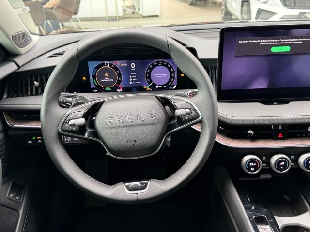 » Anhängevorrichtung mechanisch schwenkbarund elektrisch auslösbar» Anhängevorrichtung mechanisch schwenkbarund elektrisch auslösbar, mit Adapter» Head-Up Display» Sitzbelüftung/Massagesitz(e)vorn» Virtual Cockpit Assistenzsysteme: » Ablenkungs- und Müdigkeitserkennung» Auspark- und Spurwechselassistent und Ausstiegswarner» Automatische Distanzregelung» Berganfahrassistent» Einstiegsleisten vorne» Front Assist mit Warnen und Bremsen auf Fahrzeuge, Fußgänger und Radfahrer» Leuchtweitenregulierung,autom/dynamisch mit Kurvenfahrlicht (AFS 1)» Mit Verkehrszeichenerkennung» Reifendruckkontrolle» Spurhalteassistent plus Emergency Assistund Stauassistent» Tagesfahrlicht mit Assistenzfahrlicht u.Coming- u. Leaving-home Funktion automatisch Multimedia: » SOUND SYSTEM CANTON» DAB - Digitaler Radioempfang» Extern, USB Typ-C Datenbuchse(n) und Ladebuchse(n) mit erhöhter Ladeleistung» Innenspiegel - mit USB» Navigationssystem (Baseline)» Wired & Wireless SmartLink (CarPlay + Android Auto) Technik & Sicherheit: » 6-Gang-Automatikgetriebe» Airbag FS und BFS, Knieairbag auf FS, mit BFS-Deaktivierung» Climatronic ( 3-Zonen ) mit Klimabedienteil hinten» Design-LED-Heckleuchten» Diebstahlalarmanlage, Innenraumüber- wachung,Back-up-Horn und Abschleppschutz» Kindersitzverankerung für Kindersitzsystem I-Size, 2 x top tether und Kindersitzverankerung vorn BF-Seite» Matrix-LED-Hauptscheinwerfer» Mit Kreuzungsassistent» Multipler Matrix-Beam» Remote Access + Infotainment Online 3 Jahre» Remote Access / Remote Access + Online Infotainment» Schlüsselloses Schließ- und Startsystem Keyless Advanced mit Safesicherung» Seitenairbag vorn und hinten, mit Kopfairbag und Interaktionsairbag vorn» Start/Stopp-Anlage mit Rekuperation» Aussenspiegel mit Memoryfunktion automatisch abblendbar, elektrisch anklapp-/einstellbar, separat beheizbar Interieur: » Klimakomfortscheibe (beheizbare)» Komforttelefonie: Wireless Charging (fast charge) ohne Außenantennenanbindung» Ledermultifunktionslenkrad, beheizbar mit Tiptronic» Lendenwirbelstütze, pneumatisch einstellbar beidseitig» Rücksitzbank ungeteilt, Lehne geteilt umlegbar mit Mittelarmlehne» Sicherheitsinnenspiegel automatisch abblendbar» Sitzheizung für Vorder-/u.Hintersitze, getrennt regelbar» Sonnenschutzrollo für Seitenscheiben hinten + Abfallkorb Exterieur: » Dachreling, silver eloxiert» Komfortöffnung Heckklappe (Virtuelles Pedal)» Leichtmetallr{der 8Jx19 VERITATE, glanzgedreht anthrazit» Leichtmetallräder 8Jx19 VERITATE, glanzgedreht anthrazit Sonstiges: » 3 Schlüssel» 4 Zyl.Ottomotor 1,5L Aggr. 05E.G» 4-Zylinder-Ottomotor 1,5L/110 KW TSI, Hybrid Grundmotor ist: T5F/T1C/T2Y/TU6/T2N/T0C/T5U/T60» Ablagekasten im Kofferraum mit Deckel in der Seitenverkleidung» Adaptive Fahrwerksregelung mit 2 - Ventildämpfer (DCC Plus)» Akustische seitliche Fenster vorne und hinten, mit SunSet» Ambientelicht Ausführung 2» Assisted Drive Paket PLUS (RPA)» Außen-Sound, Soundbox ohne Deaktivierung(Ausführung 1)» Außenspiegel mit Memoryfunktion automatisch abblendbar, elektrisch anklapp-/einstellbar, separat beheizbar» Design Selection SUITE L&K schwarz Sitzbezüge in Leder/Kunstleder» Dämpfung hinten - DCC» Ergonomische Sitze mit AGR» Family/Business Paket» Fensterzierleisten - chrom» Gepäckraumabdeckung, mit flexible Ablagetasche, mit el. Rollo-Entriegelung» Infotainment 13» Infotainment 13 PLUS» Innenleuchte im Fußraum vorn und hinten» L&K» Ländercluster WLTP EU-Genehmigung» Mit Ausweichunterstützung mit Abbiegeassistent» Mit erweitertem Sicherheitssystem (PreCrash)» Netzprogramm im Kofferraum (3 Netze)» Remote Park Assist» Sitzeinstellung, elektrisch, für beide Vordersitze mit Memory und beidseitig Smart Comfort Einstiegshilfe» TOP AREA VIEW 360°» Trainiertes Parken» Untere Dekor-Einlagen Angaben zum Hersteller: Skoda Auto Deutschland GmbH, Skoda, Max-Planck-Str. 3-5, 64331 Weiterstadt, 06150/133-0, info(at)skoda-auto.de Die angegebenen Verbrauchsangaben beziehen sich auf WLTP-Werte. Zwischenverkauf und Irrtümer für dieses Angebot sind ausdrücklich vorbehalten. Ausschlaggebend sind einzig und allein die Vereinbarungen in der Auftragsbestätigung oder im Kaufvertrag. Den genauen Ausstattungsumfang, die genauen Kilometer und den Verkaufspreis erhalten Sie von unserem Verkaufspersonal. Bitte kontaktieren Sie uns. Finanzierung