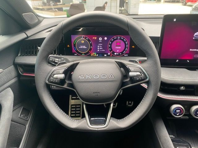 » Anhängevorrichtung mechanisch schwenkbaru.elektr.auslösbar mit Anhängerrangier assistent » Head-Up Display » Virtual Cockpit Assistenzsysteme: » Ablenkungs- und Müdigkeitserkennung mit Fahrerbeobachtung » Anh{ngevorrichtung mechanisch schwenkbaru.elektr.ausl?sbar mit Anh{ngerrangier assistent, mit Adapter » Auspark- und Spurwechselassistent und Ausstiegswarner » Automatische Distanzregelung » Berganfahrassistent » Einstiegsleisten vorne » Front Assist mit Warnen und Bremsen auf Fahrzeuge, Fußgänger und Radfahrer » Leuchtweitenregulierung,autom/dynamisch mit Kurvenfahrlicht (AFS 1) » Mit Verkehrszeichenerkennung » Reifendruckkontrolle » Spurhalteassistent plus Emergency Assistund Stauassistent » Tagesfahrlicht mit Assistenzfahrlicht u.Coming- u. Leaving-home Funktion automatisch Multimedia: » SOUND SYSTEM CANTON » DAB - Digitaler Radioempfang » Extern, USB Typ-C Datenbuchse(n) und Ladebuchse(n) mit erhöhter Ladeleistung » Innenspiegel - mit USB » Navigationssystem (Baseline) » Wired & Wireless SmartLink (CarPlay + Android Auto) Technik & Sicherheit: » 6-Gang-Automatikgetriebe » Airbag FS und BFS, Knieairbag auf FS, mit BFS-Deaktivierung » Climatronic ( 3-Zonen ) mit Klimabedienteil hinten » Design-LED-Heckleuchten » Diebstahlalarmanlage, Innenraumüber- wachung,Back-up-Horn und Abschleppschutz » Kindersitzverankerung für Kindersitzsystem I-Size, 2 x top tether und Kindersitzverankerung vorn BF-Seite » Matrix-LED-Hauptscheinwerfer » Mit Kreuzungsassistent » Multipler Matrix-Beam » Remote Access + Infotainment Online 3 Jahre » Remote Access / Remote Access + Online Infotainment » Schlüsselloses Schließ- und Startsystem Keyless Advanced mit Safesicherung » Seitenairbag vorn, mit Kopfairbag und Interaktionsairbag vorn » Start/Stopp-Anlage mit Rekuperation » TOP AREA VIEW 360° » Aussenspiegel mit Memoryfunktion automatisch abblendbar, elektrisch anklapp-/einstellbar, separat beheizbar Interieur: » Klimakomfortscheibe (beheizbare) » Komforttelefonie: Wireless Charging (fast charge) ohne Außenantennenanbindung » Ledersportmultifunktionslenkrad, beheizbar mit Tiptronic » Lendenwirbelstütze, pneumatisch einstellbar beidseitig » Rücksitzbank ungeteilt, Lehne geteilt umlegbar mit Mittelarmlehne » Sicherheitsinnenspiegel automatisch abblendbar » Sitzheizung für Vorder-/u.Hintersitze, getrennt regelbar Exterieur: » Dachreling, schwarz glanz » Design Selection SUEDIA Sportline Sitzbezüge in Stoff/Kunstleder » Komfortöffnung Heckklappe (Virtuelles Pedal) plus Easy Close » Leichtmetallräder 8Jx19 TORCULAR, glanzgedreht schwarz » Sportline Sonstiges: » 3 Schlüssel » Ablagekasten im Kofferraum mit Deckel in der Seitenverkleidung » Adaptive Fahrwerksregelung mit 2 - Ventildämpfer (DCC Plus) » Akustische seitliche Fenster vorne und hinten, mit SunSet » Ambientelicht Ausführung 2 » Assisted Drive Paket PLUS (RPA) » Außen-Sound, Soundbox ohne Deaktivierung(Ausführung 1) » Außenspiegel mit Memoryfunktion automatisch abblendbar, elektrisch anklapp-/einstellbar, separat beheizbar » Dämpfung hinten - DCC » Gepäckraumabdeckung, mit flexible Ablagetasche, mit el. Rollo-Entriegelung » Infotainment 13 » Infotainment 13 PLUS » Innenleuchte im Fußraum vorn und hinten » Ländercluster WLTP EU-Genehmigung » Massagesitz(e) vorn (Ausführung 2) » Mit Ausweichunterstützung mit Abbiegeassistent » Mit erweitertem Sicherheitssystem (PreCrash) » Netzprogramm im Kofferraum (3 Netze) » Pedalen aus Edelstahl » Remote Park Assist » Schriftzugsatz in Grundausführung schwarz » Sitzeinstellung, elektrisch, für beide Vordersitze mit Memory und beidseitig Smart Comfort Einstiegshilfe » Stoff Himmel, schwarz » Trainiertes Parken » Untere Dekor-Einlagen Garantie 24 Monate ab Tag der Erstzulassung, Angaben zum Hersteller: Skoda Auto Deutschland GmbH, Skoda, Max-Planck-Str. 3-5, 64331 Weiterstadt, 06150/133-0, info(at)skoda-auto.de Die angegebenen Verbrauchsangaben beziehen sich auf WLTP-Werte. Zwischenverkauf und Irrtümer für dieses Angebot sind ausdrücklich vorbehalten. Ausschlaggebend sind einzig und allein die Vereinbarungen in der Auftragsbestätigung oder im Kaufvertrag. Den genauen Ausstattungsumfang, die genauen Kilometer und den Verkaufspreis erhalten Sie von unserem Verkaufspersonal. Bitte kontaktieren Sie uns. Finanzierung