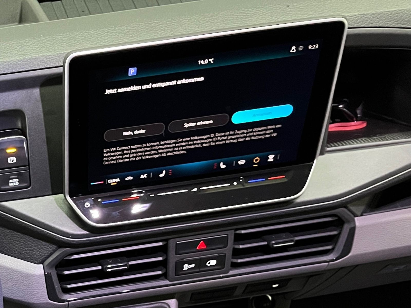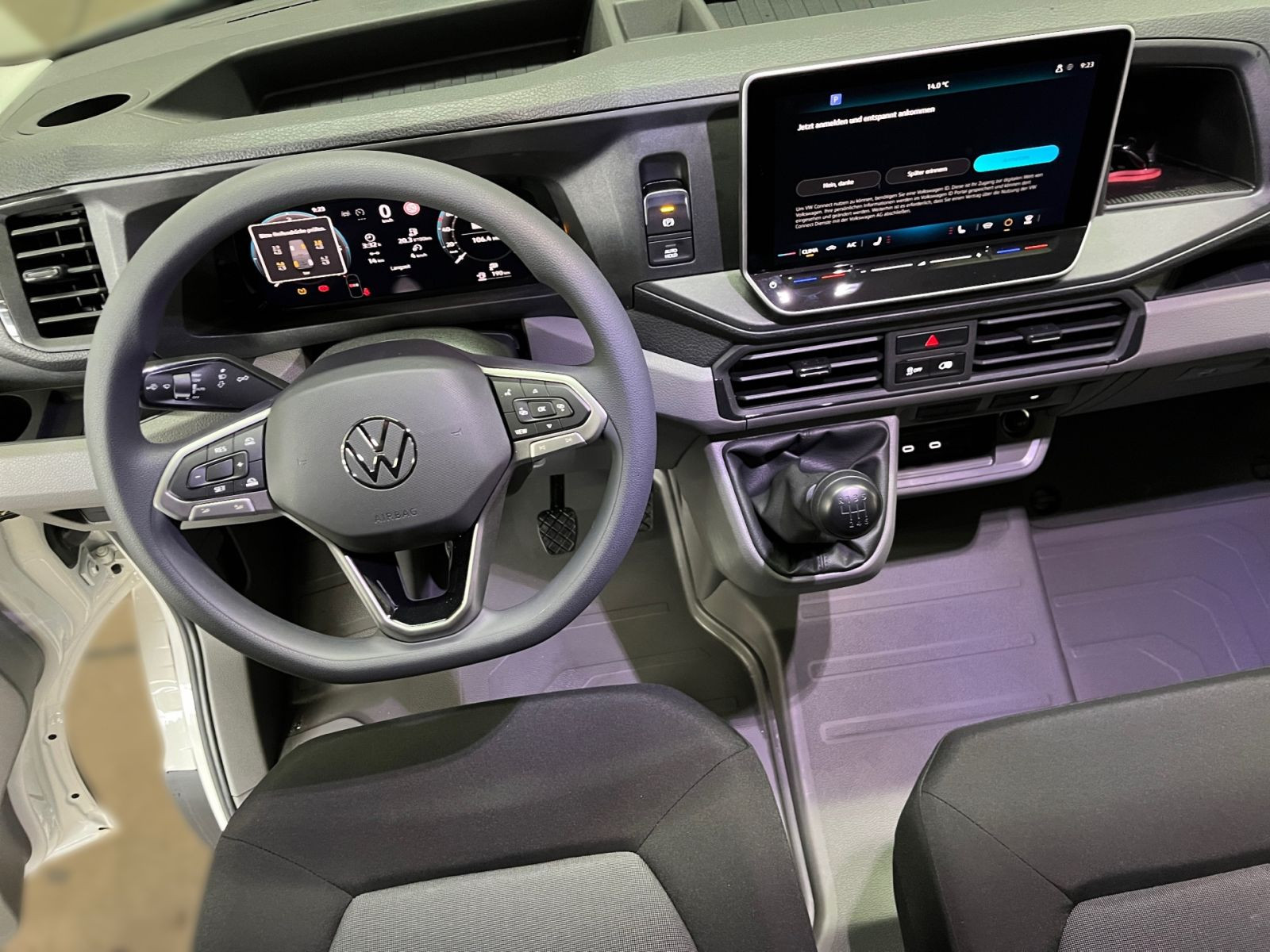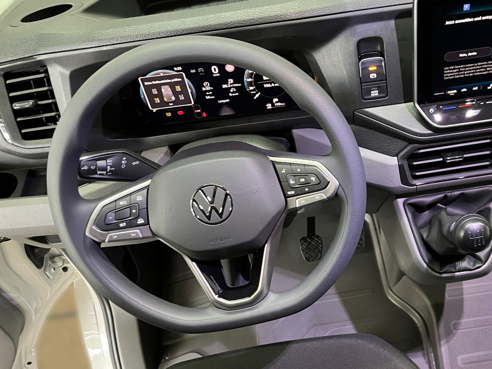 » Digital Cockpit Pro Assistenzsysteme: » Assistenzpaket Basic inkl. Intelligent Speed Assist und Geschwindigkeitsregelanlage » Scheibenwischer-Intervallschaltung mit Licht- und Regensensor und Tagfahrlicht mit Fahrlichtschaltung (automatisch) » Elektronisches Stabilitätsprogramm (ESP) inkl. ABS, ASR, EDS, SWA » Spurhalteassistent Lane Assist » Reifendruck-Kontrollsystem (direkt messend) » Front Assist mit Warnen und Bremsen auf Fahrzeuge, Fußgänger und Radfahrer » Ablenkungs- und Müdigkeitserkennung » Verkehrszeichenerkennung » Berganfahrassistent Multimedia: » Wired & Wireless App-Connect » Radio Ready to Discover mit 26cm (10,4) Touch-Farbdisplay, mit Vorbereitung Navigationssystem mit 4 Lautsprechern Technik & Sicherheit: » Außenspiegel, elektrisch einstell-, beheiz- und anklappbar » Rückfahrkamera Rear View » Klimaanlage mit manueller Regelung im Fahrerhaus » Tire Mobility Set: 12-Volt-Kompressor und Reifendichtmittel » Zentralverriegelung mit schlüssellosem Startsystem Keyless Start, ohne Safesicherung » Airbag für Fahrer und Beifahrer mit Beifahrer-Airbag-Deaktivierung » Wegfahrsperre, elektronisch » Motor-Start-Stopp-System mit Bremsenergie-Rückgewinnung » Einparkhilfe im Front- und Heckbereich » 2 Funkklappschlüssel » 6-Gang-Schaltgetriebe Interieur: » Sitzbezüge in Stoff, Dessin Austin » Sitzheizung, links und rechts, getrennt regelbar, in der 1.Sitzreihe » Multifunktionslenkrad Exterieur: » Anhängevorrichtung, starr (inkl. Gespannstabilisierung) » Hochdach, außen in Wagenfarbe lackiert » Ganzjahresreifen » Farbe Candy-Weiß » Radstand mittellang (MR) - 3.640 mm » Schiebetür, rechts, im Lade-/ Fahrgastraum » Scharniere für Heckflügeltüren » 12-V-Steckdose im Fahrerhaus (in der Schalttafel) Sonstiges: » Komfortsitz links, in der 1.Sitzreihe » Handschuhfach mit abschließbarer Klappe, beleuchtet » Holzfußboden und Radkastenverkleidung im Lade-/Fahrgastraum » Seitenverkleidung im Laderaum aus Kunststoffhohlkammerplatten, bis zum Dachrahmen » Seitliche Markierungsleuchten » Beheizbare Scheibenwaschdüsen vorn und Waschwasserstandanzeige » Vorbereitet für VW Connect und VW Connect Plus » 45489 » B21871 » ÜF » Stoßfänger vorne in Grau (inkl. 2 verdeckten Trittstufen) » Trennwand » Abgaskonzept, WLTP3 N1-III, N2//EU6EC » Zulassung als Lkw mit einer N1-Zulassung (bis einschließlich 3,5 t zulässigem Gesamtgewicht) » Außenspiegel rechts, konvex, mit integrierter LED-Blinkleuchte und Weitwinkelbereich » Außenspiegel links, konvex, mit integrierter LED-Blinkleuchte und Weitwinkelbereich » Kühlerschutzgitter, unlackiert » Haltegriff an der Trennwand im Lade-/ Fahrgastraum » Ländercluster WLTP EU-Genehmigung » Standard-Ausführung » Kastenwagen » Multifunktionskamera » Elektronische Parkbremse » Serviceanzeige 50.000 km oder 2 Jahre (variabel) Garantie 24 Monate ab Tag der Erstzulassung, Angaben zum Hersteller: Volkswagen AG, Volkswagen Nutzfahrzeuge, Mecklenheidestraße 74, 30419 Hannover, Deutschland, +49-5361-9-0, kundenbetreuung(at)volkswagen.de, Produktinformationen: https://www.volkswagen.de/idhub/content/dam/onehub_master/downloads/product-safety-cv/volkswagen-cv-sicherheitshinweise-de.pdf Die angegebenen Verbrauchsangaben beziehen sich auf WLTP-Werte. Zwischenverkauf und Irrtümer für dieses Angebot sind ausdrücklich vorbehalten. Ausschlaggebend sind einzig und allein die Vereinbarungen in der Auftragsbestätigung oder im Kaufvertrag. Den genauen Ausstattungsumfang, die genauen Kilometer und den Verkaufspreis erhalten Sie von unserem Verkaufspersonal. Bitte kontaktieren Sie uns. Finanzierung