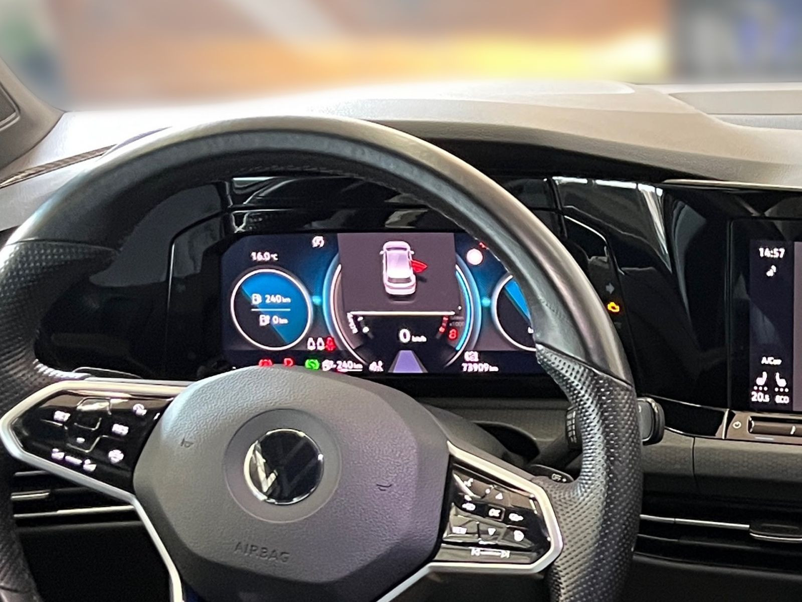 » Digital Cockpit Pro, mehrfarbig, verschiedene Info-Profile wählbar Assistenzsysteme: » Abbiege- und Schlechtwetterlicht » Fahrlichtschaltung automatisch, mit LED-Tagfahrlicht sowie Begrüßungs- und Verabschiedungslicht » Geschwindigkeitsbegrenzer in Verbindung mit Online-Diensten » Müdigkeitserkennung » Notbremsassistent Front Assist mit Fußgänger- und Radfahrererkennung » Reifenkontrollanzeige » Spurhalteassistent Lane Assist » Verkehrszeichenerkennung Multimedia: » App-Connect inkl. App-Connect Wireless für Apple CarPlay und Android Auto » Navigationssystem Discover Media inkl. Streaming & Internet » Navigationssystem Discover Media inkl. Streaming & Internet sowie Sprachbedienung » Radio » Sprachbedienung » Telefonschnittstelle mit induktiver Ladefunktion Technik & Sicherheit: » Airbag für Fahrer und Beifahrer, mit Beifahrerairbag-Deaktivierung » Außenspiegel elektrisch einstell- und beheizbar, mit Memory-Funktion und Beifahrerspiegelabsenkung » Einparkhilfe - Warnsignale bei Hindernissen im Front- und Heckbereich » ISOFIX-Halteösen für Kindersitze auf denäußeren Rücksitzen sowie auf dem Beifahrersitz, i-Size-kompatibel » Klimaanlage Air Care Climatronic mit Aktiv-Kombifilter, Bedienungselementen hinten und 3-Zonen-Temperaturregelung » Kopfairbagsystem für Front- und Fondpassagiere inkl. Seitenairbags vorn » LED-Plus-Scheinwerfer » LED-Rückleuchten » Schlüsselloses Startsystem Keyless Start ohne Safe-Sicherung » Start-Stopp-System mit Bremsenergie-Rückgewinnung Interieur: » Komfort-Sport-Ausstattung » Lendenwirbelstützen vorn » Mittelarmlehne vorn höhen- und längseinstellbar » Multifunktions-Sportlenkrad in Leder, beheizbar, mit Touch-Bedienung und Schaltwippen » Rücksitzbank ungeteilt, Lehne asymmetrisch geteilt umklappbar, mit Mittelarmlehne » Sitzmittelbahnen der Vordersitze und der äußeren Rücksitzplätze in Stoff Scale Paper » Top-Sportsitze vorn » Vordersitze beheizbar Exterieur: » Seitenscheiben hinten und Heckscheibe abgedunkelt Sonstiges: » 12-V-Steckdose im Gepäckraum » Fahrprofilauswahl » Leuchtweitenregulierung dynamisch » Multifunktionskamera Angaben zum Hersteller: Volkswagen AG, Volkswagen, Berliner Ring 2, 38440 Wolfsburg, Deutschland, +49-5361-9-0, kundenbetreuung(at)volkswagen.de, Produktinformationen: https://www.volkswagen.de/idhub/content/dam/onehub_master/downloads/product-safety/volkswagen-sicherheitshinweise-de.pdf Die angegebenen Verbrauchsangaben beziehen sich auf WLTP-Werte. Zwischenverkauf und Irrtümer für dieses Angebot sind ausdrücklich vorbehalten. Ausschlaggebend sind einzig und allein die Vereinbarungen in der Auftragsbestätigung oder im Kaufvertrag. Den genauen Ausstattungsumfang, die genauen Kilometer und den Verkaufspreis erhalten Sie von unserem Verkaufspersonal. Bitte kontaktieren Sie uns. Finanzierung
