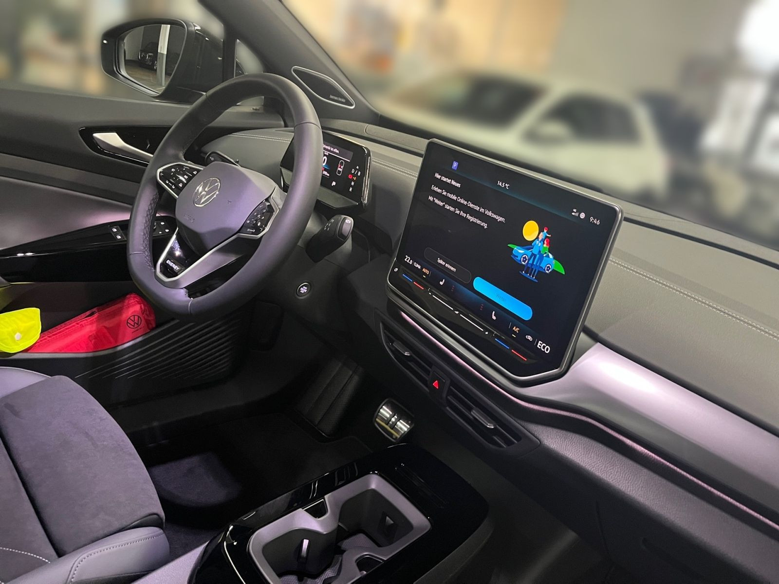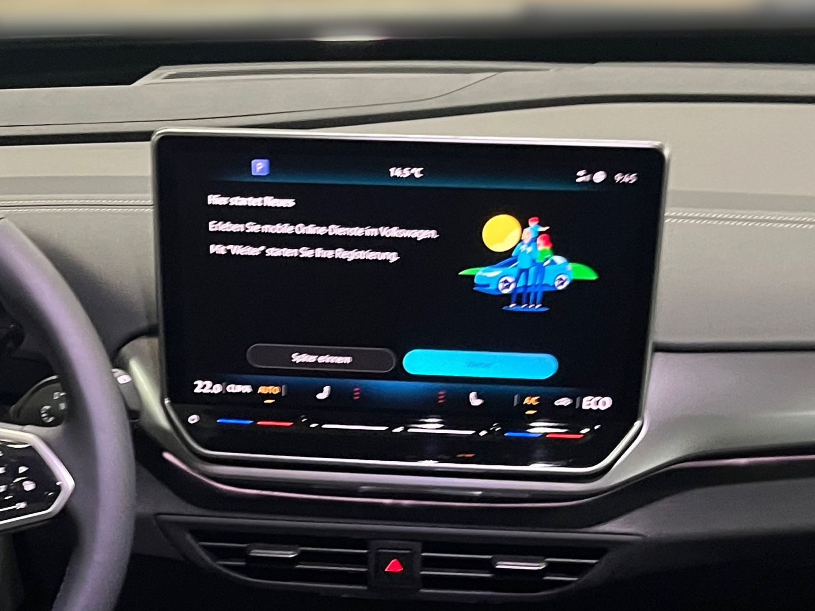 » Vordersitze mit Massagefunktion» Soundsystem Harman Kardon, 8+1 Lautsprecher, 480 Watt Gesamtleistung, 12-Kanal-Verstärker, Subwoofer» Augmented-Reality-Head-up-Display Assistenzsysteme: » ergoActive-Sitze vorn mit elektrischer Einstellung, Memory-Funktion und verschiebbarer Oberschenkelauflage» Fahrassistent Travel Assist, Spurhalteassistent Lane Assist und Emergency Assist» Spurwechselassistent Side Assist, Ausparkassistent und Ausstiegswarnung» Reifenkontrollanzeige» Proaktives Insassenschutzsystem in Verbindung mit Front Assist» Dynamischer Fernlichtassistent Dynamic Light Assist» Notbremsassistent Front Assist mit Fußgänger- und Radfahrererkennung» Regensensor» Automatische Distanzregelung» Ablenkungs- und Müdigkeitserkennung» Geschwindigkeitsbegrenzer mit vorausschauender Regelung» Verkehrszeichenerkennung Multimedia: » Navigationssystem Discover Pro» Radio Ready 2 Discover Max» Diversity-Antenne für FM-Empfang» App-Connect Wireless für Apple CarPlay und Android Auto» Telefonschnittstelle mit induktiver Ladefunktion» Digitaler Radioempfang DAB+» 2 USB-C-Schnittstellen vorn, 2 USB-C-Ladebuchsen an der Mittelkonsole hinten, Ladeleistung bis zu 45 W Technik & Sicherheit: » Servolenkung elektromechanisch, geschwindigkeitsabhängig geregelt» ISOFIX-Halteösen für Kindersitze auf den äußeren Rücksitzen sowie auf dem Beifahrersitz, i-Size-kompatibel» Schlüsselloses Schließ- und Startsystem Keyless Access, mit berührungsloser Ver- und Entriegelung, SAFE-Verriegelung» Airbag für Fahrer und Beifahrer, mit Beifahrerairbag-Deaktivierung» Kopfairbags vorn und hinten, Seitenairbags vorn, Center-Airbag» Außenspiegel elektrisch einstell-, anklapp- und beheizbar, mit Beifahrerspiegelabsenkung» Ladekabel Mode 3 Typ 2, 16 A» Diebstahlwarnanlage mit Innenraumüberwachung, Back-up-Horn und Abschleppschutz» Parkassistent Park Assist Plus inkl. Einparkhilfe» IQ.LIGHT - LED-Matrix-Scheinwerfer mit automatischer Fahrlichtschaltung, Schlechtwetterlicht, Begrüßungsfunktion» 3D-LED-Rückleuchten mit dynamischer Blinkleuchte» CCS-Ladedose» Getriebe für Elektroantrieb ( 1-Gang )» e-Sound» Hochvolt-Batterie 82 kWh (brutto)» Rückfahrkamera Rear View» 11 kW AC-Ladeleistung (Wechselstrom)» Klimaanlage Air Care Climatronic mit Aktiv-Kombifilter, Standklimatisierung und 2-Zonen-Temperaturregelung» Notruf-Service, Laufzeit 10 Jahre ab Erstauslieferung, Voraussetzung: Verfügbarkeit benötigter Mobilfunknetze Interieur: » Multifunktionslenkrad beheizbar, mit Touch-Bedienung» Rücksitzlehne asymmetrisch geteilt umklappbar, mit Durchlademöglichkeit und Mittelarmlehne, 2 Becherhalter» Vordersitze beheizbar» Frontscheibe in Verbundsicherheitsglas, drahtlos beheizbar und infrarot-reflektierend, geräuschdämmend» Innenspiegel automatisch abblendend» Armlehne für Vordersitze» Lendenwirbelstützen vorn pneumatisch einstellbar» Sitzmittelbahnen der Vordersitze und der äußeren Rücksitzplätze in Mikrovlies ArtVelours Exterieur: » Farbe Blue Dusk Metallic» Schriftzug für die Modellbezeichnung auf der Heckklappe» Dachreling schwarz» Seitenscheiben hinten und Heckscheibe abgedunkelt» Easy Open & Close - Heckklappe mit sensorgesteuerter Öffnung und Schließung, mit Fernentriegelung» 4 Leichtmetallräder Hamar 8 J x 19 in Schwarz, Oberfläche glanzgedreht Sonstiges: » Soul-Schwarz - Platinum Grey/ Platinum Grey - Soul-Schwarz / Schwarz / Schwarz» Energy» Design-Paket» Interieurpaket Plus» Leiste zwischen den Scheinwerfern sowie Türgriffmulden beleuchtet» ENERGY» Bordwerkzeug und Tire Mobility Set: 12-Volt-Kompressor und Reifendichtmittel» Heckantrieb» Fahrprofilauswahl» Mittelkonsole variabel, mit wechselbaren Einsätzen für Becherhalter und Ablagefächer» Gepäckraumboden» Abbiegebremsfunktion und Ausweichunterstützung» Außenspiegelgehäuse» 12-V-Steckdose im Gepäckraum» Pro» Fahrzeuge mit besonderen Produktaufwertungsmaßnahmen» Batterie 280A (46Ah)» Sprachassistent IDA» Ambientebeleuchtung 30-farbig, inkl. ID. Light» Softwareverbund Ausführung 15 UN-ECE» Pedale in Edelstahl, im Play/Pause-Design Garantie 24 Monate ab Tag der Erstzulassung, Angaben zum Hersteller: Volkswagen AG, Volkswagen, Berliner Ring 2, 38440 Wolfsburg, Deutschland, +49-5361-9-0, kundenbetreuung(at)volkswagen.de, Produktinformationen: https://www.volkswagen.de/idhub/content/dam/onehub_master/downloads/product-safety/volkswagen-sicherheitshinweise-de.pdf Die angegebenen Verbrauchsangaben beziehen sich auf WLTP-Werte. Zwischenverkauf und Irrtümer für dieses Angebot sind ausdrücklich vorbehalten. Ausschlaggebend sind einzig und allein die Vereinbarungen in der Auftragsbestätigung oder im Kaufvertrag. Den genauen Ausstattungsumfang, die genauen Kilometer und den Verkaufspreis erhalten Sie von unserem Verkaufspersonal. Bitte kontaktieren Sie uns. Finanzierung