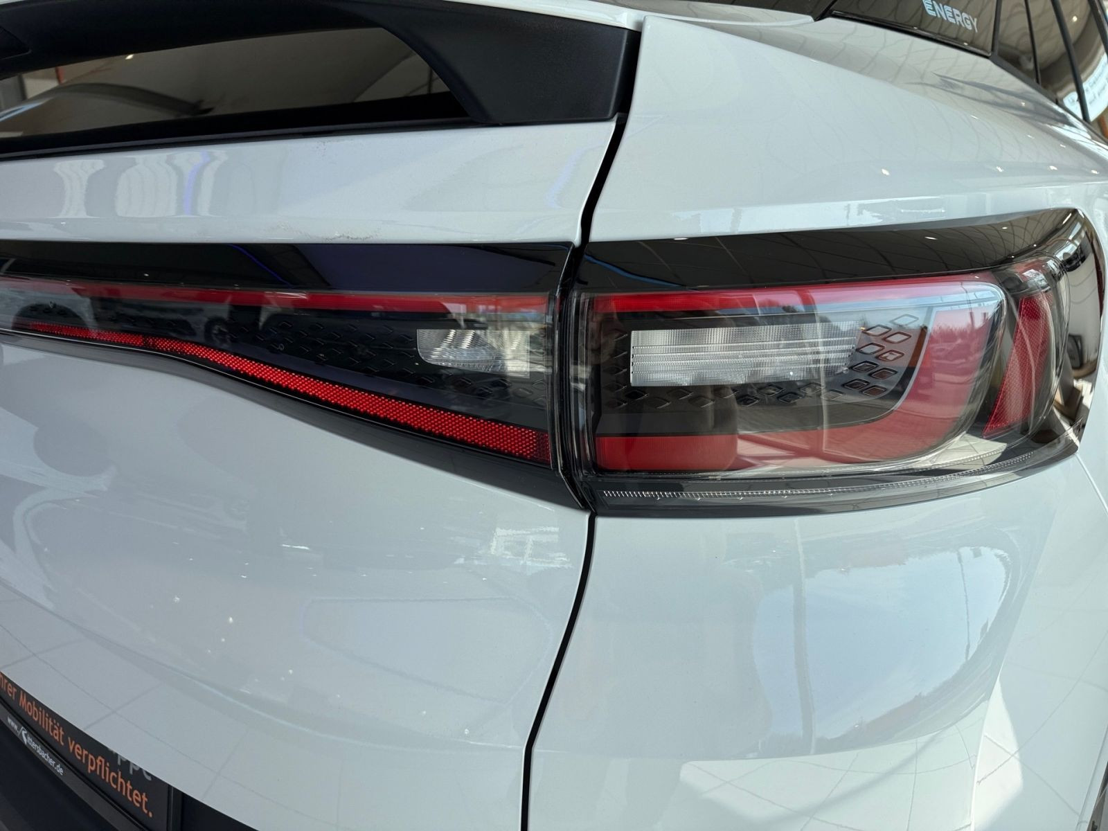 » Anhängevorrichtung anklappbar, mit elektrischer Entriegelung » Vordersitze mit Massagefunktion Assistenzsysteme: » ergoActive-Sitze vorn mit elektrischer Einstellung, Memory-Funktion und verschiebbarer Oberschenkelauflage » Fahrassistent Travel Assist, Spurhalteassistent Lane Assist und Emergency Assist » Spurwechselassistent Side Assist, Ausparkassistent und Ausstiegswarnung » Reifenkontrollanzeige » Proaktives Insassenschutzsystem in Verbindung mit Front Assist » Notbremsassistent Front Assist mit Fußgänger- und Radfahrererkennung » Regensensor » Automatische Distanzregelung » Ablenkungs- und Müdigkeitserkennung » Memory-Funktion für Parkassistent » Geschwindigkeitsbegrenzer mit vorausschauender Regelung » Verkehrszeichenerkennung Multimedia: » Navigationssystem Discover Pro » Radio Ready 2 Discover Max » Diversity-Antenne für FM-Empfang » App-Connect Wireless für Apple CarPlay und Android Auto » Telefonschnittstelle mit induktiver Ladefunktion » Digitaler Radioempfang DAB+ » 2 USB-C-Schnittstellen vorn, 2 USB-C-Ladebuchsen an der Mittelkonsole hinten, Ladeleistung bis zu 45 W Technik & Sicherheit: » Servolenkung elektromechanisch, geschwindigkeitsabhängig geregelt » ISOFIX-Halteösen für Kindersitze auf den äußeren Rücksitzen sowie auf dem Beifahrersitz, i-Size-kompatibel » Schlüsselloses Schließ- und Startsystem Keyless Access, mit berührungsloser Ver- und Entriegelung, SAFE-Verriegelung » Airbag für Fahrer und Beifahrer, mit Beifahrerairbag-Deaktivierung » Kopfairbags vorn und hinten, Seitenairbags vorn, Center-Airbag » Außenspiegel elektrisch einstell-, anklapp- und beheizbar, mit Beifahrerspiegelabsenkung » Ladekabel Mode 3 Typ 2, 16 A » Diebstahlwarnanlage mit Innenraumüberwachung, Back-up-Horn und Abschleppschutz » Parkassistent Park Assist Pro, inkl. Einparkhilfe » LED-Scheinwerfer mit automatischer Fahrlichtschaltung » LED-Rückleuchten » CCS-Ladedose » Getriebe für Elektroantrieb ( 1-Gang ) » e-Sound » Hochvolt-Batterie 82 kWh (brutto) » Umgebungsansicht Area View inkl. Rückfahrkamera Rear View » 11 kW AC-Ladeleistung (Wechselstrom) » Klimaanlage Air Care Climatronic mit Aktiv-Kombifilter, Standklimatisierung und 2-Zonen-Temperaturregelung » Notruf-Service, Laufzeit 10 Jahre ab Erstauslieferung, Voraussetzung: Verfügbarkeit benötigter Mobilfunknetze Interieur: » Multifunktionslenkrad beheizbar, mit Touch-Bedienung » Rücksitzlehne asymmetrisch geteilt umklappbar, mit Durchlademöglichkeit und Mittelarmlehne, 2 Becherhalter » Vordersitze beheizbar » Frontscheibe in Verbundsicherheitsglas, drahtlos beheizbar und infrarot-reflektierend, geräuschdämmend » Innenspiegel automatisch abblendend » Armlehne für Vordersitze » Lendenwirbelstützen vorn pneumatisch einstellbar » Sitzmittelbahnen der Vordersitze und der äußeren Rücksitzplätze in Mikrovlies ArtVelours Exterieur: » Drammen 8 J x 20 vorn, 9 J x 20 hinten, in Schwarz / glanzgedreht, Reifen 235/50 R 20 vorn, Reifen 255/45 R 20 hinten » Schriftzug für die Modellbezeichnung auf der Heckklappe » Seitenscheiben hinten und Heckscheibe abgedunkelt » 4 Leichtmetallräder Drammen, 8 J x 20 vorn, 9 J x 20 hinten, in Schwarz, Oberfläche glanzgedreht » Easy Open & Close - Heckklappe mit sensorgesteuerter Öffnung und Schließung, mit Fernentriegelung Sonstiges: » Soul-Schwarz - Platinum Grey/ Platinum Grey - Soul-Schwarz/ Schwarz/Schwarz » Interieurpaket Plus » Assistenzpaket IQ.DRIVE » Modelljahreswechsel » Farbe Gletscherweiß Metallic / Schwarz Uni » Heckantrieb » Fahrprofilauswahl » Mittelkonsole variabel, mit wechselbaren Einsätzen für Becherhalter und Ablagefächer » Gepäckraumboden » Abbiegebremsfunktion und Ausweichunterstützung » Außenspiegelgehäuse » 12-V-Steckdose im Gepäckraum » Pro » Fahrzeuge mit besonderen Produktaufwertungsmaßnahmen » Batterie 280A (46Ah) » Coupe » Sprachassistent IDA » Ambientebeleuchtung 30-farbig, inkl. ID. Light » Türgriffmulden beleuchtet » Softwareverbund Ausführung 15 UN-ECE » Pedale in Edelstahl, im Play/Pause-Design Garantie 24 Monate ab Tag der Erstzulassung, Angaben zum Hersteller: Volkswagen AG, Volkswagen, Berliner Ring 2, 38440 Wolfsburg, Deutschland, +49-5361-9-0, kundenbetreuung(at)volkswagen.de, Produktinformationen: https://www.volkswagen.de/idhub/content/dam/onehub_master/downloads/product-safety/volkswagen-sicherheitshinweise-de.pdf Die angegebenen Verbrauchsangaben beziehen sich auf WLTP-Werte. Zwischenverkauf und Irrtümer für dieses Angebot sind ausdrücklich vorbehalten. Ausschlaggebend sind einzig und allein die Vereinbarungen in der Auftragsbestätigung oder im Kaufvertrag. Den genauen Ausstattungsumfang, die genauen Kilometer und den Verkaufspreis erhalten Sie von unserem Verkaufspersonal. Bitte kontaktieren Sie uns. Finanzierung
