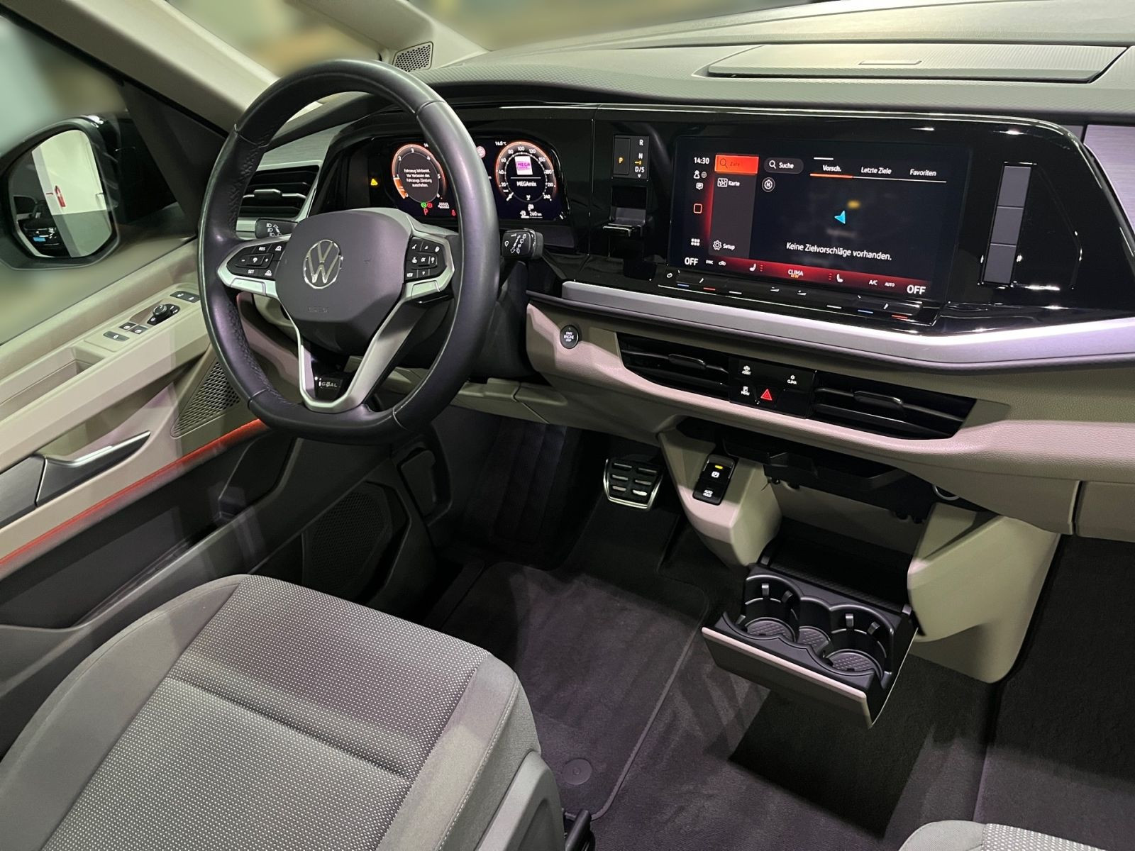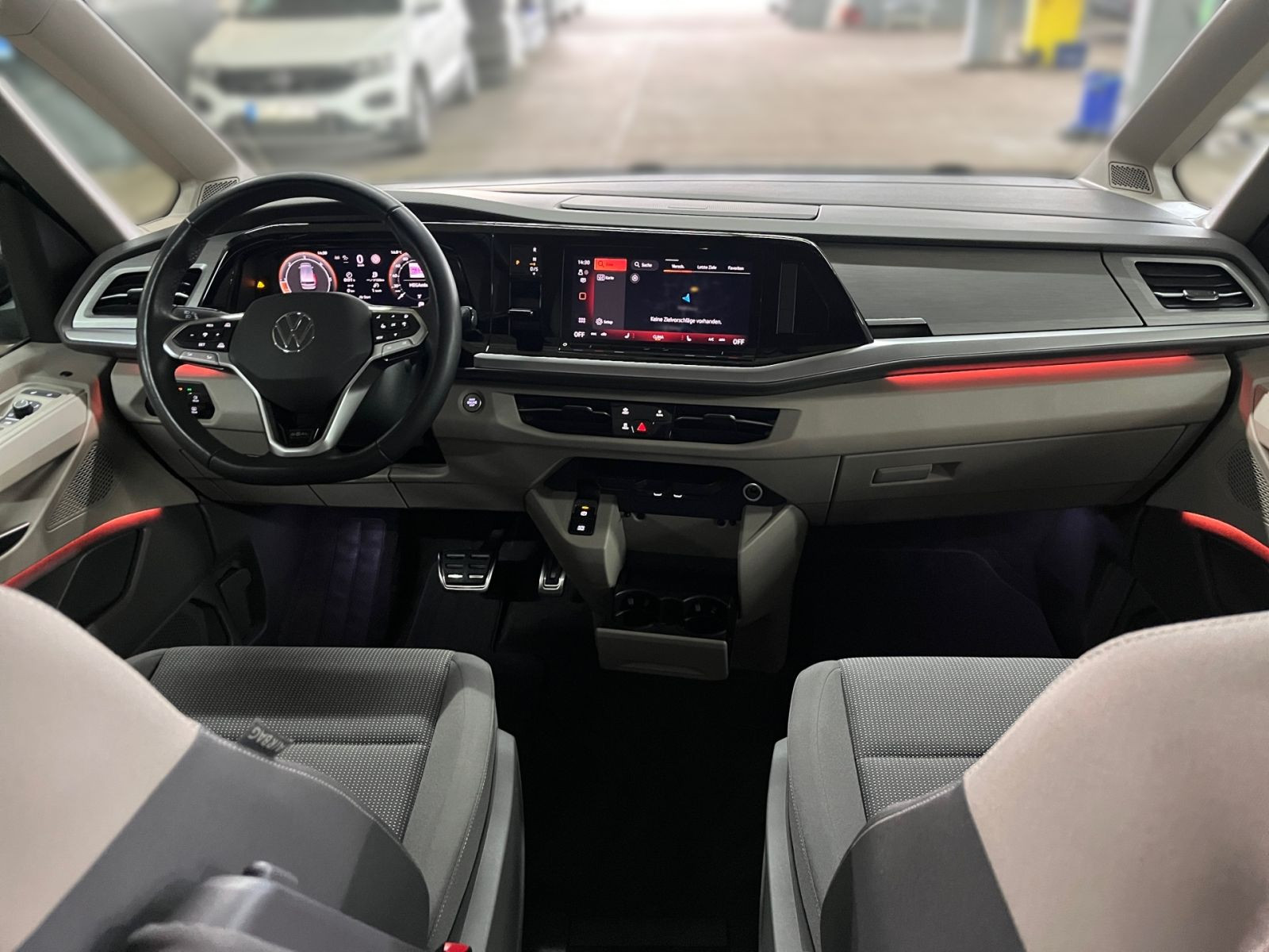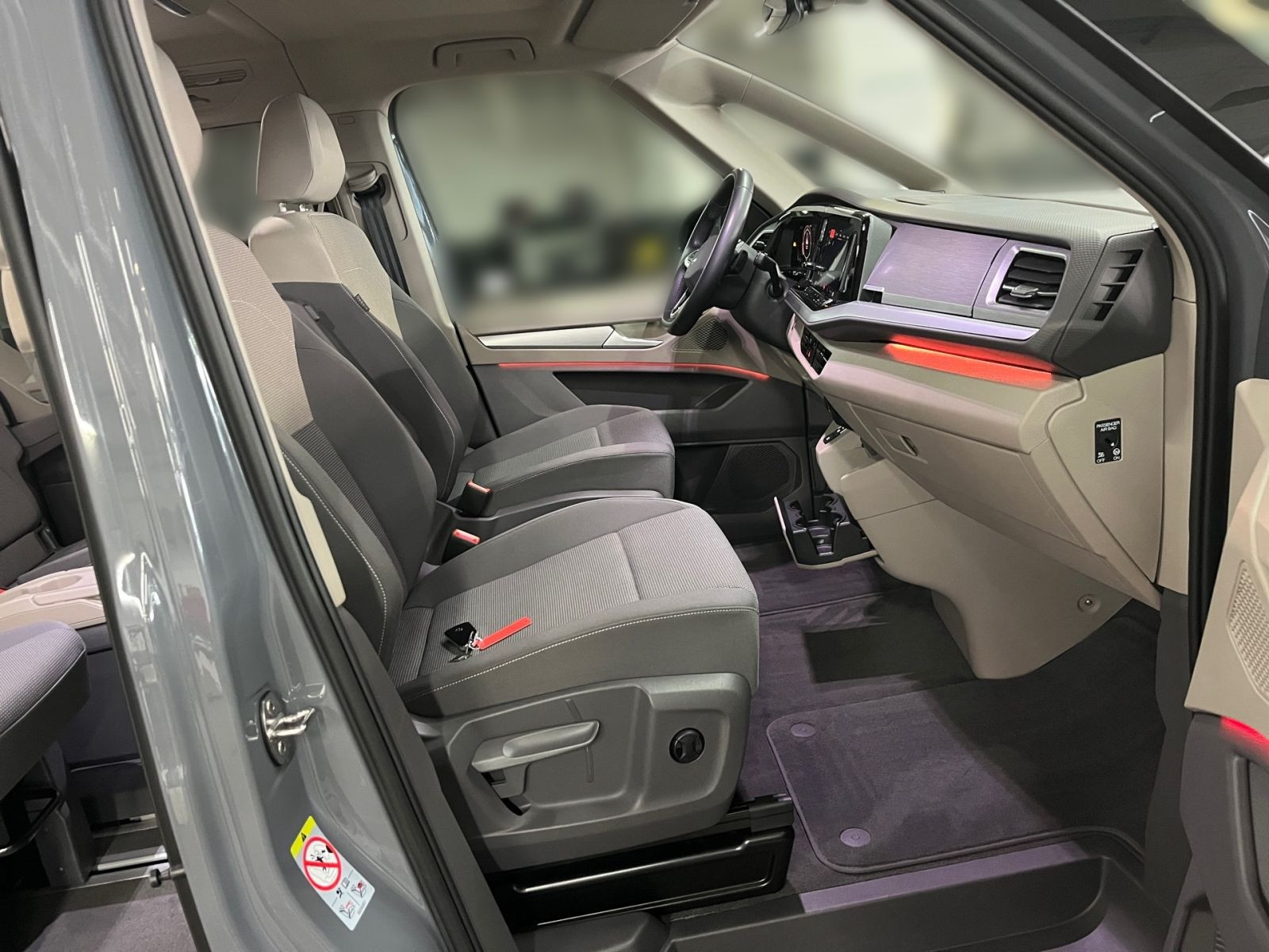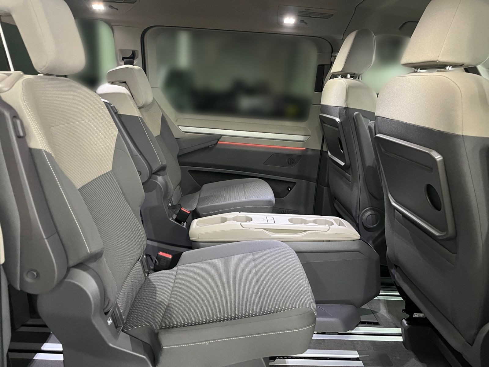 » Digital Cockpit Pro Assistenzsysteme: » Lichtpaket » Assistenzpaket Advanced » Fahrerassistent Travel Assist inklusive Spurhalteassistent Lane Assist und Emergency Assist » Spurwechselassistent Side Assist inklusive Blind Spot Detection, Ausparkassistent und Ausstiegswarner » Tagfahrlichtschaltung mit Assistenzfahrlicht sowie Coming home und Leaving home-Funktion » Fernlichtassistent Light Assist » Schlechtwetterlicht (inklusive Abbiegelicht) » Scheibenwischer-Intervallschaltung mit Regensensor für die Frontscheibenwischer » Anti-Blockier-System (ABS) » Fahrassistenz-System: Bremsassistent (HBA) » Notbremsassistent Front Assist mit Fußgänger- und Radfahrererkennung » Automatische Distanzregelung ACC stop & go » Verkehrszeichenerkennung » Ablenkungs- und Müdigkeitserkennung » Elektronisches Stabilisierungsprogramm und elektromechanischer Bremskraftverstärker » Reifenkontrollanzeige (nach EU Typprüfung) » Geschwindigkeitsbegrenzer und Intelligent Speed Assist » Proaktives Insassenschutzsystem Multimedia: » Navigationssystem Discover Pro mit 25,4 cm (10) Touch-Farbdisplay inklusive Streaming & Internet » Digitaler Radioempfang » 8 Lautsprecher ( passiv ) » Sprachassistent IDA und elektronische Sprachverstärkung » 2 USB-C-Schnittstellen vorn, 4 USB-C-Ladebuchsen im Fahrgastraum » Mobiltelefon-Schnittstelle » App-Connect inklusive App-Connect Wireless für Apple CarPlay und Android Auto Technik & Sicherheit: » 2 Einzelsitze in Fahrtrichtung in der 2. Sitzreihe » Bordwerkzeug, Wagenheber und Tire Mobility Set (in den Staufächern im Gepäckraum) » Diebstahl-Alarmanlage mit Innenraumüberwachung, Back-up-Horn und Abschleppschutz » Raucherausführung: Zigarettenanzünder und Wanderaschenbecher » Außenspiegel elektr. verstell-, heiz- und anklappbar » Außenspiegelgehäuse in Schwarz hochglanz » LED-Hauptscheinwerfer mit LED-Tagfahrlicht » LED-Rückleuchten » Notrufsystem eCall, Voraussetzung: Verfügbarkeit benötigter Mobilfunknetze » Servolenkung, geschwindigkeitsabhängig (Servotronic) » Abgaskonzept, WLTP3 M1, N1-I//EU6EA » Start/Stop-Anlage Motor » Parklenkassistent Park Assist und Einparkhilfe im Front- und Heckbereich » Airbags für Fahrer und Beifahrer, mit Beifahrer-Airbag-Deaktivierung » Seiten- und Kopfairbag für Fahrer und Beifahrer, Kopfairbags für die äußeren Sitzplätze hinten und Mittenairbag vorn » 3-Zonen Klimaanlage Air Care Climatronic mit zusätzlichem Bedienteil im Fahrgastraum (nicht beim Beach) » Fensterheber elektrisch vorn » Zentralverriegelung mit schlüssellosem Startsystem Keyless Start, ohne Safesicherung » Sonnenblenden mit Spiegel, beleuchtet, Tickethalter auf der Fahrerseite, mit Airbaglabel auf Sonnenblende und B-Säule » Wegfahrsperre (elektronisch) » Rückfahrkamera Rear View Interieur: » Bi-Color Sitzbezüge in Stoff, Dessin Ribella » 7 Sitzer-Paket = 2-2-3, mit 4 Armlehnen beidseitig sowie 2 Klapptischen an 2.SR » Armlehnen beidseitig der Sitze (abnehm- und umsteckbar) und Klapptische an der Rückseite der Sitze in der 2. Sitzreihe » 3 Einzelsitze in der 3. Sitzreihe » Standheizung für Frontscheibenenteisung und Erwärmung/Lüftung des Fahrerhauses mit Funkfernbedienung » Audiosystem Ready 2 Discover (Touchscreen-Farbdisplay 10, inkl. Streaming & Internet) » Multifunktions-Lederlenkrad mit Schaltwippen, beheizbar » Sitzheizung für beide Sitze im Fahrerhaus, links und rechts getrennt regelbar » Armlehnen für Fahrer- und Beifahrersitz, beidseitig, mit elektrischer Lendenwirbelstütze und Klapptisch » 2 Vorbereitungen für Armlehnen innenseitig in der 3. Sitzreihe » Sicherheitsinnenspiegel, automatisch abblendend Exterieur: » Scheiben im Fond abgedunkelt » Fenster in der Schiebetür, links » Fenster in der Schiebetür, rechts » 4 Leichtmetallräder Dundrod 6,5 J x 17, in Schwarz, Oberfläche glanzgedreht Leichtmetallräder Dundrod 6,5J x 17, in Schwarz, Oberfläche glanzgedreht » Schiebetür links mit Zuziehhilfe » Schiebetür rechts mit Zuziehhilfe » Umfeldbeleuchtung Heckklappe Sonstiges: » Innenfarbe: grau Garantie 60 Monate ab Tag der Erstzulassung, max. 150.000 km, je nachdem, was zuerst erreicht ist, Angaben zum Hersteller: Volkswagen AG, Volkswagen Nutzfahrzeuge, Mecklenheidestraße 74, 30419 Hannover, Deutschland, +49-5361-9-0, kundenbetreuung(at)volkswagen.de, Produktinformationen: https://www.volkswagen.de/idhub/content/dam/onehub_master/downloads/product-safety-cv/volkswagen-cv-sicherheitshinweise-de.pdf Die angegebenen Verbrauchsangaben beziehen sich auf WLTP-Werte. Zwischenverkauf und Irrtümer für dieses Angebot sind ausdrücklich vorbehalten. Ausschlaggebend sind einzig und allein die Vereinbarungen in der Auftragsbestätigung oder im Kaufvertrag. Den genauen Ausstattungsumfang, die genauen Kilometer und den Verkaufspreis erhalten Sie von unserem Verkaufspersonal. Bitte kontaktieren Sie uns. Finanzierung
