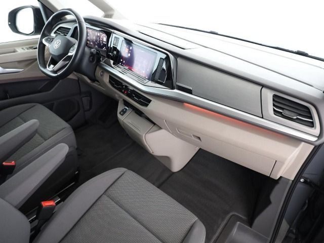» Digital Cockpit Pro Assistenzsysteme: » Lichtpaket» Assistenzpaket Advanced» Fahrerassistent Travel Assist inklusive Spurhalteassistent Lane Assist und Emergency Assist» Spurwechselassistent Side Assist inklusive Blind Spot Detection, Ausparkassistent und Ausstiegswarner» Tagfahrlichtschaltung mit Assistenzfahrlicht sowie Coming home und Leaving home-Funktion» Fernlichtassistent Light Assist» Schlechtwetterlicht (inklusive Abbiegelicht)» Scheibenwischer-Intervallschaltung mit Regensensor für die Frontscheibenwischer» Anti-Blockier-System (ABS)» Fahrassistenz-System: Bremsassistent (HBA)» Notbremsassistent Front Assist mit Fußgänger- und Radfahrererkennung» Automatische Distanzregelung ACC stop & go» Verkehrszeichenerkennung» Ablenkungs- und Müdigkeitserkennung» Elektronisches Stabilisierungsprogramm und elektromechanischer Bremskraftverstärker» Reifenkontrollanzeige (nach EU Typprüfung)» Geschwindigkeitsbegrenzer und Intelligent Speed Assist» Proaktives Insassenschutzsystem Multimedia: » Navigationssystem Discover Pro mit 25,4 cm (10) Touch-Farbdisplay inklusive Streaming & Internet» Digitaler Radioempfang» 8 Lautsprecher ( passiv )» Sprachassistent IDA und elektronische Sprachverstärkung» 2 USB-C-Schnittstellen vorn, 4 USB-C-Ladebuchsen im Fahrgastraum» Mobiltelefon-Schnittstelle» App-Connect inklusive App-Connect Wireless für Apple CarPlay und Android Auto Technik & Sicherheit: » 2 Einzelsitze in Fahrtrichtung in der 2. Sitzreihe» Bordwerkzeug, Wagenheber und Tire Mobility Set (in den Staufächern im Gepäckraum)» Diebstahl-Alarmanlage mit Innenraumüberwachung, Back-up-Horn und Abschleppschutz» Raucherausführung: Zigarettenanzünder und Wanderaschenbecher» Außenspiegel elektr. verstell-, heiz- und anklappbar» Außenspiegelgehäuse in Schwarz hochglanz» LED-Hauptscheinwerfer mit LED-Tagfahrlicht» LED-Rückleuchten» Notrufsystem eCall, Voraussetzung: Verfügbarkeit benötigter Mobilfunknetze» Servolenkung, geschwindigkeitsabhängig (Servotronic)» Abgaskonzept, WLTP3 M1, N1-I//EU6EA» Start/Stop-Anlage Motor» Parklenkassistent Park Assist und Einparkhilfe im Front- und Heckbereich» Airbags für Fahrer und Beifahrer, mit Beifahrer-Airbag-Deaktivierung» Seiten- und Kopfairbag für Fahrer und Beifahrer, Kopfairbags für die äußeren Sitzplätze hinten und Mittenairbag vorn» 3-Zonen Klimaanlage Air Care Climatronic mit zusätzlichem Bedienteil im Fahrgastraum (nicht beim Beach)» Fensterheber elektrisch vorn» Zentralverriegelung mit schlüssellosem Startsystem Keyless Start, ohne Safesicherung» Sonnenblenden mit Spiegel, beleuchtet, Tickethalter auf der Fahrerseite, mit Airbaglabel auf Sonnenblende und B-Säule» Wegfahrsperre (elektronisch)» Rückfahrkamera Rear View Interieur: » Bi-Color Sitzbezüge in Stoff, Dessin Ribella» 7 Sitzer-Paket = 2-2-3, mit 4 Armlehnen beidseitig sowie 2 Klapptischen an 2.SR» Armlehnen beidseitig der Sitze (abnehm- und umsteckbar) und Klapptische an der Rückseite der Sitze in der 2. Sitzreihe» 3 Einzelsitze in der 3. Sitzreihe» Standheizung für Frontscheibenenteisung und Erwärmung/Lüftung des Fahrerhauses mit Funkfernbedienung» Audiosystem Ready 2 Discover (Touchscreen-Farbdisplay 10, inkl. Streaming & Internet)» Multifunktions-Lederlenkrad mit Schaltwippen, beheizbar» Sitzheizung für beide Sitze im Fahrerhaus, links und rechts getrennt regelbar» Armlehnen für Fahrer- und Beifahrersitz, beidseitig, mit elektrischer Lendenwirbelstütze und Klapptisch» 2 Vorbereitungen für Armlehnen innenseitig in der 3. Sitzreihe» Sicherheitsinnenspiegel, automatisch abblendend Exterieur: » Scheiben im Fond abgedunkelt» Fenster in der Schiebetür, links» Fenster in der Schiebetür, rechts» 4 Leichtmetallräder Dundrod 6,5 J x 17, in Schwarz, Oberfläche glanzgedreht Leichtmetallräder Dundrod 6,5J x 17, in Schwarz, Oberfläche glanzgedreht» Schiebetür links mit Zuziehhilfe» Schiebetür rechts mit Zuziehhilfe» Umfeldbeleuchtung Heckklappe Sonstiges: » Innenfarbe: grau Garantie 24 Monate ab Tag der Erstzulassung, Angaben zum Hersteller: Volkswagen AG, Volkswagen Nutzfahrzeuge, Mecklenheidestraße 74, 30419 Hannover, Deutschland, +49-5361-9-0, kundenbetreuung(at)volkswagen.de, Produktinformationen: https://www.volkswagen.de/idhub/content/dam/onehub_master/downloads/product-safety-cv/volkswagen-cv-sicherheitshinweise-de.pdf Die angegebenen Verbrauchsangaben beziehen sich auf WLTP-Werte. Zwischenverkauf und Irrtümer für dieses Angebot sind ausdrücklich vorbehalten. Ausschlaggebend sind einzig und allein die Vereinbarungen in der Auftragsbestätigung oder im Kaufvertrag. Den genauen Ausstattungsumfang, die genauen Kilometer und den Verkaufspreis erhalten Sie von unserem Verkaufspersonal. Bitte kontaktieren Sie uns. Finanzierung