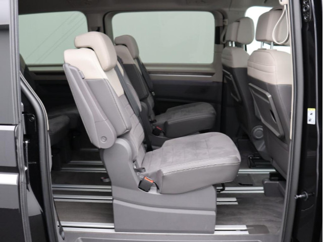 » Panoramaglasdach, abgedunkelt, zweiteilig » Anhängevorrichtung anklappbar, mit elektrischer Entriegelung (einschließlich Gespannstabilisierung) » Digital Cockpit Pro Assistenzsysteme: » Assistenzpaket Advanced » Fahrerassistent Travel Assist inklusive Spurhalteassistent Lane Assist und Emergency Assist » Spurwechselassistent Side Assist inklusive Blind Spot Detection, Ausparkassistent und Ausstiegswarner » Automatische Distanzregelung ACC stop & go » Tagfahrlichtschaltung mit Assistenzfahrlicht sowie Coming home und Leaving home-Funktion » Dynamische Fernlichtregulierung Dynamic Light Assist für LED-Matrix-Scheinwerfer » Schlechtwetterlicht (inklusive Abbiegelicht) » Scheibenwischer-Intervallschaltung mit Regensensor für die Frontscheibenwischer » Reifenkontrollanzeige (nach EU Typprüfung) » Geschwindigkeits-Regelanlage » Geschwindigkeitsbegrenzer und Intelligent Speed Assist » Anti-Blockier-System (ABS) » Fahrassistenz-System: Bremsassistent (HBA) » Notbremsassistent Front Assist mit Fußgänger- und Radfahrererkennung » Verkehrszeichenerkennung » Ablenkungs- und Müdigkeitserkennung » Elektronisches Stabilisierungsprogramm und elektromechanischer Bremskraftverstärker Multimedia: » Mobiltelefon-Schnittstelle Comfort mit induktiver Ladefunktion » Navigationssystem Discover Pro mit 25,4 cm (10) Touch-Farbdisplay inklusive Streaming & Internet » Digitaler Radioempfang » 8 Lautsprecher ( passiv ) » Sprachassistent IDA und elektronische Sprachverstärkung » 2 USB-C-Schnittstellen vorn, 4 USB-C-Ladebuchsen im Fahrgastraum » App-Connect inklusive App-Connect Wireless für Apple CarPlay und Android Auto Technik & Sicherheit: » Umgebungsansicht Area View inklusive Rückfahrkamera Rear View » Raucherausführung: Zigarettenanzünder und Wanderaschenbecher » Außenspiegelgehäuse in Schwarz hochglanz » IQ.LIGHT-LED-Matrix-Scheinwerfer mit LED-Tagfahrlicht » LED-Rückleuchten » Notrufsystem eCall, Voraussetzung: Verfügbarkeit benötigter Mobilfunknetze » Parklenkassistent Park Assist und Einparkhilfe im Front- und Heckbereich » Airbags für Fahrer und Beifahrer, mit Beifahrer-Airbag-Deaktivierung » Seiten- und Kopfairbag für Fahrer und Beifahrer, Kopfairbags für die äußeren Sitzplätze hinten und Mittenairbag vorn » 3-Zonen Klimaanlage Air Care Climatronic mit zusätzlichem Bedienteil im Fahrgastraum (nicht beim Beach) » Zentralverriegelung mit schlüssellosem Startsystem Keyless Start, mit Safesicherung » Sonnenblenden mit Spiegel, beleuchtet, Tickethalter auf der Fahrerseite, mit Airbaglabel auf Sonnenblende und B-Säule » Diebstahl-Alarmanlage mit Innenraumüberwachung, Back-up-Horn und Abschleppschutz » Bordwerkzeug und Tire Mobility Set (in den Staufächern im Gepäckraum) » Servolenkung, geschwindigkeitsabhängig (Servotronic) » Abgaskonzept, WLTP3 M1, N1-I//EU6EA » Start/Stop-Anlage Motor Interieur: » Bi-Color Sitzbezüge, Sitzmittelbahnen in Mikrovlies ArtVelours, Sitzwangen in Glattlederoptik » 3 Einzelsitze in der 3. Sitzreihe » Audiosystem Ready 2 Discover (Touchscreen-Farbdisplay 10, inkl. Streaming & Internet) » Sitzheizung für beide Sitze im Fahrerhaus, links und rechts getrennt regelbar » Armlehnen für Fahrer- und Beifahrersitz, beidseitig, mit elektrischer Lendenwirbelstütze und Klapptisch » Sicherheitsinnenspiegel, automatisch abblendend » Multifunktions-Lederlenkrad mit Schaltwippen Exterieur: » Deep Black Perleffekt » Ganzjahresreifen 235/50 R18 101H xl » Scheiben im Fond stark abgedunkelt » 4 Leichtmetallräder Toshima 7,5 J x 18, in Anthrazit Leichtmetallräder Toshima 7,5J x 18, in Anthrazit » Farbe Deep Black Perleffekt » Fenster in der Schiebetür, links » Fenster in der Schiebetür, rechts » Schiebetür links, elektrisch » Schiebetür rechts, elektrisch » Umfeldbeleuchtung Heckklappe Sonstiges: » Innenfarbe: grau » Heckklappe mit elektrischer Öffnung und Schließung Heckklappe elektrisch (öffnend/schließend) » Servoschließung Heckklappe » Lange Bodenschienen bis Fahrer- und Beifahrersitz als Vorbereitung für den Multifunktionstisch/die Mittelkonsole » Parkpaket Advanced Garantie 24 Monate ab Tag der Erstzulassung, Angaben zum Hersteller: Volkswagen AG, Volkswagen Nutzfahrzeuge, Mecklenheidestraße 74, 30419 Hannover, Deutschland, +49-5361-9-0, kundenbetreuung(at)volkswagen.de, Produktinformationen: https://www.volkswagen.de/idhub/content/dam/onehub_master/downloads/product-safety-cv/volkswagen-cv-sicherheitshinweise-de.pdf Die angegebenen Verbrauchsangaben beziehen sich auf WLTP-Werte. Zwischenverkauf und Irrtümer für dieses Angebot sind ausdrücklich vorbehalten. Ausschlaggebend sind einzig und allein die Vereinbarungen in der Auftragsbestätigung oder im Kaufvertrag. Den genauen Ausstattungsumfang, die genauen Kilometer und den Verkaufspreis erhalten Sie von unserem Verkaufspersonal. Bitte kontaktieren Sie uns. Finanzierung