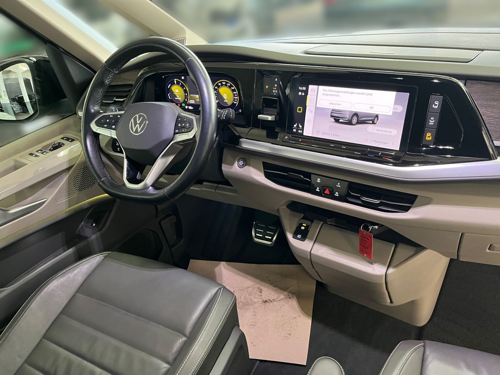 » Anhängevorrichtung anklappbar, mit elektrischer Entriegelung (einschließlich Gespannstabilisierung) » Digital Cockpit Pro Assistenzsysteme: » Automatische Distanzregelung ACC stop & go mit Geschwindigkeitsbegrenzer inklusive Car2X » Automatische Distanzregelung ACC stop & go mit Geschwindigkeitsbegrenzer » Tagfahrlichtschaltung mit Assistenzfahrlicht sowie Coming home und Leaving home-Funktion » Dynamische Fernlichtregulierung Dynamic Light Assist für LED-Matrix-Scheinwerfer » Schlechtwetterlicht (inklusive Abbiegelicht) » Scheibenwischer-Intervallschaltung mit Regensensor für die Frontscheibenwischer » Reifenkontrollanzeige (nach EU Typprüfung) » Anti-Blockier-System (ABS) » Fahrassistenz-System: Bremsassistent (HBA) » Notbremsassistent Front Assist mit Fußgänger- und Radfahrererkennung » Verkehrszeichenerkennung » Müdigkeitserkennung » Elektronisches Stabilisierungsprogramm und elektromechanischer Bremskraftverstärker » Spurhalteassistent Lane Assist Multimedia: » Mobiltelefon-Schnittstelle Comfort mit induktiver Ladefunktion » Navigationssystem Discover Media mit 25,4 cm (10) Touch-Farbdisplay inklusive Streaming & Internet » Digitaler Radioempfang » Audiosystem Ready 2 Discover (inkl. Streaming & Internet) » 8 Lautsprecher ( passiv ) » Sprachbedienung » 2 USB-C-Schnittstellen vorn, 4 USB-C-Ladebuchsen im Fahrgastraum » App-Connect inklusive App-Connect Wireless für Apple CarPlay und Android Auto Technik & Sicherheit: » Bordwerkzeug, Wagenheber und Tire Mobility Set (in den Staufächern im Gepäckraum) » Zentralverriegelung mit schlüssellosem Schließ- und Startsystem Keyless Advanced mit Safesicherung » Außenspiegel elektr. verstell-, heiz- und anklappbar » Außenspiegelgehäuse in Schwarz hochglanz » IQ.LIGHT-LED-Matrix-Scheinwerfer mit LED-Tagfahrlicht » LED-Rückleuchten » Notrufsystem eCall » Parklenkassistent Park Assist und Einparkhilfe im Front- und Heckbereich » Airbags für Fahrer und Beifahrer, mit Beifahrer-Airbag-Deaktivierung » Seiten- und Kopfairbag für Fahrer und Beifahrer, Kopfairbags für die äußeren Sitzplätze hinten und Mittenairbag vorn » 3-Zonen Klimaanlage Air Care Climatronic mit zusätzlichem Bedienteil im Fahrgastraum (nicht beim Beach) » Isofix-Aufnahmen für Kindersitz an Rücksitz » Fensterheber elektrisch vorn » Sonnenblenden mit Spiegel, beleuchtet, Tickethalter auf der Fahrerseite, mit Airbaglabel auf Sonnenblende und B-Säule » Diebstahl-Alarmanlage mit Innenraumüberwachung, Back-up-Horn und Abschleppschutz » Rückfahrkamera Rear View » Servolenkung, geschwindigkeitsabhängig (Servotronic) » Start/Stop-Anlage Motor Interieur: » 3 Einzelsitze in der 3. Sitzreihe » Bi-Color Sitzbezüge, Sitzmittelbahnen in Leder Savona, Sitzwangen in Glattlederoptik » Standheizung für Frontscheibenenteisung und Erwärmung/Lüftung des Fahrerhauses mit Funkfernbedienung » Sitzheizung für beide Sitze im Fahrerhaus, links und rechts getrennt regelbar » Armlehnen für Fahrer- und Beifahrersitz, beidseitig, mit elektrischer Lendenwirbelstütze und Klapptisch » Sicherheitsinnenspiegel, automatisch abblendend » Multifunktions-Lederlenkrad mit Schaltwippen Exterieur: » Scheiben im Fond abgedunkelt » elektrische Schiebetür links und rechts mit Easy Open-Funktion » Schiebetür links, elektrisch mit easy open- und easy close Funktion » Schiebetür rechts, elektrisch mit easy open- und easy close Funktion » Reflexsilber Metallic » Farbe Reflexsilber Metallic » Fenster in der Schiebetür, links » Fenster in der Schiebetür, rechts » 4 Leichtmetallräder Dundrod 6,5 J x 17, in Schwarz, Oberfläche glanzgedreht Sonstiges: » Innenfarbe: grau » Multifunktionstisch/Mittelkonsole mit 3 Becherhaltern, im ganzen Fahrzeug verschiebbar » 7-Sitzer-Paket = 2-2-3, Vis-a-Vis » 2 Einzelsitze entgegen der Fahrtrichtung (Vis-a-Vis-Ansicht) in der 2. Sitzreihe » Ladekabel für Wechselstrom-Ladestation (Mode 3) » Multivan » Style » Chromleisten an den Seiten und am Heck » Leiste zwischen den Scheinwerfern hinterleuchtet » Leuchtweitenregulierung, dynamisch, mit dynamischem Kurvenfahrlicht » Blinkleuchten LED in Außenspiegel integriert Angaben zum Hersteller: Volkswagen AG, Volkswagen Nutzfahrzeuge, Mecklenheidestraße 74, 30419 Hannover, Deutschland, +49-5361-9-0, kundenbetreuung(at)volkswagen.de, Produktinformationen: https://www.volkswagen.de/idhub/content/dam/onehub_master/downloads/product-safety-cv/volkswagen-cv-sicherheitshinweise-de.pdf Die angegebenen Verbrauchsangaben beziehen sich auf WLTP-Werte. Zwischenverkauf und Irrtümer für dieses Angebot sind ausdrücklich vorbehalten. Ausschlaggebend sind einzig und allein die Vereinbarungen in der Auftragsbestätigung oder im Kaufvertrag. Den genauen Ausstattungsumfang, die genauen Kilometer und den Verkaufspreis erhalten Sie von unserem Verkaufspersonal. Bitte kontaktieren Sie uns. Finanzierung