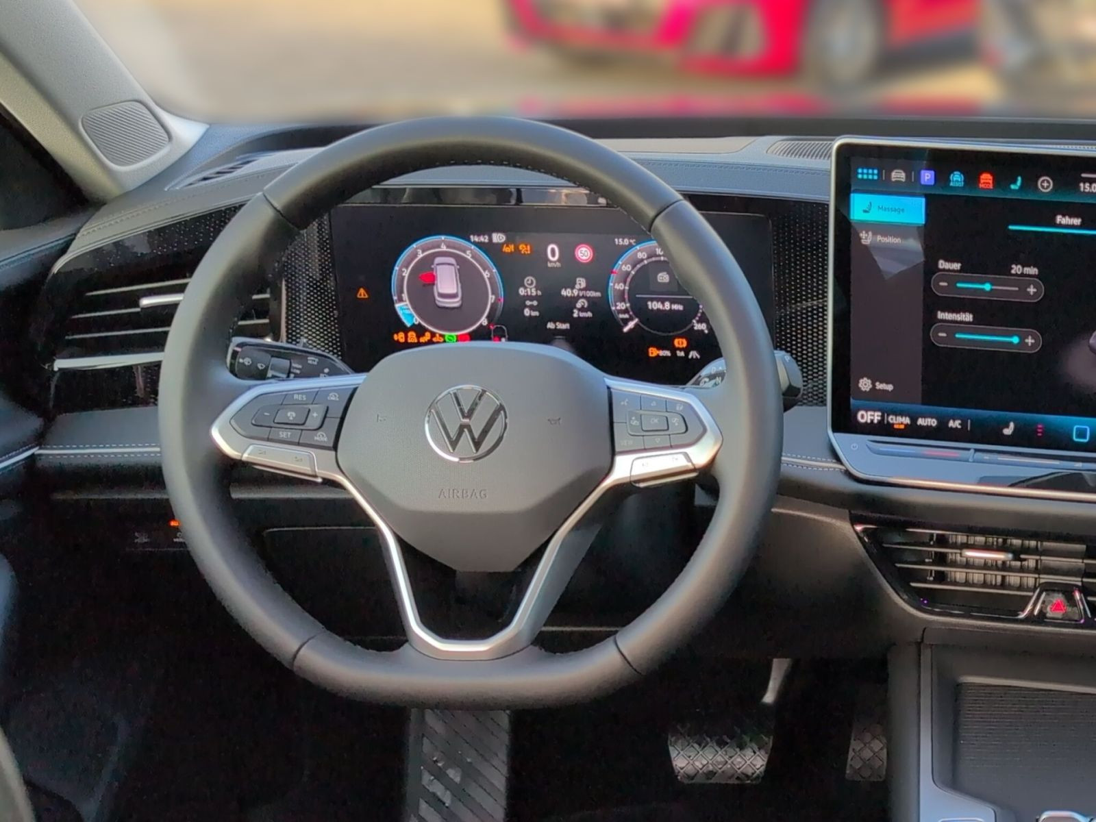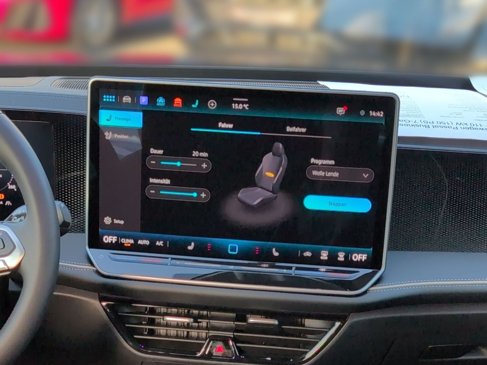 » Vordersitze mit Massagefunktion» Digital Cockpit Pro, mehrfarbig, verschiedene Info-Profile wählbar» Head-up-Display» Hersteller-Anschlussgarantie 3 Jahre, max. 100.000 km Assistenzsysteme: » Elektronisches Stabilisierungsprogramm und elektromechanischer Bremskraftverstärker» Adaptive Fahrwerksregelung DCC Pro inkl. Fahrprofilauswahl» Fahrassistent Travel Assist, Spurhalteassistent Lane Assist und Emergency Assist» Außenspiegel elektrisch anklapp- und beheizbar, auf Fahrerseite abblendend, Beifahrerspiegelabsenkung und Memory» Spurwechselassistent Side Assist, Ausparkassistent und Ausstiegswarnung» Reifenkontrollanzeige» Proaktives Insassenschutzsystem» Dynamischer Fernlichtassistent Dynamic Light Assist» IQ.LIGHT - LED-Matrix-Scheinwerfer mit Fernlicht Plus, Kurvenfahrlicht und dynamischer Blinkleuchte» Notbremsassistent Front Assist mit Fußgänger- und Radfahrererkennung» Regensensor» Leuchtweitenregulierung dynamisch, mit dynamischem Kurvenfahrlicht» Automatische Distanzregelung ACC stop & go» Abbiege- und Schlechtwetterlicht» Ablenkungs- und Müdigkeitserkennung» Geschwindigkeitsbegrenzer mit vorausschauender Regelung» Mit Multifunktionskamera» Verkehrszeichenerkennung» Berganfahrassistent Multimedia: » Navigationssystem» Diversity-Antenne für FM-Empfang» App-Connect Wireless für Apple CarPlay und Android Auto» Telefonschnittstelle Comfort mit induktiver Ladefunktion» Sprachassistent IDA und elektronische Sprachverstärkung» Digitaler Radioempfang DAB+» 2 USB-C-Schnittstellen vorn, 2 USB-C-Ladebuchsen an der Mittelkonsole hinten, Ladeleistung bis zu 45 W Technik & Sicherheit: » IQ.LIGHT - LED-Matrix-Scheinwerfer» Mit Elektrische Lenksäulenverriegelung (ELV)» Tire Mobility Set: 12-Volt-Kompressor und Reifendichtmittel» Progressivlenkung» ISOFIX-Halteösen für Kindersitze auf den äußeren Rücksitzen sowie auf dem Beifahrersitz, i-Size-kompatibel» Airbag für Fahrer und Beifahrer, mit Beifahrerairbag-Deaktivierung, inkl. Knie-Airbag auf der Fahrerseite» Abgaskonzept, WLTP3 M1, N1-I//EU6EB» Kopfairbags vorn und hinten, Seitenairbags vorn, Center-Airbag» Außenspiegelgehäuse in Wagenfarbe» Wegfahrsperre elektronisch» Start-Stopp-System mit Bremsenergie-Rückgewinnung» Parkassistent Park Assist Plus inkl. Einparkhilfe» LED-Rückleuchten mit dynamischer Blinkleuchte, Volkswagen-Logo beleuchtet, mit Chromleiste» Fahrlichtschaltung automatisch, mit LED-Tagfahrlicht sowie Begrüßungsund Verabschiedungslicht» 7-Gang-Automatikgetriebe oder DSG Beachtung: Fam. EDF» Umgebungsansicht Area View inkl. Rückfahrkamera Rear View» Klimaanlage Air Care Climatronic mit Aktiv-Kombifilter, Bedienelementen hinten und 3-Zonen-Temperaturregelung» Notruf-Service, Laufzeit 10 Jahre ab Erstauslieferung, Voraussetzung: Verfügbarkeit benötigter Mobilfunknetze Interieur: » Multifunktionslenkrad in Leder, beheizbar, mit Schaltwippen» Gepäckraumboden in 2 Höhen einstellbar, für ebene Ladefläche, mit Fixierstange» ergoActive-Sitze vorn mit elektrischer Einstellung, Memory, Komforteinstieg und verschiebbarer Oberschenkelauflage» Rücksitzlehne asymmetrisch geteilt umklappbar, mit Durchlademöglichkeit» Gepäckraumabdeckung auszieh- und herausnehmbar» Vordersitze beheizbar, Sitzfläche und -lehne getrennt einstellbar» Innenspiegel automatisch abblendend» Mittelarmlehne hinten» Lendenwirbelstützen vorn pneumatisch einstellbar» Sitzmittelbahnen der Vordersitze und der äußeren Rücksitzplätze in Mikrovlies ArtVelours Eco Exterieur: » Bologna 7,5 J x 17 in Schwarz / glanzgedreht, Airstop®-Reifen 215/55 R 17» Dachreling silber eloxiert» Seitenscheiben hinten und Heckscheibe abgedunkelt» 4 Leichtmetallräder Bologna 7,5 J x 17 in Schwarz, Oberfläche glanzgedreht Sonstiges: » Soul-Schwarz/Soul-Schwarz/Schwarz/ Ceramique» Assistenzpaket IQ.DRIVE» Infotainment-Paket Discover Pro Max» Business Premium-Paket» Farbe Grenadillschwarz Metallic» Anschlussgarantie, Laufzeit 3 Jahre im Anschluss an die Herstellergarantie, maximale Gesamtlaufleistung 100.000 km» Hybrid-Antriebssystem MHEV» Netztrennwand» Abbiegebremsfunktion und Ausweichunterstützung Garantie 60 Monate ab Tag der Erstzulassung, Angaben zum Hersteller: Volkswagen AG, Volkswagen, Berliner Ring 2, 38440 Wolfsburg, Deutschland, +49-5361-9-0, kundenbetreuung(at)volkswagen.de, Produktinformationen: https://www.volkswagen.de/idhub/content/dam/onehub_master/downloads/product-safety/volkswagen-sicherheitshinweise-de.pdf Die angegebenen Verbrauchsangaben beziehen sich auf WLTP-Werte. Zwischenverkauf und Irrtümer für dieses Angebot sind ausdrücklich vorbehalten. Ausschlaggebend sind einzig und allein die Vereinbarungen in der Auftragsbestätigung oder im Kaufvertrag. Den genauen Ausstattungsumfang, die genauen Kilometer und den Verkaufspreis erhalten Sie von unserem Verkaufspersonal. Bitte kontaktieren Sie uns. Finanzierung