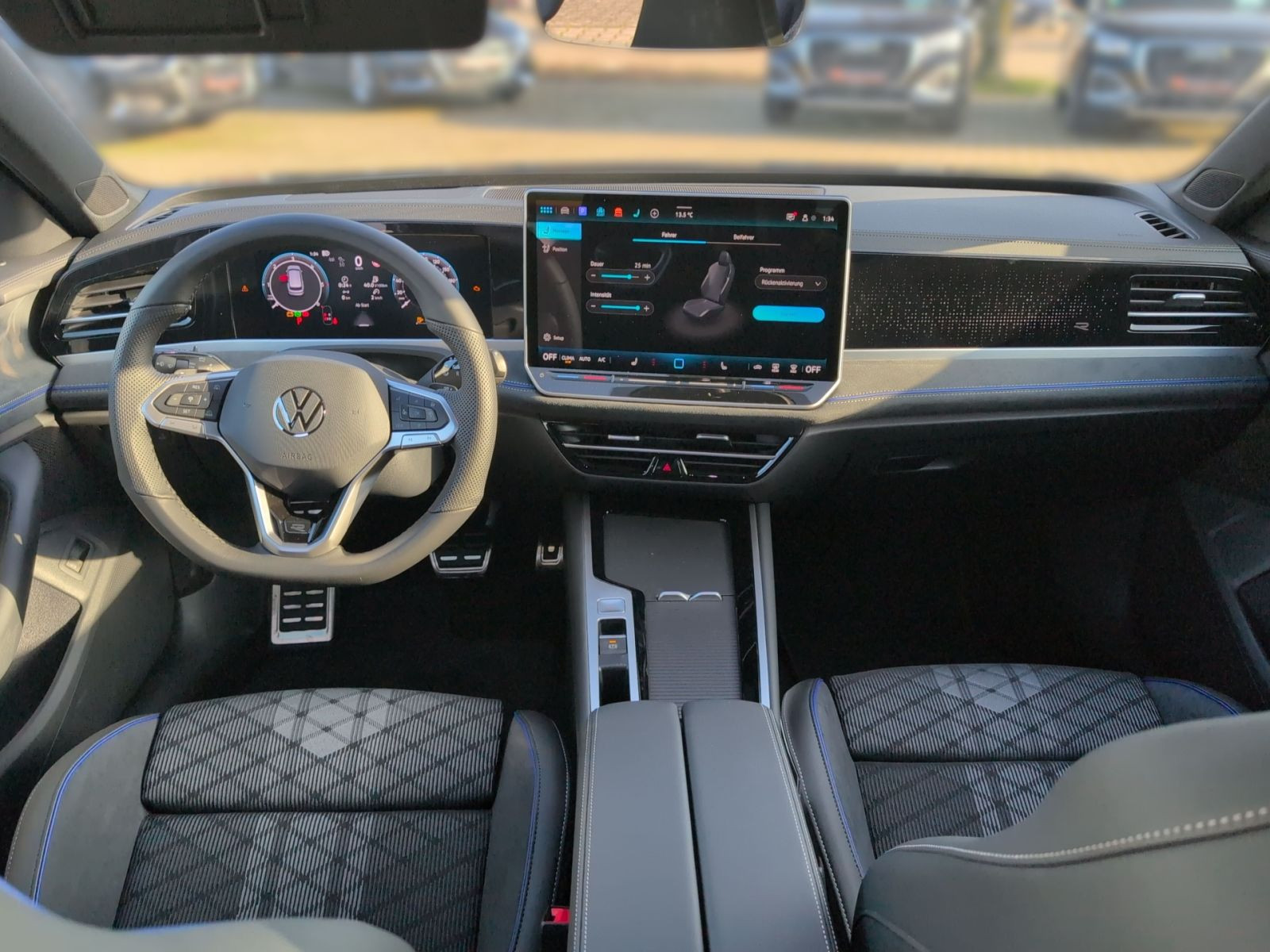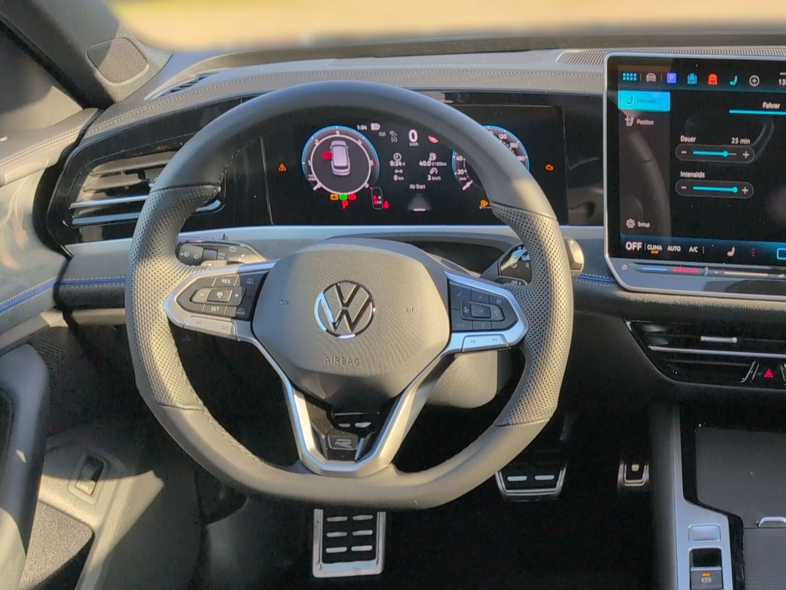 » Digital Cockpit Pro, mehrfarbig, verschiedene Info-Profile wählbar» Head-up-Display» Vordersitze mit Massageprogrammen Assistenzsysteme: » Elektronisches Stabilisierungsprogramm und elektromechanischer Bremskraftverstärker» Adaptive Fahrwerksregelung DCC Pro inkl. Fahrprofilauswahl» Fahrassistent Travel Assist, Spurhalteassistent Lane Assist und Emergency Assist» Außenspiegel elektrisch anklapp- und beheizbar, auf Fahrerseite abblendend, Beifahrerspiegelabsenkung und Memory» Spurwechselassistent Side Assist, Ausparkassistent und Ausstiegswarnung» Reifenkontrollanzeige» Proaktives Insassenschutzsystem» Dynamischer Fernlichtassistent Dynamic Light Assist» IQ.LIGHT - LED-Matrix-Scheinwerfer mit Fernlicht Plus, Kurvenfahrlicht und dynamischer Blinkleuchte» Notbremsassistent Front Assist mit Fußgänger- und Radfahrererkennung» Regensensor» Leuchtweitenregulierung dynamisch, mit dynamischem Kurvenfahrlicht» Automatische Distanzregelung ACC stop & go» Abbiege- und Schlechtwetterlicht» Ablenkungs- und Müdigkeitserkennung» Memory-Funktion für Parkassistent» Geschwindigkeitsbegrenzer mit vorausschauender Regelung» Mit Multifunktionskamera» Verkehrszeichenerkennung» Berganfahrassistent Multimedia: » Navigationssystem» Diversity-Antenne für FM-Empfang» App-Connect Wireless für Apple CarPlay und Android Auto» Telefonschnittstelle Comfort mit induktiver Ladefunktion» Sprachassistent IDA und elektronische Sprachverstärkung» Digitaler Radioempfang DAB+» 2 USB-C-Schnittstellen vorn, 2 USB-C-Ladebuchsen an der Mittelkonsole hinten, Ladeleistung bis zu 45 W Technik & Sicherheit: » Mit Elektrische Lenksäulenverriegelung (ELV)» Progressivlenkung» Stoßfänger im R-Line-Styling» ISOFIX-Halteösen für Kindersitze auf den äußeren Rücksitzen sowie auf dem Beifahrersitz, i-Size-kompatibel» Schlüsselloses Schließ- und Startsystem Keyless Access, mit berührungsloser Ver- und Entriegelung, SAFE-Verriegelung» Airbag für Fahrer und Beifahrer, mit Beifahrerairbag-Deaktivierung, inkl. Knie-Airbag auf der Fahrerseite» Abgaskonzept, WLTP3 M1, N1-I//EU6EB» Kopfairbags vorn und hinten, Seitenairbags vorn, Center-Airbag» Außenspiegelgehäuse in Schwarz lackiert» Diebstahlwarnanlage mit Innenraumüberwachung, Back-up-Horn und Abschleppschutz» Start-Stopp-System mit Bremsenergie-Rückgewinnung» Parkassistent Park Assist Pro, inkl. Einparkhilfe» LED-Rückleuchten mit dynamischer Blinkleuchte, Volkswagen-Logo beleuchtet, mit Chromleiste» Fahrlichtschaltung automatisch, mit LED-Tagfahrlicht sowie Begrüßungsund Verabschiedungslicht» 7-Gang-Automatikgetriebe oder DSG Beachtung: Fam. EDF» Umgebungsansicht Area View inkl. Rückfahrkamera Rear View» Klimaanlage Air Care Climatronic mit Aktiv-Kombifilter, Bedienelementen hinten und 3-Zonen-Temperaturregelung» Notruf-Service, Laufzeit 10 Jahre ab Erstauslieferung, Voraussetzung: Verfügbarkeit benötigter Mobilfunknetze» Sportfahrwerk, Karosserie tiefergelegt Interieur: » Multifunktions-Sportlenkrad in Leder, beheizbar, mit Schaltwippen» Gepäckraumboden in 2 Höhen einstellbar, für ebene Ladefläche, mit Fixierstange» ergoActive-Sitze vorn mit elektrischer Einstellung, Memory, Komforteinstieg und verschiebbarer Oberschenkelauflage» Rücksitzlehne asymmetrisch geteilt umklappbar, mit Durchlademöglichkeit» Sonnenschutzrollo an den Türscheiben hinten» Vordersitze beheizbar, Sitzfläche und -lehne getrennt einstellbar» Innenspiegel automatisch abblendend» Mittelarmlehne hinten verschiebbar, mit Becherhaltern und Ablagemöglichkeit für Handy/Tablet» Lendenwirbelstützen vorn pneumatisch einstellbar» Sitzmittelbahnen der Vordersitze und der äußeren Rücksitzplätze in Stoff R-Line» Sportsitze vorn Exterieur: » R-Line Black Style» Dachreling schwarz hochglänzend» Gepäckraumabdeckung auszieh- und herausnehmbar, mit elektrischer Öffnung» Easy Open & Close - Heckklappe mit sensorgesteuerter Öffnung und Schließung, mit Fernentriegelung» Einstiegsleisten vorn in Aluminium, mit R-Line-Logo» R-Line» 4 Leichtmetallräder York 8 J x 18 in Schwarz, Volkswagen R Garantie 60 Monate ab Tag der Erstzulassung, Angaben zum Hersteller: Volkswagen AG, Volkswagen, Berliner Ring 2, 38440 Wolfsburg, Deutschland, +49-5361-9-0, kundenbetreuung(at)volkswagen.de, Produktinformationen: https://www.volkswagen.de/idhub/content/dam/onehub_master/downloads/product-safety/volkswagen-sicherheitshinweise-de.pdf Die angegebenen Verbrauchsangaben beziehen sich auf WLTP-Werte. Zwischenverkauf und Irrtümer für dieses Angebot sind ausdrücklich vorbehalten. Ausschlaggebend sind einzig und allein die Vereinbarungen in der Auftragsbestätigung oder im Kaufvertrag. Den genauen Ausstattungsumfang, die genauen Kilometer und den Verkaufspreis erhalten Sie von unserem Verkaufspersonal. Bitte kontaktieren Sie uns. Finanzierung