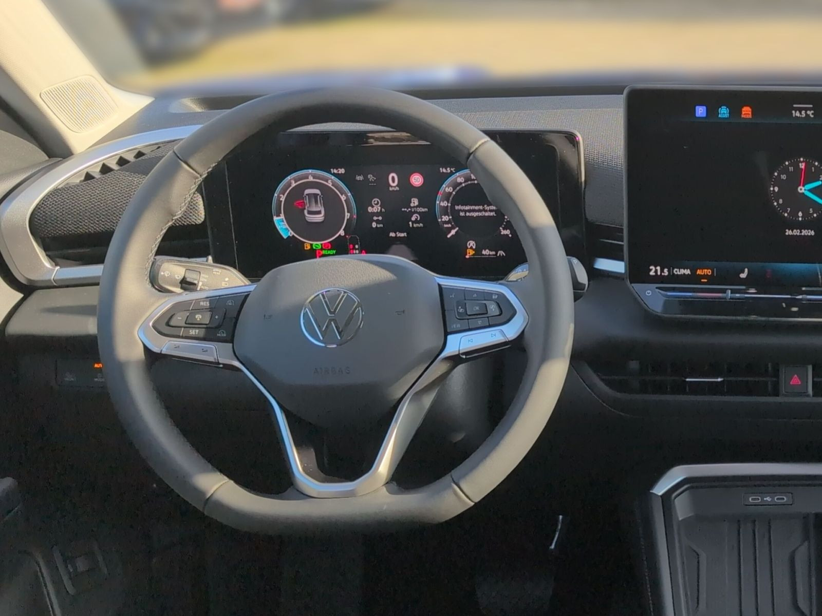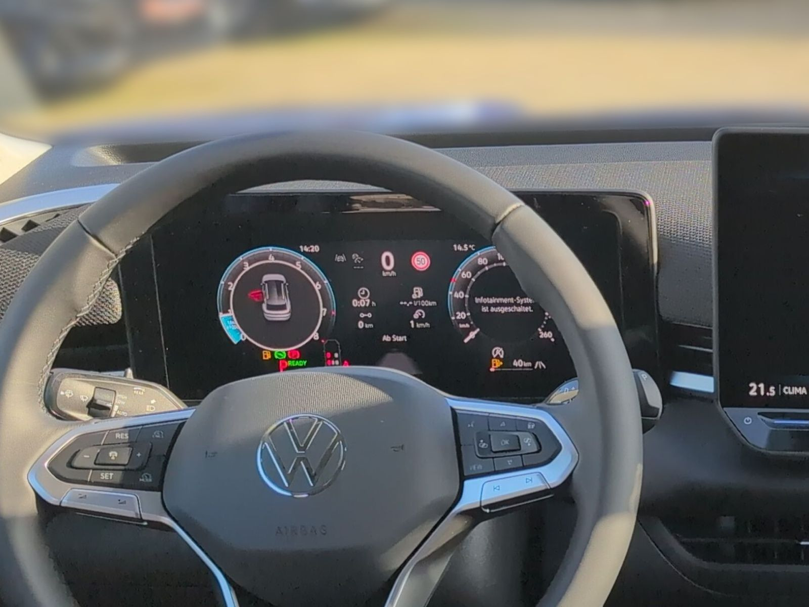 » Vordersitze mit Massagefunktion » Digital Cockpit Pro, mehrfarbig, verschiedene Info-Profile wählbar Assistenzsysteme: » Elektronisches Stabilisierungsprogramm und elektromechanischer Bremskraftverstärker » Spurhalteassistent Lane Assist » Spurwechselassistent Side Assist, Ausparkassistent und Ausstiegswarnung » Reifenkontrollanzeige » Dynamischer Fernlichtassistent Dynamic Light Assist » Notbremsassistent Front Assist mit Fußgänger- und Radfahrererkennung » Regensensor » Leuchtweitenregulierung dynamisch, mit dynamischem Kurvenfahrlicht » Automatische Distanzregelung ACC » Abbiege- und Schlechtwetterlicht » Ablenkungs- und Müdigkeitserkennung » Geschwindigkeitsbegrenzer mit vorausschauender Regelung » Mit Multifunktionskamera » Verkehrszeichenerkennung » Berganfahrassistent Multimedia: » Navigationssystem » 6 Lautsprecher » Diversity-Antenne für FM-Empfang » App-Connect Wireless für Apple CarPlay und Android Auto » Telefonschnittstelle Comfort mit induktiver Ladefunktion » Sprachbedienung » Digitaler Radioempfang DAB+ Technik & Sicherheit: » Tire Mobility Set: 12-Volt-Kompressor und Reifendichtmittel » Servolenkung elektromechanisch, geschwindigkeitsabhängig geregelt » ISOFIX-Halteösen für Kindersitze auf den äußeren Rücksitzen sowie auf dem Beifahrersitz, i-Size-kompatibel » Fensterheber elektrisch » Airbag für Fahrer und Beifahrer, mit Beifahrerairbag-Deaktivierung » Abgaskonzept, WLTP3 M1, N1-I//EU6EB » Kopfairbags vorn und hinten, Seitenairbags vorn, Center-Airbag » Außenspiegel elektrisch einstell-, anklapp- und beheizbar, mit Beifahrerspiegelabsenkung » Diebstahlwarnanlage mit Innenraumüberwachung, Back-up-Horn und Abschleppschutz » Start-Stopp-System mit Bremsenergie-Rückgewinnung » Parkassistent Park Assist Plus inkl. Einparkhilfe » IQ.LIGHT - LED-Matrix-Scheinwerfer mit Kurvenfahrlicht » LED-Rückleuchten mit dynamischer Blinkleuchte » Fahrlichtschaltung automatisch, mit LED-Tagfahrlicht sowie Coming homeund Leaving home-Funktion » 7-Gang-Automatikgetriebe oder DSG Beachtung: Fam. EDF » Rückfahrkamera Rear View » Klimaanlage Air Care Climatronic mit Aktiv-Kombifilter, Bedienelementen hinten und 3-Zonen-Temperaturregelung » Notruf-Service, Laufzeit 10 Jahre ab Erstauslieferung, Voraussetzung: Verfügbarkeit benötigter Mobilfunknetze Interieur: » Multifunktionslenkrad in Leder, beheizbar, mit Schaltwippen » Gepäckraumboden in 2 Höhen einstellbar, für ebene Ladefläche » Beifahrersitzlehne komplett umklappbar » Rücksitzbank ungeteilt, Lehne asymmetrisch umklappbar, mit Mittelarmlehne » Vordersitze beheizbar » Innenspiegel automatisch abblendend » Mittelarmlehne vorn » Lendenwirbelstützen vorn pneumatisch einstellbar » Sitzmittelbahnen der Vordersitze und der äußeren Rücksitzplätze in Mikrovlies ArtVelours Eco Exterieur: » Seitenscheiben hinten und Heckscheibe abgedunkelt » Easy Open & Close - Heckklappe mit sensorgesteuerter Öffnung und Schließung, mit Fernentriegelung » Dachreling silber eloxiert » 4 Leichtmetallräder Vancouver 8 J x 19 in Schwarz, Oberfläche glanzgedreht Sonstiges: » Soul-Schwarz/Soul-Schwarz/Schwarz/ Ceramique » Lichtpaket IQ.LIGHT » Infotainment-Paket Discover » Farbe Celestial Blue Metallic » Hybrid-Antriebssystem MHEV » Fahrprofilauswahl » Abbiegebremsfunktion und Ausweichunterstützung » Zierleisten in Pyritsilber matt » Fahrzeugklassen-Differenzierung -3GA » Außenspiegelgehäuse in Dachfarbe » Leuchte im Fußraum vorn » Dekor-Set » Infotainment-System mit 32,7-cm-Display (12,9 Zoll) » 12-V-Steckdose im Gepäckraum » Ländercluster WLTP EU-Genehmigung » Batterie 380A (59Ah) EFB+ » Sondermaßnahme A (Ausführung 2) » Sondermaßnahme B (Ausführung 1) » Sondermaßnahme C (Ausführung 1) » Sondermaßnahme D (Ausführung 1) » Fahrerlebnisschalter » 4 Zyl.Ottomotor 1,5L Aggr. 05E.D » Komfortsitze vorn » Chrom-Applikationen an Ausströmern, Spiegeleinstell- und Fensterheberschaltern » Ambientebeleuchtung 30-farbig, Dekore in den Türen vorn durchleuchtet » 2 USB-C-Schnittstellen vorn, 2 USB-C-Ladebuchsen an der Mittelkonsole hinten, Ladeleistung bis zu 60 W » Volkswagen Logo vorn und hinten, Leiste zwischen den Scheinwerfern/Rückleuchten beleuchtet, mit Animation Garantie 24 Monate ab Tag der Erstzulassung, Angaben zum Hersteller: Volkswagen AG, Volkswagen, Berliner Ring 2, 38440 Wolfsburg, Deutschland, +49-5361-9-0, kundenbetreuung(at)volkswagen.de, Produktinformationen: https://www.volkswagen.de/idhub/content/dam/onehub_master/downloads/product-safety/volkswagen-sicherheitshinweise-de.pdf Die angegebenen Verbrauchsangaben beziehen sich auf WLTP-Werte. Zwischenverkauf und Irrtümer für dieses Angebot sind ausdrücklich vorbehalten. Ausschlaggebend sind einzig und allein die Vereinbarungen in der Auftragsbestätigung oder im Kaufvertrag. Den genauen Ausstattungsumfang, die genauen Kilometer und den Verkaufspreis erhalten Sie von unserem Verkaufspersonal. Bitte kontaktieren Sie uns. Finanzierung