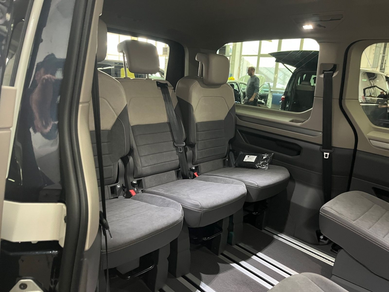 » Anhängevorrichtung anklappbar, mit elektrischer Entriegelung (einschließlich Gespannstabilisierung) » Digital Cockpit Pro Assistenzsysteme: » Fahrerassistent Travel Assist inklusive Spurhalteassistent Lane Assist und Emergency Assist » Proaktives Insassenschutzsystem » Dynamische Fernlichtregulierung Dynamic Light Assist für LED-Matrix-Scheinwerfer » Schlechtwetterlicht (inklusive Abbiegelicht) » Elektronisches Stabilisierungsprogramm und elektromechanischer Bremskraftverstärker » Spurwechselassistent Side Assist inklusive Blind Spot Detection, Ausparkassistent und Ausstiegswarner » Reifenkontrollanzeige (nach EU Typprüfung) » Notbremsassistent Front Assist mit Fußgänger- und Radfahrererkennung » Scheibenwischer-Intervallschaltung mit Regensensor für die Frontscheibenwischer » Automatische Distanzregelung ACC stop & go » Tagfahrlichtschaltung mit Assistenzfahrlicht sowie Coming home und Leaving home-Funktion » Ablenkungs- und Müdigkeitserkennung » Geschwindigkeitsbegrenzer und Intelligent Speed Assist » Verkehrszeichenerkennung Multimedia: » Navigationssystem Discover Pro mit 25,4 cm (10) Touch-Farbdisplay inklusive Streaming & Internet » 8 Lautsprecher ( passiv ) » App-Connect inklusive App-Connect Wireless für Apple CarPlay und Android Auto » Mobiltelefon-Schnittstelle » Sprachassistent IDA und elektronische Sprachverstärkung » Digitaler Radioempfang » 2 USB-C-Schnittstellen vorn, 4 USB-C-Ladebuchsen im Fahrgastraum Technik & Sicherheit: » IQ.LIGHT - LED-Matrix-Scheinwerfer » Zentralverriegelung mit schlüssellosem Schließ- und Startsystem Keyless Advanced ohne Safesicherung » Diebstahl-Alarmanlage mit Innenraumüberwachung, Back-up-Horn und Abschleppschutz » Parklenkassistent Park Assist und Einparkhilfe im Front- und Heckbereich » IQ.LIGHT-LED-Matrix-Scheinwerfer mit LED-Tagfahrlicht » 3-Zonen Klimaanlage Air Care Climatronic mit zusätzlichem Bedienteil im Fahrgastraum (ausgenommen Beach) » Rückfahrkamera Rear View » Servolenkung, geschwindigkeitsabhängig (Servotronic) » Bordwerkzeug und Tire Mobility Set (in den Staufächern im Gepäckraum) » Airbags für Fahrer und Beifahrer, mit Beifahrer-Airbag-Deaktivierung » Abgaskonzept, WLTP3 M1, N1-I//EU6EB » Zulassung als PKW » Sonnenblenden mit Spiegel, beleuchtet, Tickethalter auf der Fahrerseite, mit Airbaglabel auf Sonnenblende und B-Säule » Seiten- und Kopfairbag für Fahrer und Beifahrer, Kopfairbags für die äußeren Sitzplätze hinten und Mittenairbag vorn » Außenspiegelgehäuse in Schwarz hochglanz » LED-Rückleuchten » Mit Kreuzungsassistent » Privater Notruf Interieur: » Multifunktions-Lederlenkrad mit Schaltwippen, beheizbar » 3 Einzelsitze in der 3. Sitzreihe » Sitzheizung für beide Sitze im Fahrerhaus, links und rechts getrennt regelbar » Bi-Color Sitzbezüge, Sitzmittelbahnen in Mikrovlies ArtVelours, Sitzwangen in Glattlederoptik » Sicherheitsinnenspiegel, automatisch abblendend » Armlehnen für Fahrer- und Beifahrersitz, beidseitig, mit elektrischer Lendenwirbelstütze und Klapptisch Exterieur: » Leichtmetallräder Halmstad 8J x 19, in Schwarz, Oberfläche glanzgedreht » Radmittenabdeckung für Leichtmetallräder » Heckklappe mit elektrischer Öffnung und Schließung » 4 Leichtmetallräder Halmstad 8J x 19, in Schwarz, Oberfläche glanzgedreht » Elektrische Heckklappe (öffnend und schließend) mit Easy Open und Easy Close-Funktion » Schiebetür links, elektrisch mit easy open- und easy close Funktion » Schiebetür rechts, elektrisch mit easy open- und easy close Funktion » Umfeldbeleuchtung Heckklappe » Scheiben im Fond abgedunkelt » Fenster in der Schiebetür, links » Fenster in der Schiebetür, rechts Sonstiges: » Raven-Sandwick/Raven-Sandwick/Raven » Parkpaket Basic » Easy Open Paket Basic » Chromleisten an den Seiten und am Heck » Vorbereitet für VW Connect und VW Connect Plus » Aktionsmodell 75 Jahre Bulli inklusive ABH-Produkt: Folierung » Umfeldbeleuchtung an der Heckklappe und Ambientebeleuchtung 30-farbig, inklusive Fußraumbeleuchtung für die 2. Sitzreihe Garantie 24 Monate ab Tag der Erstzulassung, Angaben zum Hersteller: Volkswagen AG, Volkswagen Nutzfahrzeuge, Mecklenheidestraße 74, 30419 Hannover, Deutschland, +49-5361-9-0, kundenbetreuung(at)volkswagen.de, Produktinformationen: https://www.volkswagen.de/idhub/content/dam/onehub_master/downloads/product-safety-cv/volkswagen-cv-sicherheitshinweise-de.pdf Die angegebenen Verbrauchsangaben beziehen sich auf WLTP-Werte. Zwischenverkauf und Irrtümer für dieses Angebot sind ausdrücklich vorbehalten. Ausschlaggebend sind einzig und allein die Vereinbarungen in der Auftragsbestätigung oder im Kaufvertrag. Den genauen Ausstattungsumfang, die genauen Kilometer und den Verkaufspreis erhalten Sie von unserem Verkaufspersonal. Bitte kontaktieren Sie uns. Finanzierung