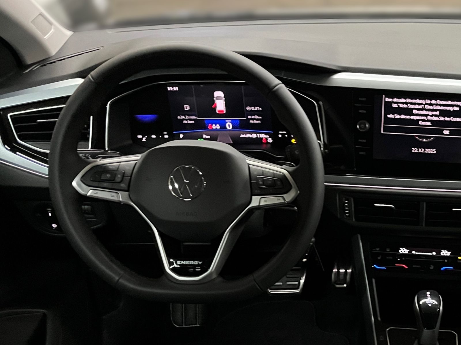 » Digital Cockpit, mehrfarbig, verschiedene Info-Profile wählbar Assistenzsysteme: » Elektronisches Stabilisierungsprogramm mit Gegenlenkunterstützung, ABS, ASR, EDS, MSR und Gespannstabilisierung» Reifenkontrollanzeige» Ablenkungs- und Müdigkeitserkennung» Berganfahrassistent Multimedia: » Telefonschnittstelle mit induktiver Ladefunktion» Digitaler Radioempfang DAB+» 2 USB-C-Schnittstellen vorn, 2 USB-C-Ladebuchsen an der Mittelkonsole hinten, Ladeleistung bis zu 45 W Technik & Sicherheit: » Tire Mobility Set: 12-Volt-Kompressor und Reifendichtmittel» Servolenkung» ISOFIX-Halteösen für Kindersitze auf den äußeren Rücksitzen sowie auf dem Beifahrersitz, i-Size-kompatibel» Fensterheber elektrisch» Airbag für Fahrer und Beifahrer, mit Beifahrerairbag-Deaktivierung» Abgaskonzept, WLTP3 M1, N1-I//EU6EB» Kopfairbags vorn und hinten, Seitenairbags vorn, Center-Airbag» Außenspiegel elektrisch einstell-, anklapp- und beheizbar, mit Beifahrerspiegelabsenkung» Wegfahrsperre elektronisch» Start-Stopp-System mit Bremsenergie-Rückgewinnung» Einparkhilfe - Warnsignale bei Hindernissen im Front- und Heckbereich» LED-Scheinwerfer mit Tagfahrlicht» LED-Rückleuchten» 7-Gang-Automatikgetriebe oder DSG Beachtung» Batterie 320A (49Ah)» Notruf-Service, Laufzeit 10 Jahre ab Erstauslieferung, Voraussetzung: Verfügbarkeit benötigter Mobilfunknetze Interieur: » Gepäckraumboden in 2 Höhen einstellbar, für ebene Ladefläche» Rücksitzbank ungeteilt, Lehne asymmetrisch geteilt umklappbar» Mittelarmlehne vorn längseinstellbar, mit Ablagebox Exterieur: » Dachreling schwarz Sonstiges: » Energy» GSP - CN» ENERGY» Infotainment-Paket Discover Media» 45489» GL7733» ÜF» Farbe Rauchgrau Metallic» Lenksäule mit Höhen- und Längseinstellung» Vordersitze mit Höheneinstellung» Handbremshebelgriff in Leder» Schalthebelknauf in Leder» Ländercluster WLTP EU-Genehmigung» Standard-Ausführung» 3 Zyl.Ottomotor 1,0L Aggr. 05C.B» Fußgänger- und Radfahrererkennung Garantie 24 Monate ab Tag der Erstzulassung, Angaben zum Hersteller: Volkswagen AG, Volkswagen, Berliner Ring 2, 38440 Wolfsburg, Deutschland, +49-5361-9-0, kundenbetreuung(at)volkswagen.de, Produktinformationen: https://www.volkswagen.de/idhub/content/dam/onehub_master/downloads/product-safety/volkswagen-sicherheitshinweise-de.pdf Die angegebenen Verbrauchsangaben beziehen sich auf WLTP-Werte. Zwischenverkauf und Irrtümer für dieses Angebot sind ausdrücklich vorbehalten. Ausschlaggebend sind einzig und allein die Vereinbarungen in der Auftragsbestätigung oder im Kaufvertrag. Den genauen Ausstattungsumfang, die genauen Kilometer und den Verkaufspreis erhalten Sie von unserem Verkaufspersonal. Bitte kontaktieren Sie uns. Finanzierung