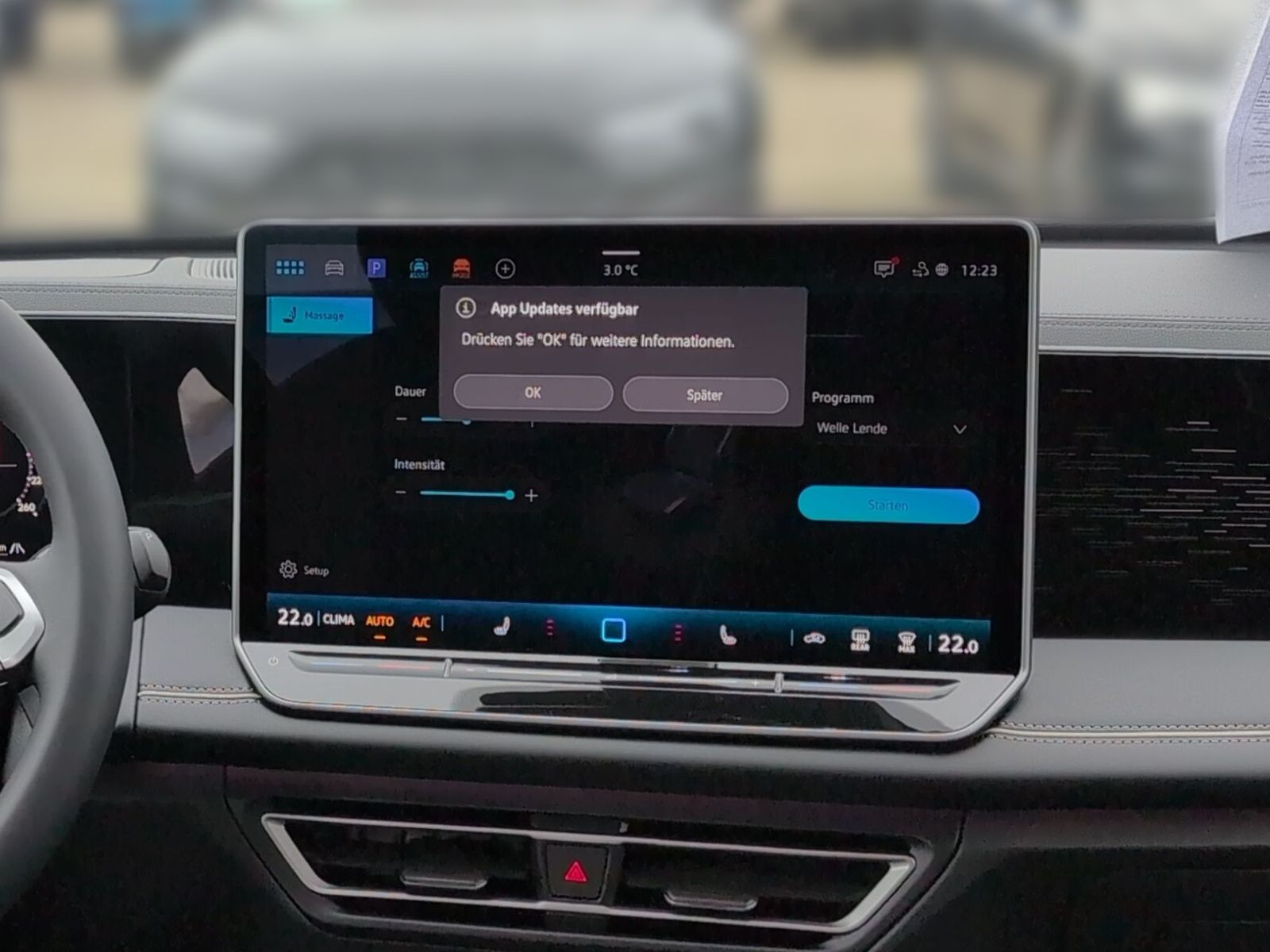 » Vordersitze mit Massagefunktion» Digital Cockpit Pro, mehrfarbig, verschiedene Info-Profile wählbar» Head-up-Display» Hersteller-Anschlussgarantie 3 Jahre, max. 100.000 km Assistenzsysteme: » Reifendruck-Kontrollsystem» Elektronisches Stabilisierungsprogramm und elektromechanischer Bremskraftverstärker» Fahrassistent Travel Assist, Spurhalteassistent Lane Assist und Emergency Assist» Spurwechselassistent Side Assist, Ausparkassistent und Ausstiegswarnung» Reifendruck-Kontrollsystem» Proaktives Insassenschutzsystem» Dynamischer Fernlichtassistent Dynamic Light Assist» IQ.LIGHT - HD-Matrix-Scheinwerfer» Notbremsassistent Front Assist mit Fußgänger- und Radfahrererkennung» Regensensor» Leuchtweitenregulierung dynamisch, mit dynamischem Kurvenfahrlicht» Automatische Distanzregelung ACC stop & go» Abbiege- und Schlechtwetterlicht» Ablenkungs- und Müdigkeitserkennung» Memory-Funktion für Parkassistent» Geschwindigkeitsbegrenzer mit vorausschauender Regelung» Mit Multifunktionskamera» Verkehrszeichenerkennung» Berganfahrassistent Multimedia: » Navigationssystem» Diversity-Antenne für FM-Empfang» App-Connect Wireless für Apple CarPlay und Android Auto» Sprachassistent IDA und elektronische Sprachverstärkung» Digitaler Radioempfang DAB+» 2 USB-C-Schnittstellen vorn, 2 USB-C-Ladebuchsen an der Mittelkonsole hinten, Ladeleistung bis zu 45 W Technik & Sicherheit: » Tire Mobility Set: 12-Volt-Kompressor und Reifendichtmittel» Servolenkung elektromechanisch, geschwindigkeitsabhängig geregelt» ISOFIX-Halteösen für Kindersitze auf den äußeren Rücksitzen sowie auf dem Beifahrersitz, i-Size-kompatibel» Schlüsselloses Schließ- und Startsystem Keyless Access, mit berührungsloser Ver- und Entriegelung, SAFE-Verriegelung» Airbag für Fahrer und Beifahrer, mit Beifahrerairbag-Deaktivierung» Abgaskonzept, WLTP3 M1, N1-I//EU6EB» Kopf- und Seitenairbags vorn und hinten, Center-Airbag» Diebstahlwarnanlage mit Innenraumüberwachung, Back-up-Horn und Abschleppschutz» Start-Stopp-System mit Bremsenergie-Rückgewinnung» Parkassistent Park Assist Pro, inkl. Einparkhilfe» 3D-LED-Rückleuchten mit dynamischer Blinkleuchte» Fahrlichtschaltung automatisch, mit LED-Tagfahrlicht sowie Begrüßungsund Verabschiedungslicht» 7-Gang-Automatikgetriebe oder DSG Beachtung: Fam. EDF» Umgebungsansicht Area View inkl. Rückfahrkamera Rear View» Klimaanlage Air Care Climatronic mit Aktiv-Kombifilter, Bedienelementen hinten und 3-Zonen-Temperaturregelung» Notruf-Service, Laufzeit 10 Jahre ab Erstauslieferung, Voraussetzung: Verfügbarkeit benötigter Mobilfunknetze» Spiegeleinstell- und Fensterheberschalter mit Applikationen in Chrom-Optik Interieur: » Multifunktionslenkrad in Leder, beheizbar, mit Schaltwippen» Gepäckraumboden in 2 Höhen einstellbar, für ebene Ladefläche» Beifahrersitzlehne komplett umklappbar» Vordersitze beheizbar, Sitzfläche und -lehne getrennt einstellbar» Innenspiegel automatisch abblendend» Mittelarmlehne vorn» Lendenwirbelstützen vorn pneumatisch einstellbar» Telefonschnittstelle Comfort mit induktiver Ladefunktion für 2 Smartphones, Ladeleistung bis zu 15 W» Sitzmittelbahnen der Vordersitze und der äußeren Rücksitzplätze in Mikrofaser ArtVelours Eco» Sport-Komfortsitze vorn Exterieur: » Catania 7,5 J x 19 in Schwarz / glanzgedreht, Reifen 235/50 R 19 rollwiderstandsoptimiert» Dachreling silber eloxiert» 4 Leichtmetallräder Catania 7,5 J x 19 in Schwarz, Oberfläche glanzgedreht» Easy Open & Close - Heckklappe mit sensorgesteuerter Öffnung und Schließung, mit Fernentriegelung» Außenspiegel elektrisch einstell-, anklapp- und beheizbar, auf Fahrerseite abblendend, Memory-Funktion» Türscheiben geräuschdämmend, Seitenscheiben hinten und Heckscheibe abgedunkelt Sonstiges: » Soul-Schwarz/Soul-Schwarz/Schwarz/ Ceramique» Netztrennwand» Technikpaket IQ.Drive Premium» Infotainment-Paket Discover» Farbe Grenadillschwarz Metallic» Anschlussgarantie, Laufzeit 3 Jahre im Anschluss an die Herstellergarantie, maximale Gesamtlaufleistung 100.000 km» Fahrprofilauswahl» Mittelkonsole gepolstert Garantie 60 Monate ab Tag der Erstzulassung möglich, Angaben zum Hersteller: Volkswagen AG, Volkswagen, Berliner Ring 2, 38440 Wolfsburg, Deutschland, +49-5361-9-0, kundenbetreuung(at)volkswagen.de, Produktinformationen: https://www.volkswagen.de/idhub/content/dam/onehub_master/downloads/product-safety/volkswagen-sicherheitshinweise-de.pdf Die angegebenen Verbrauchsangaben beziehen sich auf WLTP-Werte. Zwischenverkauf und Irrtümer für dieses Angebot sind ausdrücklich vorbehalten. Ausschlaggebend sind einzig und allein die Vereinbarungen in der Auftragsbestätigung oder im Kaufvertrag. Den genauen Ausstattungsumfang, die genauen Kilometer und den Verkaufspreis erhalten Sie von unserem Verkaufspersonal. Bitte kontaktieren Sie uns. Finanzierung