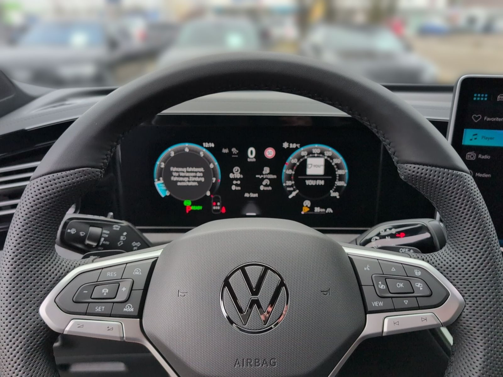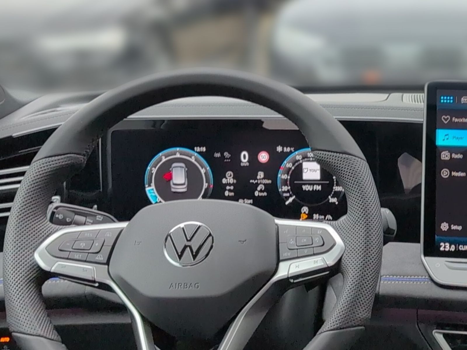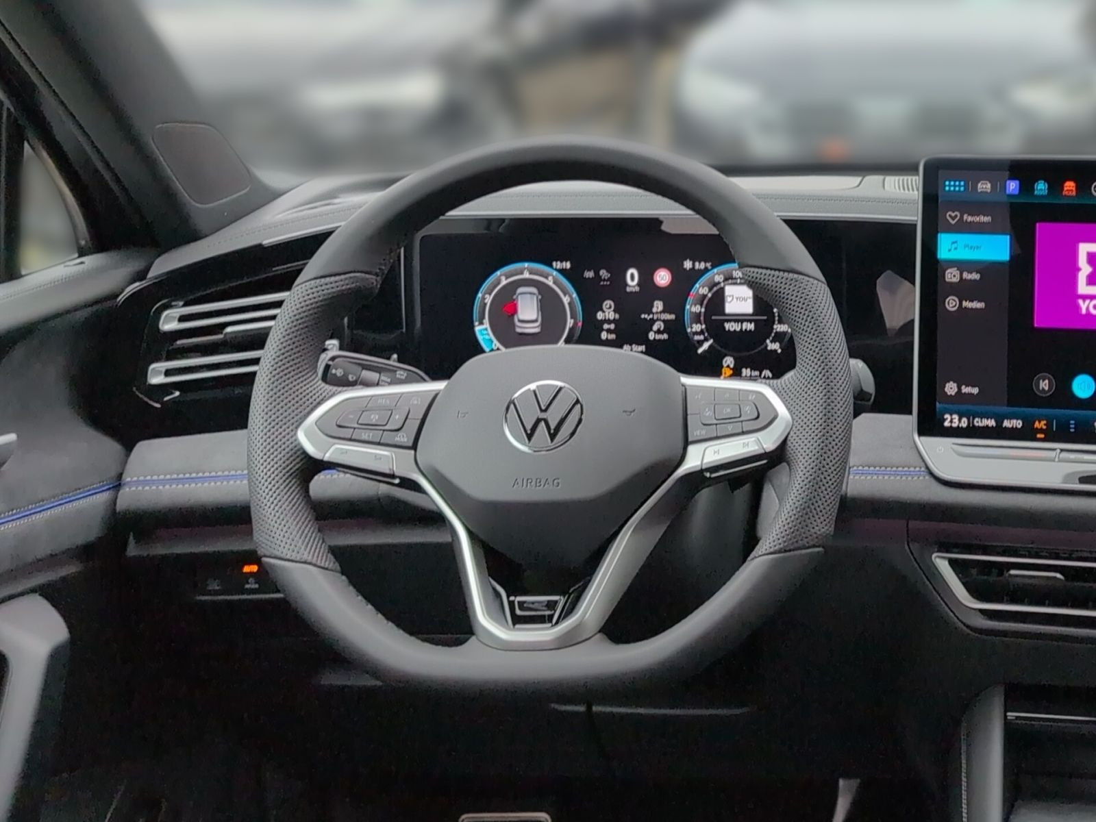 » Vordersitze mit Massageprogrammen und aktiver Klimatisierung» Head-up-Display» Digital Cockpit Pro, mehrfarbig, verschiedene Info-Profile wählbar Assistenzsysteme: » Reifendruck-Kontrollsystem» Fahrassistent Travel Assist, Spurhalteassistent Lane Assist und Emergency Assist» Reifendruck-Kontrollsystem» Dynamischer Fernlichtassistent Dynamic Light Assist» IQ.LIGHT - HD-Matrix-Scheinwerfer» Memory-Funktion für Parkassistent» Elektronisches Stabilisierungsprogramm und elektromechanischer Bremskraftverstärker» Spurwechselassistent Side Assist, Ausparkassistent und Ausstiegswarnung» Proaktives Insassenschutzsystem» Notbremsassistent Front Assist mit Fußgänger- und Radfahrererkennung» Regensensor» Leuchtweitenregulierung dynamisch, mit dynamischem Kurvenfahrlicht» Automatische Distanzregelung ACC stop & go» Abbiege- und Schlechtwetterlicht» Ablenkungs- und Müdigkeitserkennung» Geschwindigkeitsbegrenzer mit vorausschauender Regelung» Mit Multifunktionskamera» Verkehrszeichenerkennung» Berganfahrassistent Multimedia: » Navigationssystem» Sprachassistent IDA und elektronische Sprachverstärkung» 2 USB-C-Schnittstellen vorn, 2 USB-C-Ladebuchsen an der Mittelkonsole hinten, Ladeleistung bis zu 45 W» Diversity-Antenne für FM-Empfang» App-Connect Wireless für Apple CarPlay und Android Auto» Digitaler Radioempfang DAB+ Technik & Sicherheit: » Parkassistent Park Assist Pro, inkl. Einparkhilfe» 3D-LED-Rückleuchten mit dynamischer Blinkleuchte» Umgebungsansicht Area View inkl. Rückfahrkamera Rear View» Tire Mobility Set: 12-Volt-Kompressor und Reifendichtmittel» Servolenkung elektromechanisch, geschwindigkeitsabhängig geregelt» ISOFIX-Halteösen für Kindersitze auf den äußeren Rücksitzen sowie auf dem Beifahrersitz, i-Size-kompatibel» Schlüsselloses Schließ- und Startsystem Keyless Access, mit berührungsloser Ver- und Entriegelung, SAFE-Verriegelung» Airbag für Fahrer und Beifahrer, mit Beifahrerairbag-Deaktivierung» Abgaskonzept, WLTP3 M1, N1-I//EU6EB» Kopf- und Seitenairbags vorn und hinten, Center-Airbag» Diebstahlwarnanlage mit Innenraumüberwachung, Back-up-Horn und Abschleppschutz» Start-Stopp-System mit Bremsenergie-Rückgewinnung» Fahrlichtschaltung automatisch, mit LED-Tagfahrlicht sowie Begrüßungsund Verabschiedungslicht» 7-Gang-Automatikgetriebe oder DSG Beachtung: Fam. EDF» Klimaanlage Air Care Climatronic mit Aktiv-Kombifilter, Bedienelementen hinten und 3-Zonen-Temperaturregelung» Notruf-Service, Laufzeit 10 Jahre ab Erstauslieferung, Voraussetzung: Verfügbarkeit benötigter Mobilfunknetze» Spiegeleinstell- und Fensterheberschalter mit Applikationen in Chrom-Optik Interieur: » ergoActive-Sitze vorn mit elektrischer Einstellung, Memory, Komforteinstieg und verschiebbarer Oberschenkelauflage» Telefonschnittstelle Comfort mit induktiver Ladefunktion für 2 Smartphones, Ladeleistung bis zu 15 W» Sitzmittelbahnen der Vordersitze und der äußeren Rücksitzplätze in Leder Varenna gelocht» Multifunktions-Sportlenkrad in Leder, beheizbar, mit Schaltwippen» Gepäckraumboden in 2 Höhen einstellbar, für ebene Ladefläche» Vordersitze beheizbar, Sitzfläche und -lehne getrennt einstellbar» Innenspiegel automatisch abblendend» Mittelarmlehne vorn» Lendenwirbelstützen vorn pneumatisch einstellbar» Sport-Komfortsitze vorn Exterieur: » Türscheiben geräuschdämmend, Seitenscheiben hinten und Heckscheibe abgedunkelt» Farbe Delfingrau Metallic» Außenspiegel elektrisch einstell-, anklapp- und beheizbar, auf Fahrerseite abblendend, Memory-Funktion» Dachreling silber eloxiert» Easy Open & Close - Heckklappe mit sensorgesteuerter Öffnung und Schließung, mit Fernentriegelung» R-Line» 4 Leichtmetallräder Coventry 8,5 J x 19 in Schwarz, Oberfläche glanzgedreht, Volkswagen R Sonstiges: » Soul-Schwarz/Soul-Schwarz/Schwarz/ Soul-Schwarz» Netztrennwand» Technikpaket IQ.Drive Premium» Sitzkomfortpaket Leder» Infotainment-Paket Discover» Anschlussgarantie, Laufzeit 3 Jahre im Anschluss an die Herstellergarantie, maximale Gesamtlaufleistung 100.000 km Garantie 60 Monate ab Tag der Erstzulassung möglich, Angaben zum Hersteller: Volkswagen AG, Volkswagen, Berliner Ring 2, 38440 Wolfsburg, Deutschland, +49-5361-9-0, kundenbetreuung(at)volkswagen.de, Produktinformationen: https://www.volkswagen.de/idhub/content/dam/onehub_master/downloads/product-safety/volkswagen-sicherheitshinweise-de.pdf Die angegebenen Verbrauchsangaben beziehen sich auf WLTP-Werte. Zwischenverkauf und Irrtümer für dieses Angebot sind ausdrücklich vorbehalten. Ausschlaggebend sind einzig und allein die Vereinbarungen in der Auftragsbestätigung oder im Kaufvertrag. Den genauen Ausstattungsumfang, die genauen Kilometer und den Verkaufspreis erhalten Sie von unserem Verkaufspersonal. Bitte kontaktieren Sie uns. Finanzierung