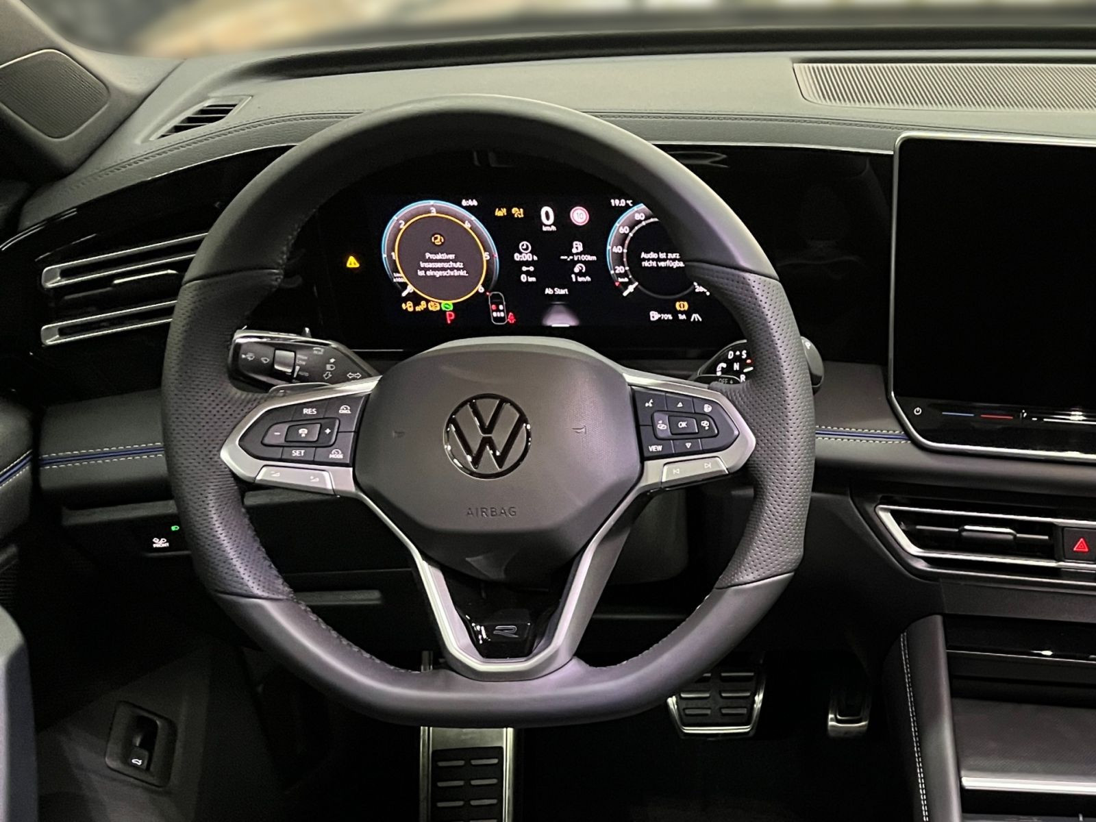 » Vordersitze mit Massagefunktion » Digital Cockpit Pro, mehrfarbig, verschiedene Info-Profile wählbar Assistenzsysteme: » Komfortpaket inkl. Park Assist Pro » IQ.LIGHT - HD-Matrix-Scheinwerfer » Elektronisches Stabilisierungsprogramm und elektromechanischer Bremskraftverstärker » Fahrassistent Travel Assist, Spurhalteassistent Lane Assist und Emergency Assist » Spurwechselassistent Side Assist, Ausparkassistent und Ausstiegswarnung » Reifenkontrollanzeige » Proaktives Insassenschutzsystem » Dynamischer Fernlichtassistent Dynamic Light Assist » IQ.LIGHT - HD-Matrix-Scheinwerfer » Notbremsassistent Front Assist mit Fußgänger- und Radfahrererkennung » Regensensor » Leuchtweitenregulierung dynamisch, mit dynamischem Kurvenfahrlicht » Automatische Distanzregelung ACC stop & go » Abbiege- und Schlechtwetterlicht » Ablenkungs- und Müdigkeitserkennung » Memory-Funktion für Parkassistent » Geschwindigkeitsbegrenzer mit vorausschauender Regelung » Mit Multifunktionskamera » Verkehrszeichenerkennung » Berganfahrassistent Multimedia: » Navigationssystem » Diversity-Antenne für FM-Empfang » App-Connect Wireless für Apple CarPlay und Android Auto » Digitaler Radioempfang DAB+ » 2 USB-C-Schnittstellen vorn, 2 USB-C-Ladebuchsen an der Mittelkonsole hinten, Ladeleistung bis zu 45 W Technik & Sicherheit: » Winterpaket inkl. Lenkrad beheizbar » Tire Mobility Set: 12-Volt-Kompressor und Reifendichtmittel » Servolenkung elektromechanisch, geschwindigkeitsabhängig geregelt » ISOFIX-Halteösen für Kindersitze auf den äußeren Rücksitzen sowie auf dem Beifahrersitz, i-Size-kompatibel » Schlüsselloses Schließ- und Startsystem Keyless Access, mit berührungsloser Ver- und Entriegelung, SAFE-Verriegelung » Airbag für Fahrer und Beifahrer, mit Beifahrerairbag-Deaktivierung » Abgaskonzept, WLTP3 M1, N1-I//EU6EB » Kopf- und Seitenairbags vorn und hinten, Center-Airbag » Diebstahlwarnanlage mit Innenraumüberwachung, Back-up-Horn und Abschleppschutz » Start-Stopp-System mit Bremsenergie-Rückgewinnung » Parkassistent Park Assist Pro, inkl. Einparkhilfe » 3D-LED-Rückleuchten mit dynamischer Blinkleuchte » Fahrlichtschaltung automatisch, mit LED-Tagfahrlicht sowie Begrüßungsund Verabschiedungslicht » 12-V-Steckdose in der Mittelkonsole vorn » 7-Gang-Automatikgetriebe oder DSG Beachtung: Fam. EDF » Umgebungsansicht Area View inkl. Rückfahrkamera Rear View » Klimaanlage Air Care Climatronic mit Aktiv-Kombifilter, Bedienelementen hinten und 3-Zonen-Temperaturregelung » Notruf-Service, Laufzeit 10 Jahre ab Erstauslieferung, Voraussetzung: Verfügbarkeit benötigter Mobilfunknetze » Spiegeleinstell- und Fensterheberschalter mit Applikationen in Chrom-Optik Interieur: » Multifunktions-Sportlenkrad in Leder, beheizbar, mit Schaltwippen » Gepäckraumboden in 2 Höhen einstellbar, für ebene Ladefläche » Vordersitze beheizbar, Sitzfläche und -lehne getrennt einstellbar » Innenspiegel automatisch abblendend » Mittelarmlehne vorn » Lendenwirbelstützen vorn pneumatisch einstellbar » Telefonschnittstelle Comfort mit induktiver Ladefunktion für 2 Smartphones, Ladeleistung bis zu 15 W » Sitzmittelbahnen der Vordersitze und der äußeren Rücksitzplätze in Stoff R-Line » Sport-Komfortsitze vorn Exterieur: » Dachreling schwarz » Easy Open & Close - Heckklappe mit sensorgesteuerter Öffnung und Schließung, mit Fernentriegelung » Außenspiegel elektrisch einstell-, anklapp- und beheizbar, auf Fahrerseite abblendend, Memory-Funktion » R-Line » 4 Leichtmetallräder Coventry 8,5 J x 19 in Schwarz, Volkswagen R » Türscheiben geräuschdämmend, Seitenscheiben hinten und Heckscheibe abgedunkelt Sonstiges: » Soul-Schwarz/Soul-Schwarz/Schwarz/ Soul-Schwarz » Anhängevorrichtung inkl. Anhängerrangierassistent Trailer Assist » Assistenzpaket IQ.DRIVE » Infotainment-Paket Discover » Design-Paket Black Style » Farbe Grenadillschwarz Metallic » Anhängevorrichtung anklappbar, mit elektrischer Entriegelung, inkl. Anhängerrangierassistent Trailer Assist » Fahrprofilauswahl » Stoßfänger im R-Line-Styling, Lufteinlass mit Leiste in Schwarz hochglänzend » Mittelkonsole gepolstert Garantie 24 Monate ab Tag der Erstzulassung, Angaben zum Hersteller: Volkswagen AG, Volkswagen, Berliner Ring 2, 38440 Wolfsburg, Deutschland, +49-5361-9-0, kundenbetreuung(at)volkswagen.de, Produktinformationen: https://www.volkswagen.de/idhub/content/dam/onehub_master/downloads/product-safety/volkswagen-sicherheitshinweise-de.pdf Die angegebenen Verbrauchsangaben beziehen sich auf WLTP-Werte. Zwischenverkauf und Irrtümer für dieses Angebot sind ausdrücklich vorbehalten. Ausschlaggebend sind einzig und allein die Vereinbarungen in der Auftragsbestätigung oder im Kaufvertrag. Den genauen Ausstattungsumfang, die genauen Kilometer und den Verkaufspreis erhalten Sie von unserem Verkaufspersonal. Bitte kontaktieren Sie uns. Finanzierung